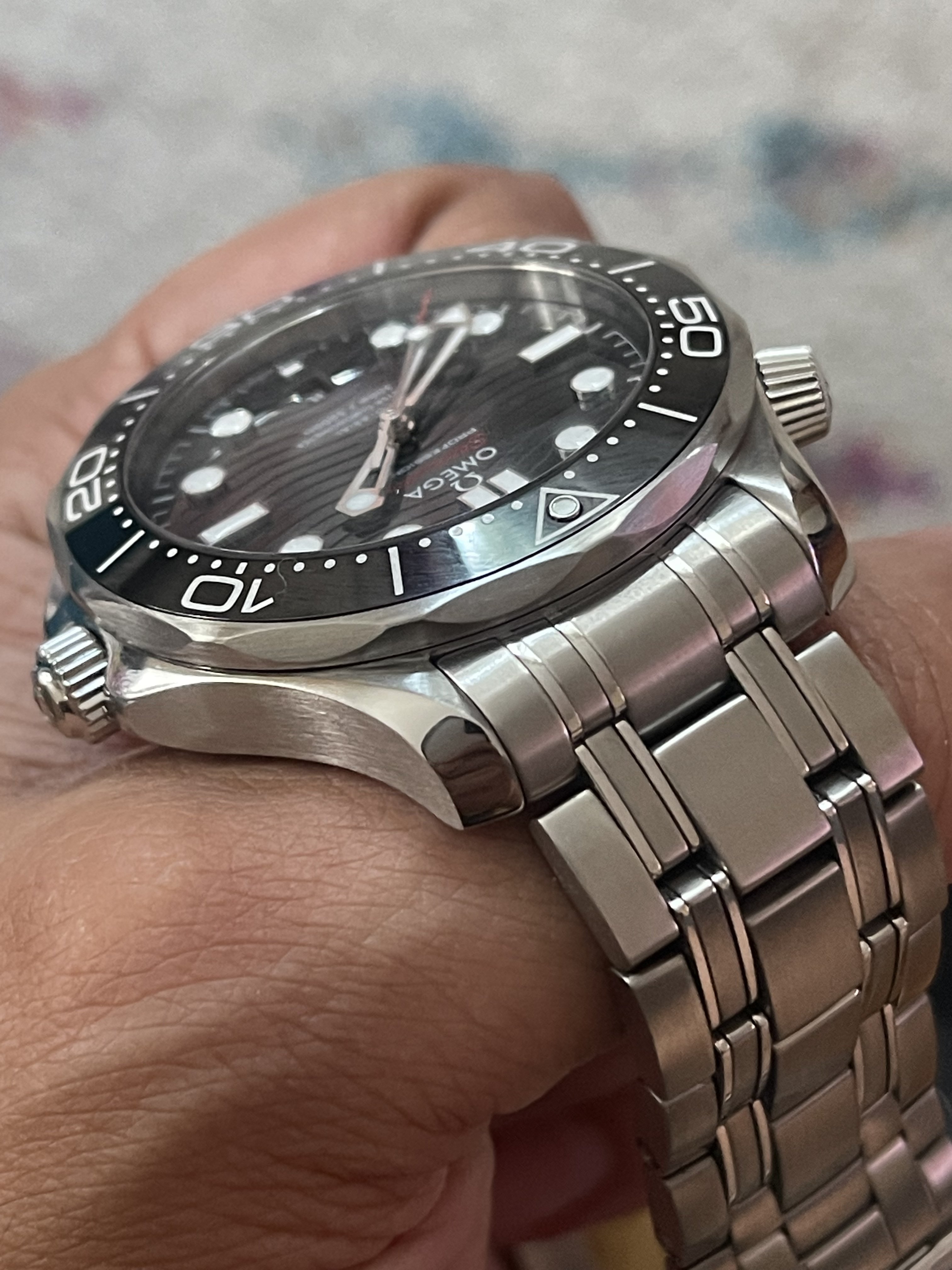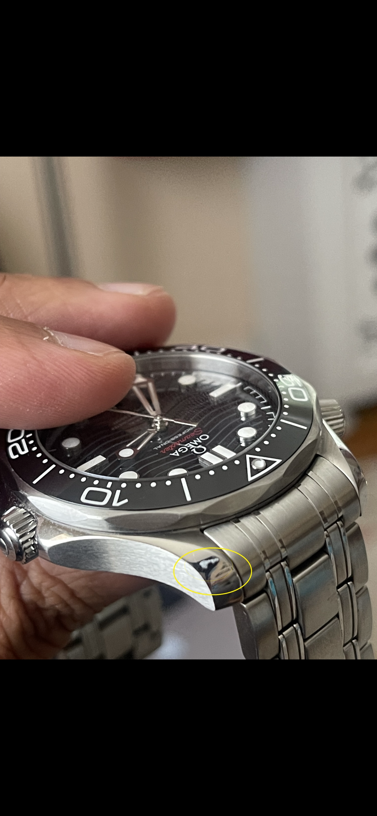 ·I sent my 2020 SMP diver in to Omega to get my crystal replace as it collected some noticeable scratches on the AR coating. Not really sure how as I baby the hell out of it. A crystal replacement also necessitates a partial service where the gaskets are replaced - fair enough. I made a request for them to inspect a scuff mark on one of the lugs - again, not sure how it got there as I never dropped the watch and I’ve owned it since new. Anyway, I asked them just to confirm it was on the surface and superficial. The scuff mark was definitely on the surface and in no way was it dented or gouged but I just wanted them to confirm.