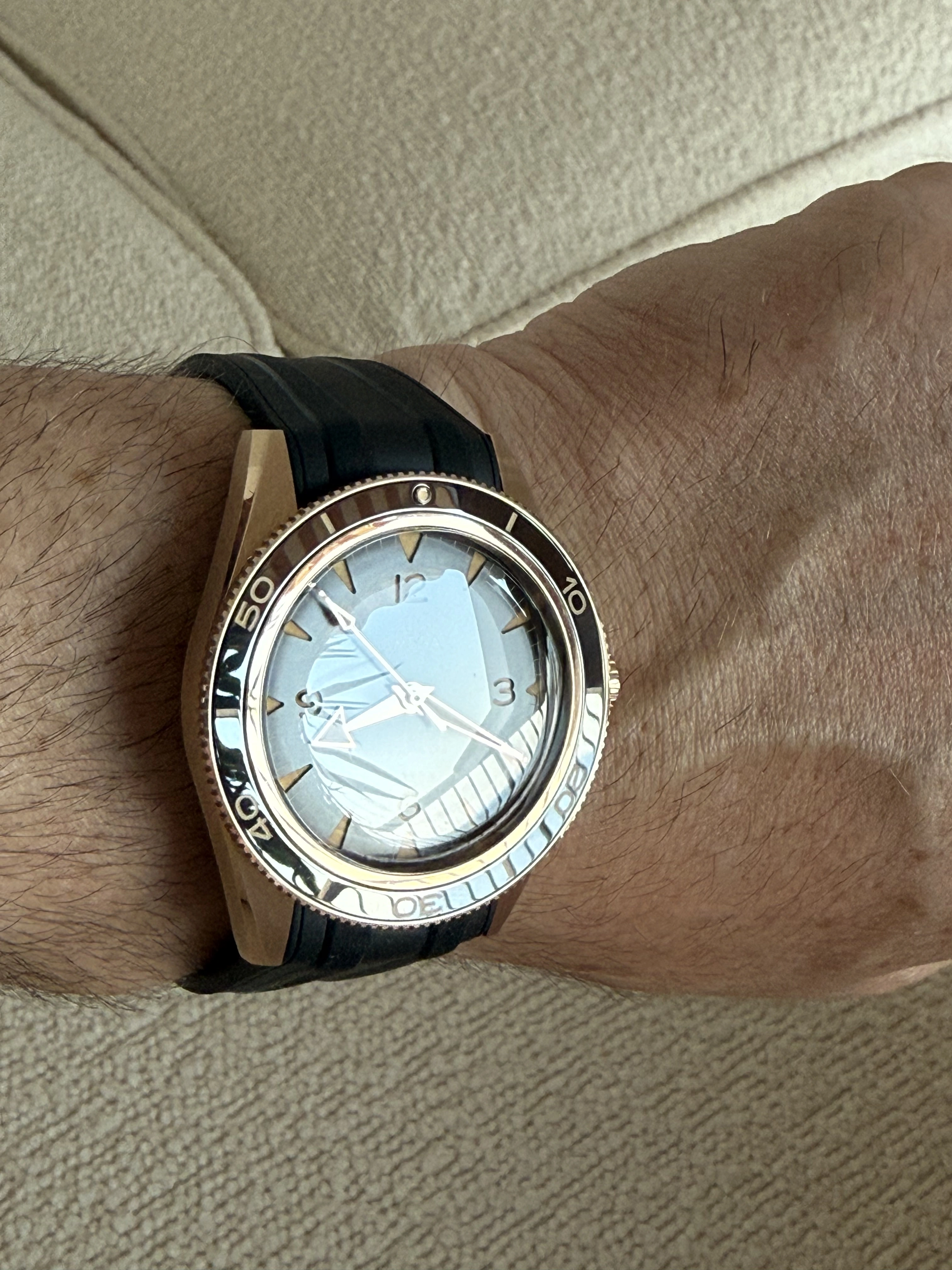 ·I’m curious. Omega moved “backwards” to an aluminum bezel on the latest version, which I am 100% okay with because I think it looks better in matte than glossy ceramic. I sold the previous version to get the new one partially for this feature.