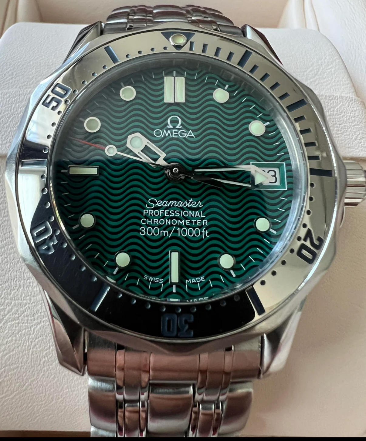 I think Omega already had you beat, hence this one from our collection...wave dial available in various colors including blue, no HEV, skeleton hands, quartz or automatic, screw down crown and factory original so no need for a photoshop mock-up.