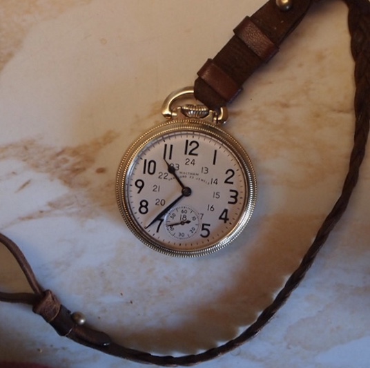 ·This is one I don’t wear often. It is a 12-size Waltham, and I prefer larger pocket watches. So why do I have this one? It came up at auction locally. It came just as you see it. Cardboard outer box, display box, linen sachet with the case maker’s label on it......Keystone. The case is 14-karat gold, the movement a 17-jewel grade. The cuvette (inner case back) is engraved as a presentation by the Winnipeg Paint & Wallpaper Company to an employee who was celebrating his 25th year with the company.......in 1937. The watch has hardly ever (never?) been used! The outer case back is engraved with the recipient’s initials. I can visualize it now. The presentation banquet the president shaking hands with the celebrant, him accepting the watch, and thinking to himself, “nice, but what am I gonna do with it?” He started with the company in 1912, and either had a favourite pocket watch, a wrist watch, or didn’t wear watches.