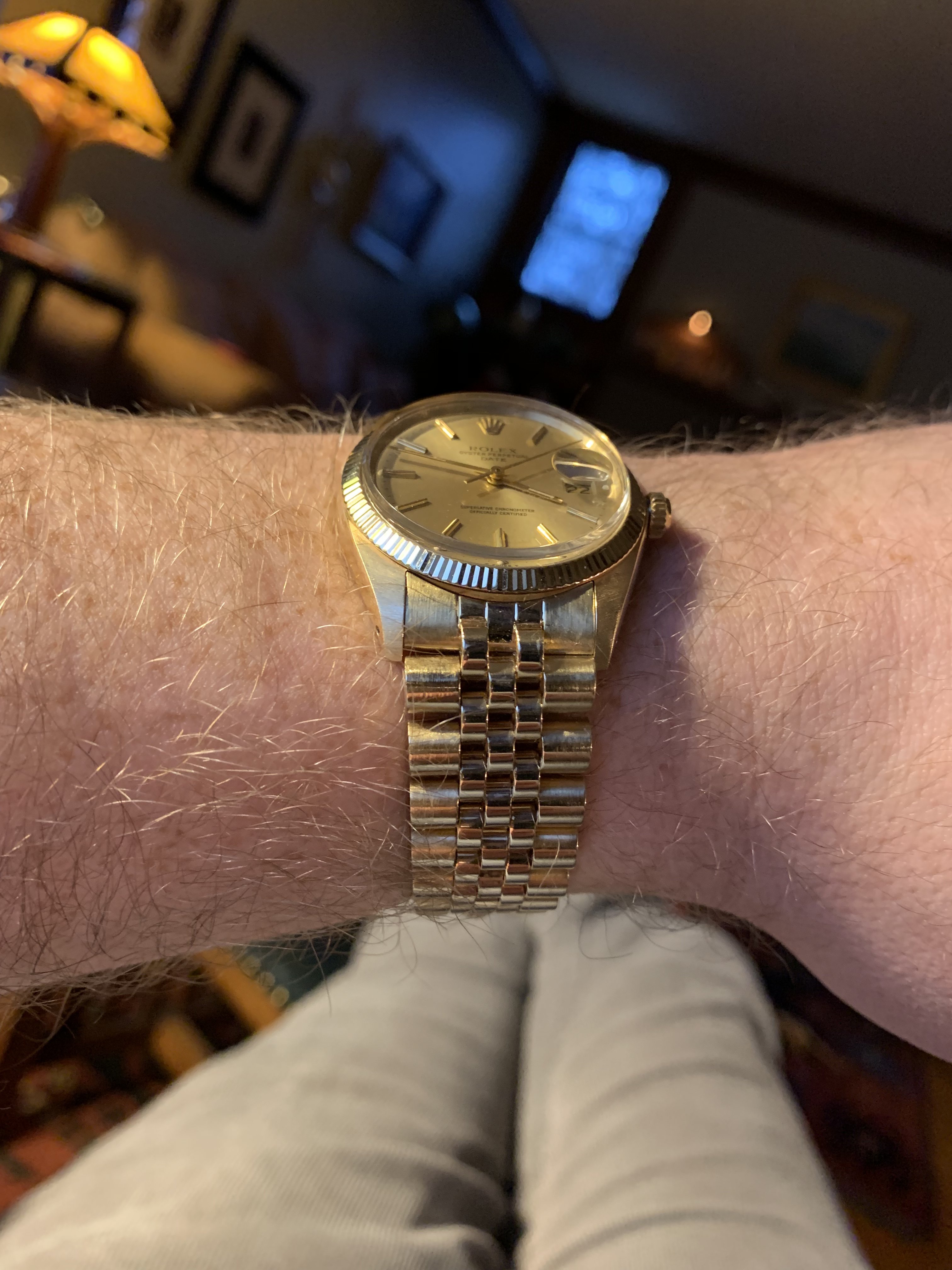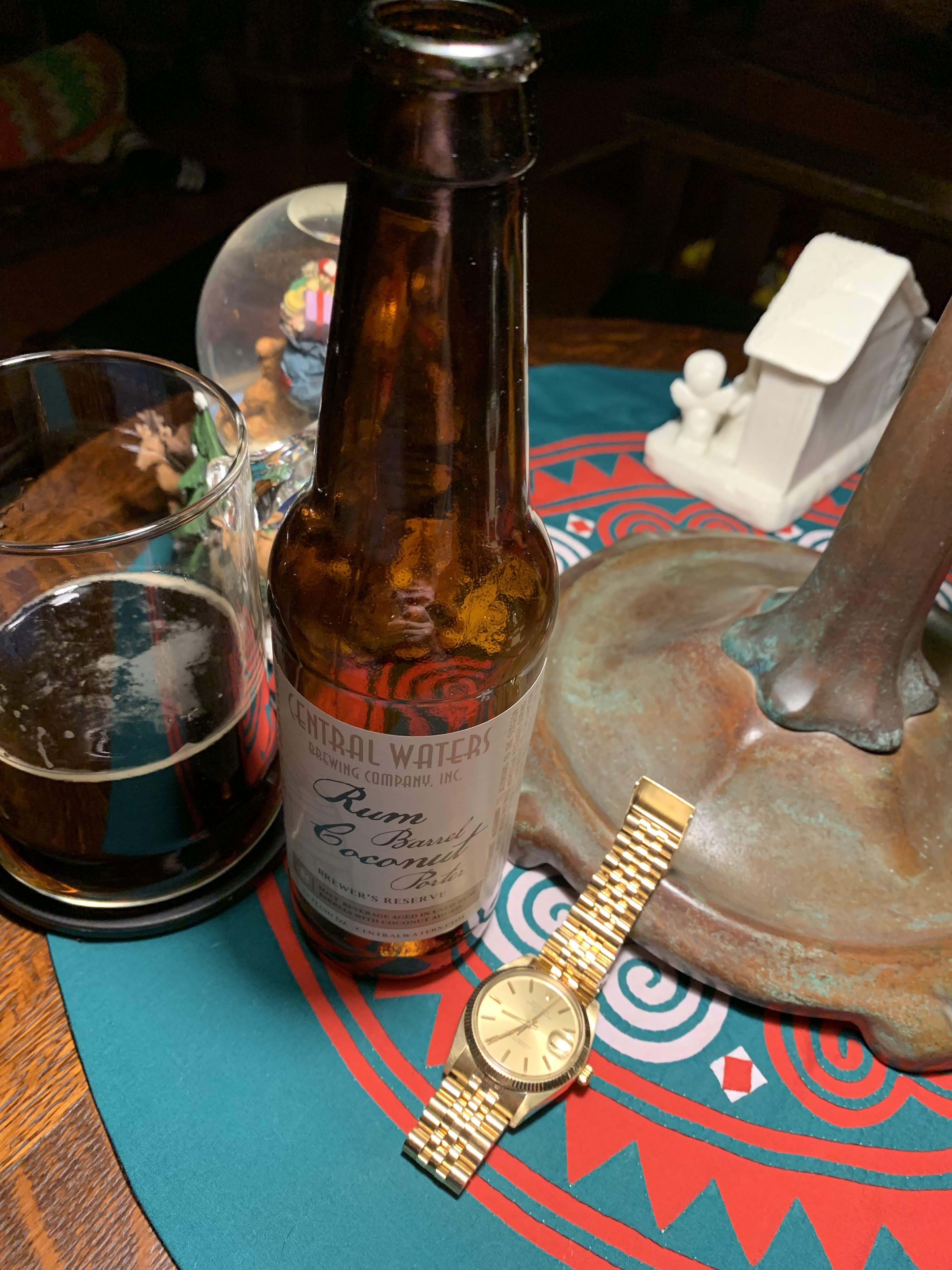 Posts 405 Likes 4,702 Brianstoops ·Dec 22, 2018 At the in-laws. 1970’s 14k Rolex 1503 2018 Central Waters Rum Barrel Coconut Porter New watch so I got a little carried away with the pics.