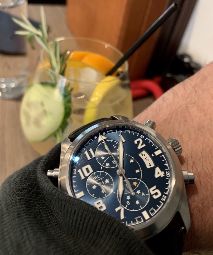 Watch is IWC Petit Prince Double Chronograph (Rattrapante).