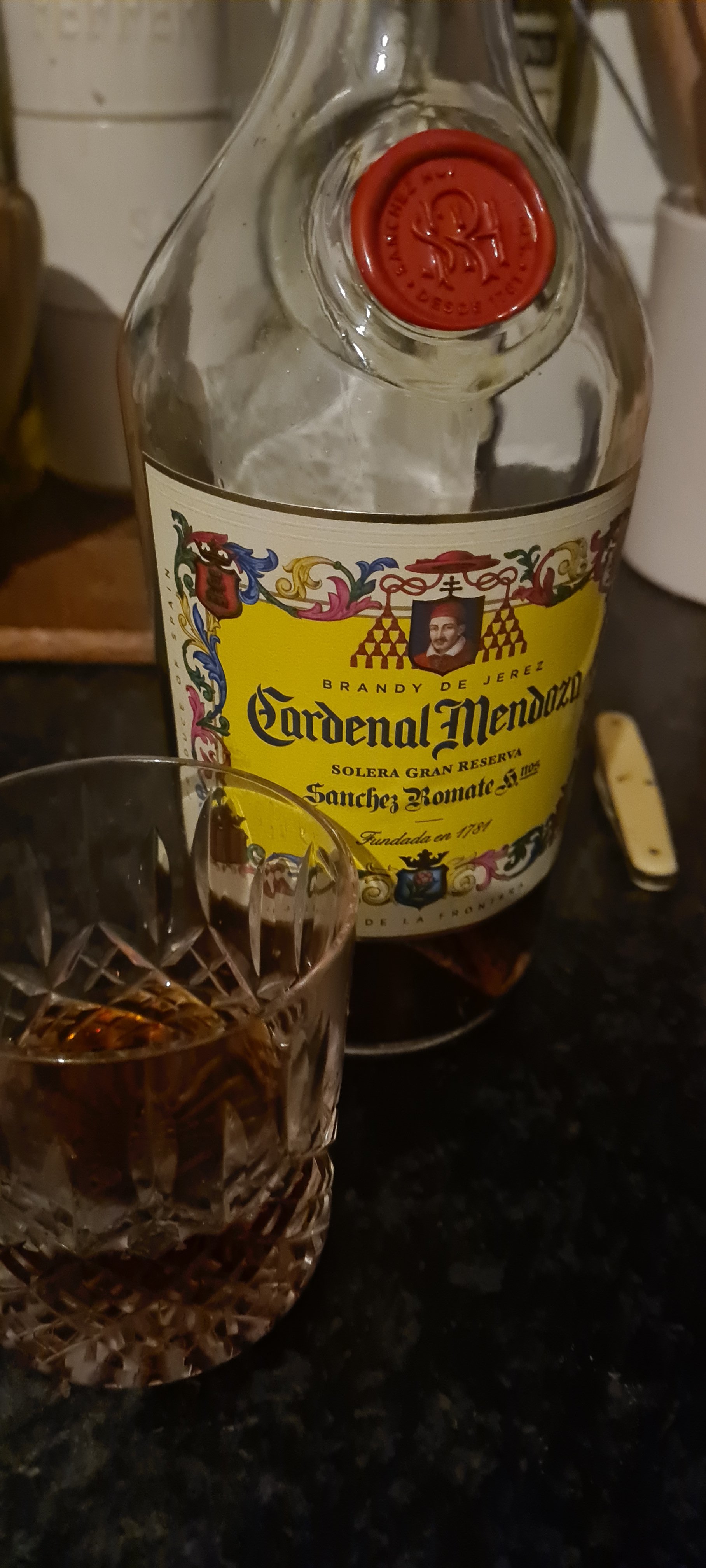 A drop of the old Cardenal. First heard about this awhile ago when reading a biography on Dr Feelgood front man Lee Brilleaux. It was a favourite tipple of his and he was a man of taste for sure. Bought a bottle and tipped half in the ( new) father in laws decanter and am hammering the rest myself!
