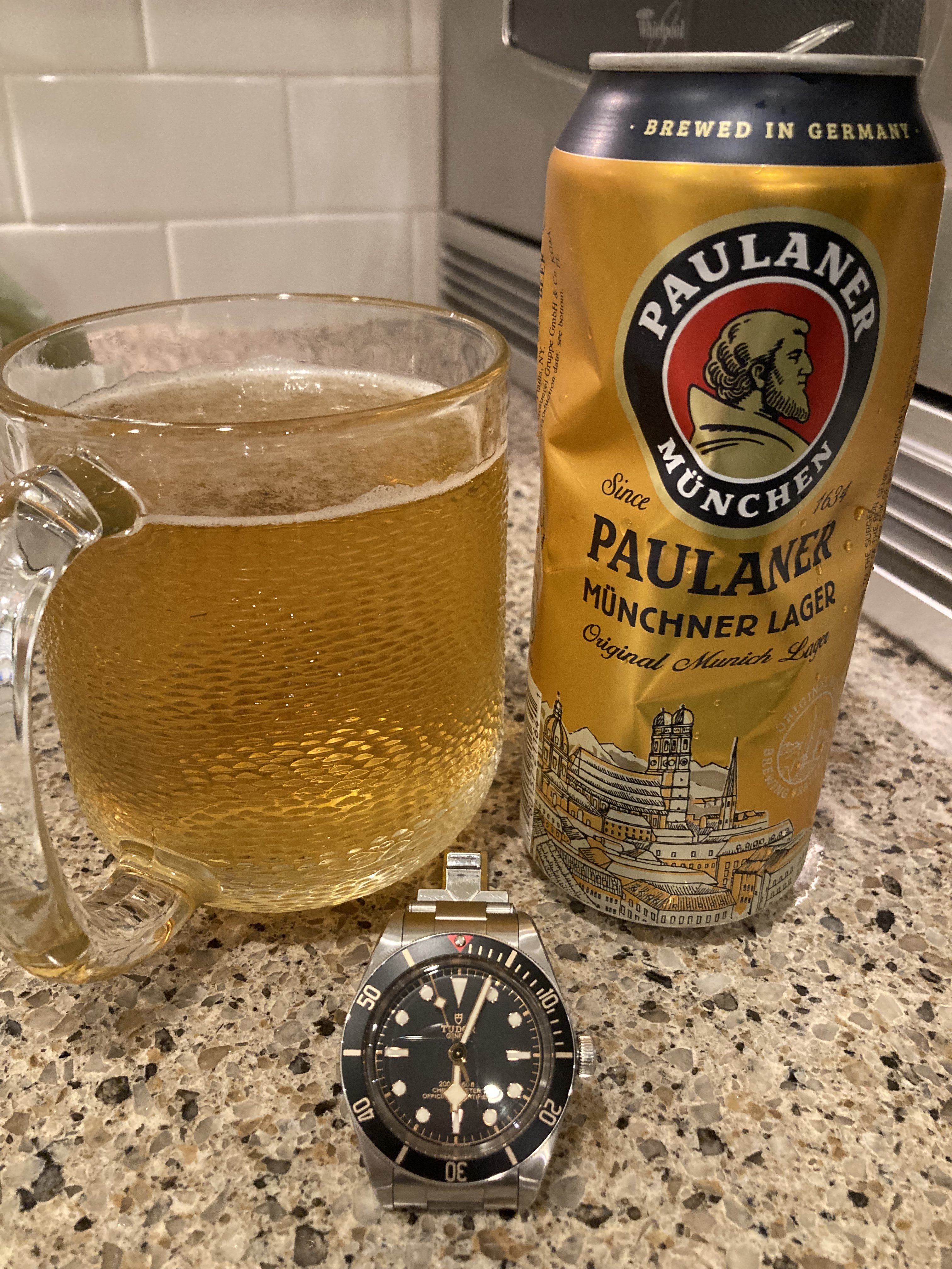 Posts 943 Likes 11,093 JPE.88305 ·Dec 2, 2021 Omegafanman Prost! for the weekend..... A nice full bodied lager. My Paulaner says hi.