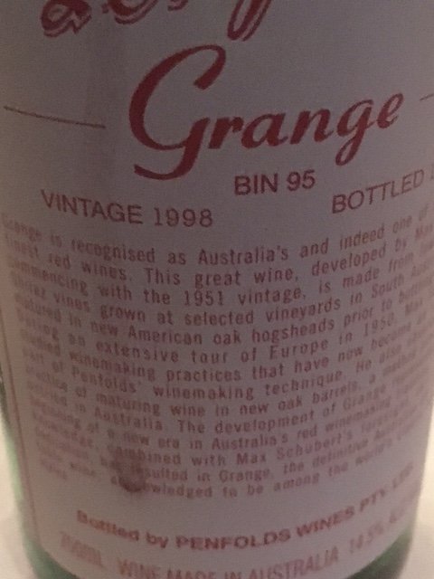 Then 98 Penfolds Grange, a great vintage of a wine just entering its pubescence. Decanted for 5 hours and boring (as almost always) as batshit. Stunningly overated. Not talking one dud bottle here, but 3 bottles, perfectly cellared, in their pomp. Possibly should have bought a 6 pack of craft beer and recited 'the Emporers New Clothes' instead.