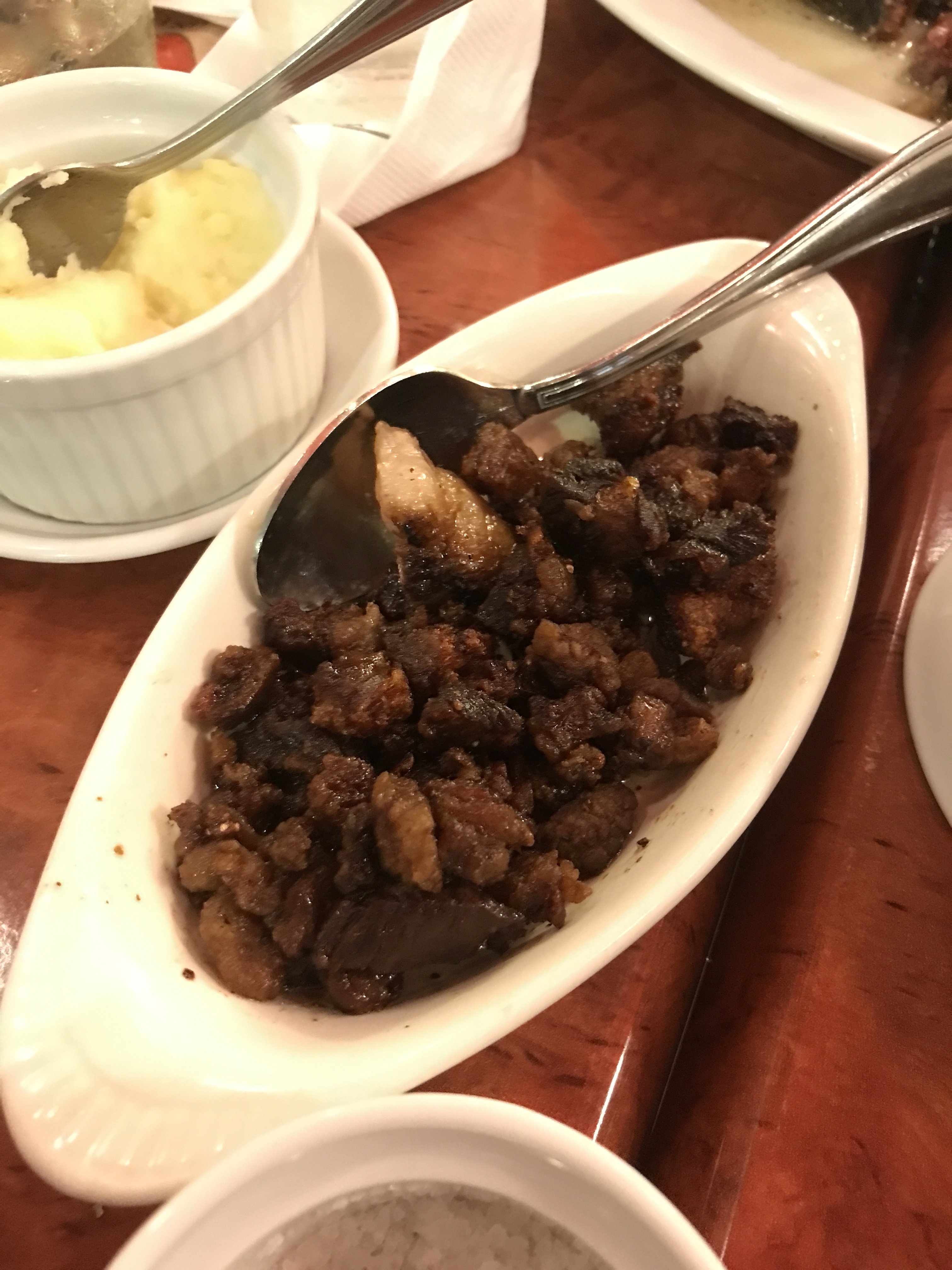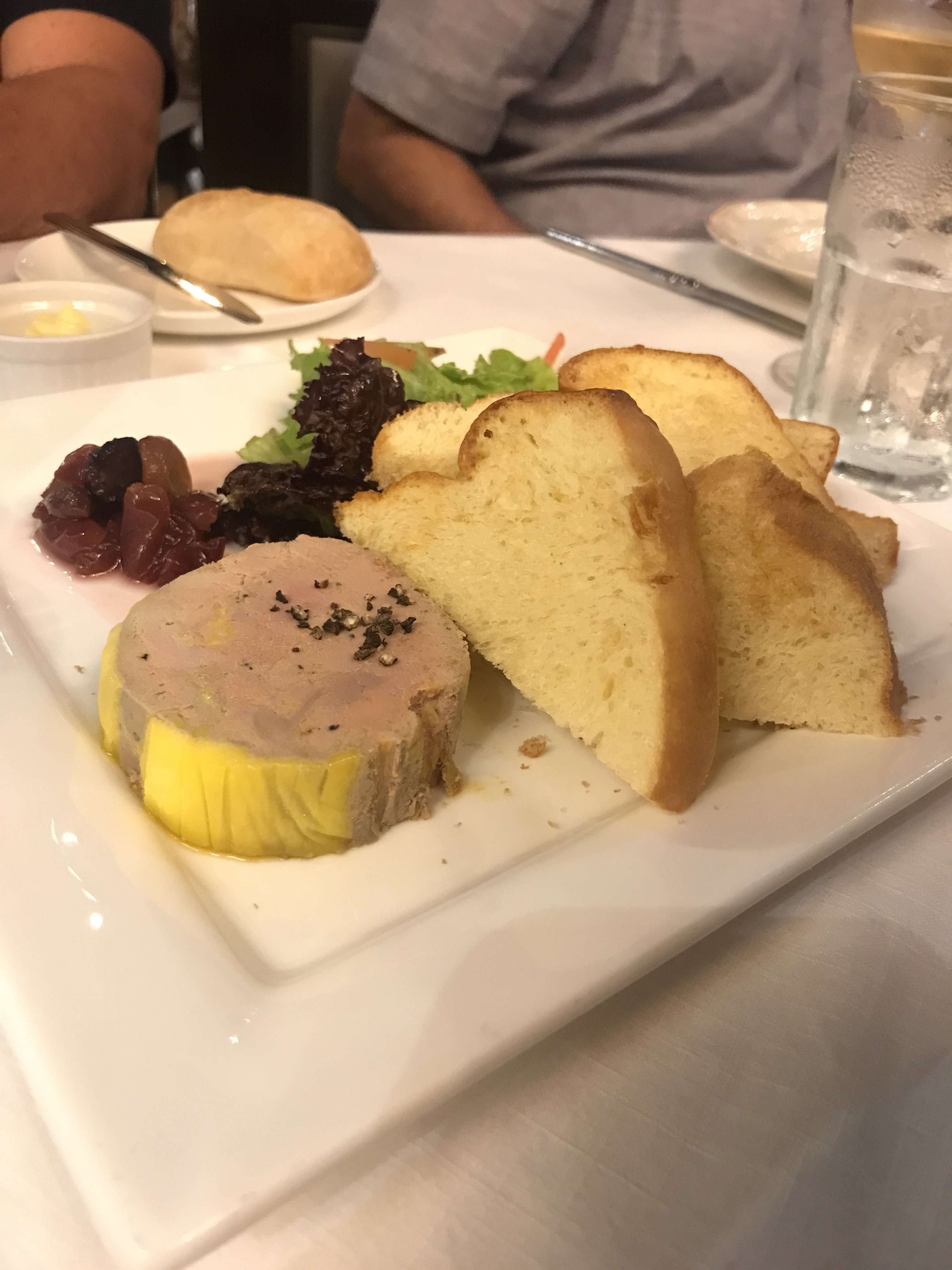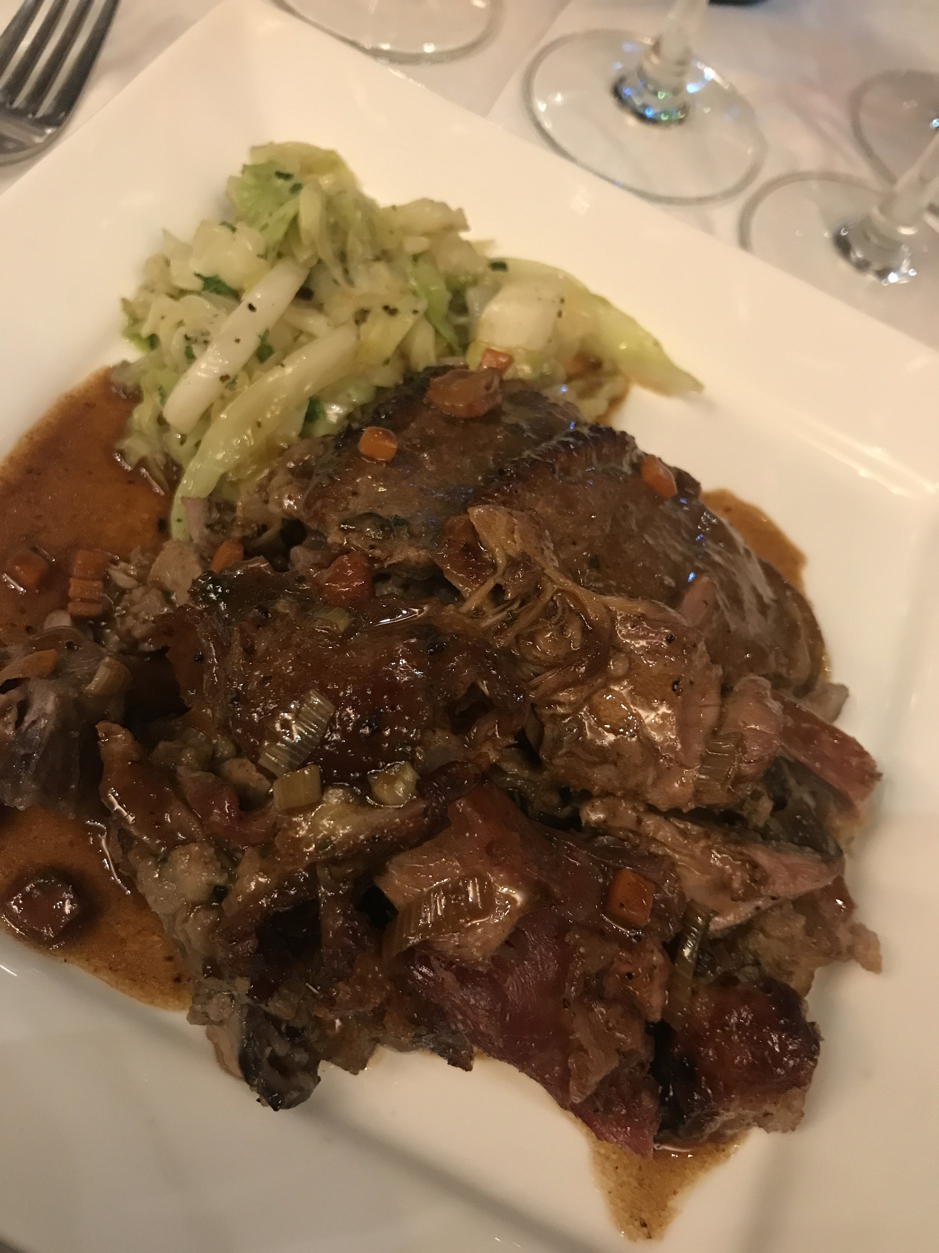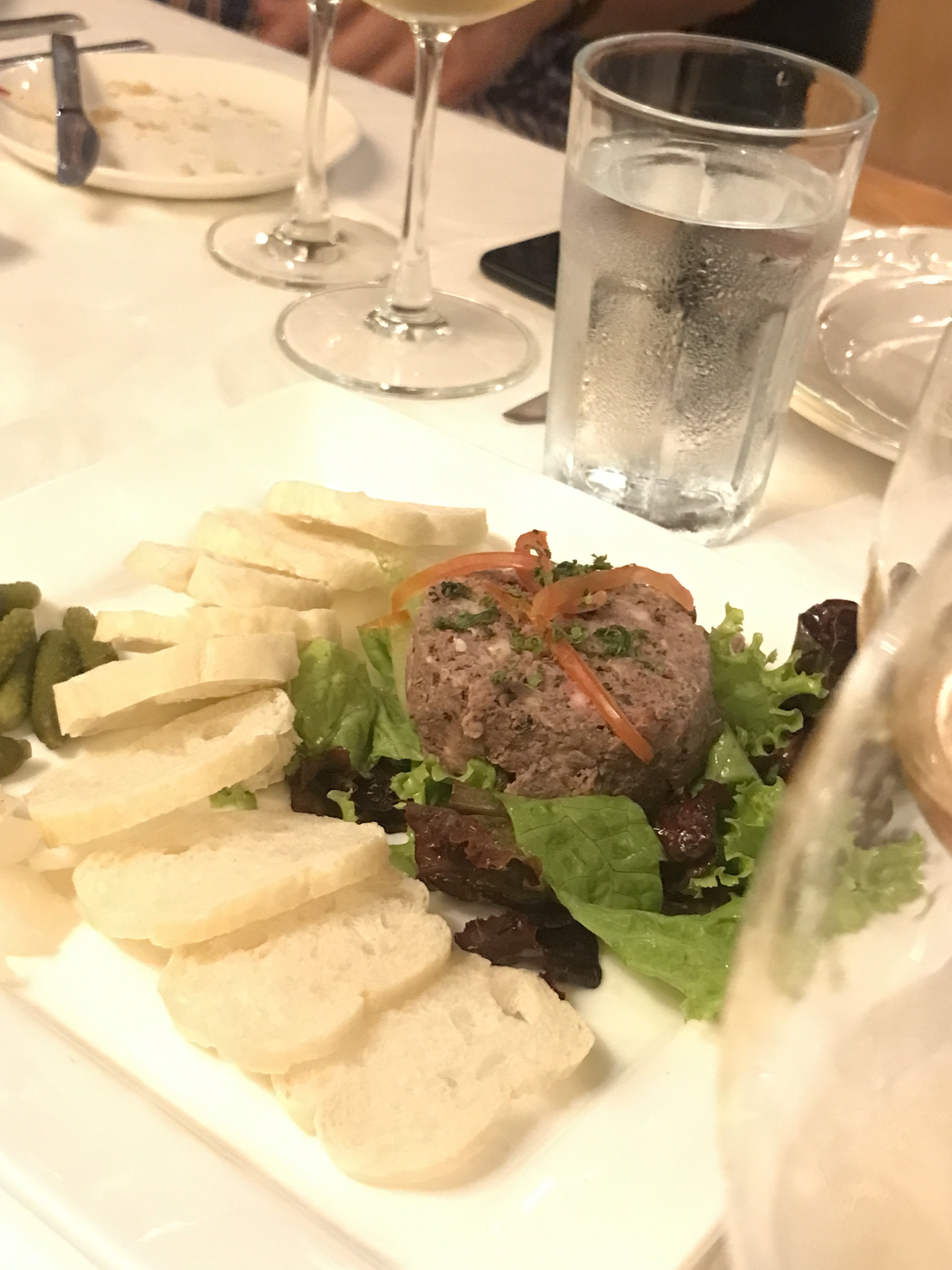 Tonight was our wine group’s Christmas dinner at a local French bistro, that we have been patronizing for years. The chef prepared off-the-menu stuff for us