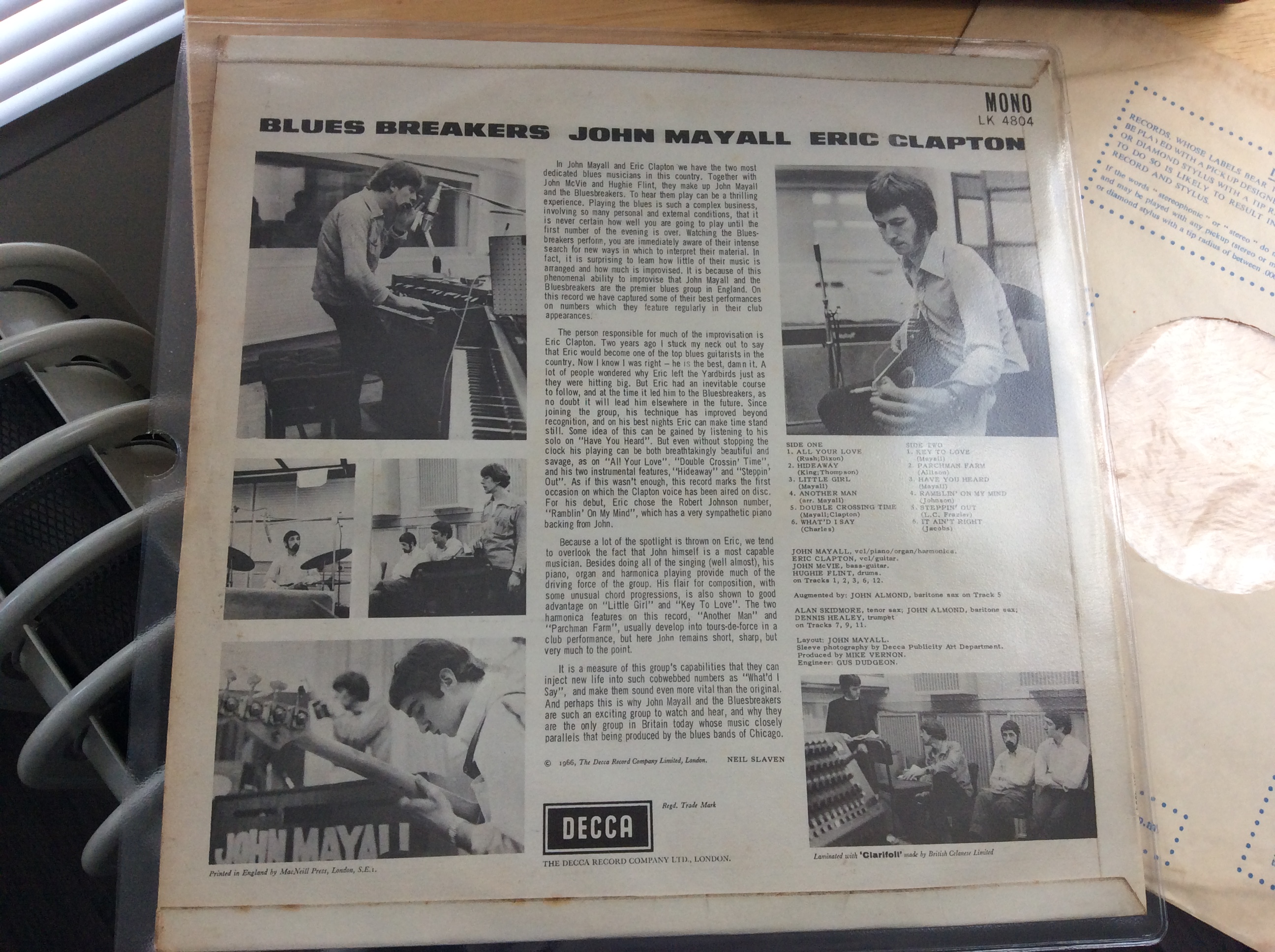 This one has been on my want list for a couple of years now ,but I’ve been holding out for a unboxed Decca in mono 1st pressing flip back cover in excellent condition ,which unless you want to pay silly money you have to bide your time . And this popped up on the bay a few days ago ,and after checking out a few details regarding 1st pressings I sent a offer which was accepted, so a few days later here it is & what a great copy too . Probably the best album John Mayall ever made in my opinion ,& with the bonus of having both Eric Clapton & John McVie on top form too & not forgetting Hughie Flint on drums . Take it away John & play those Blues 👍,
