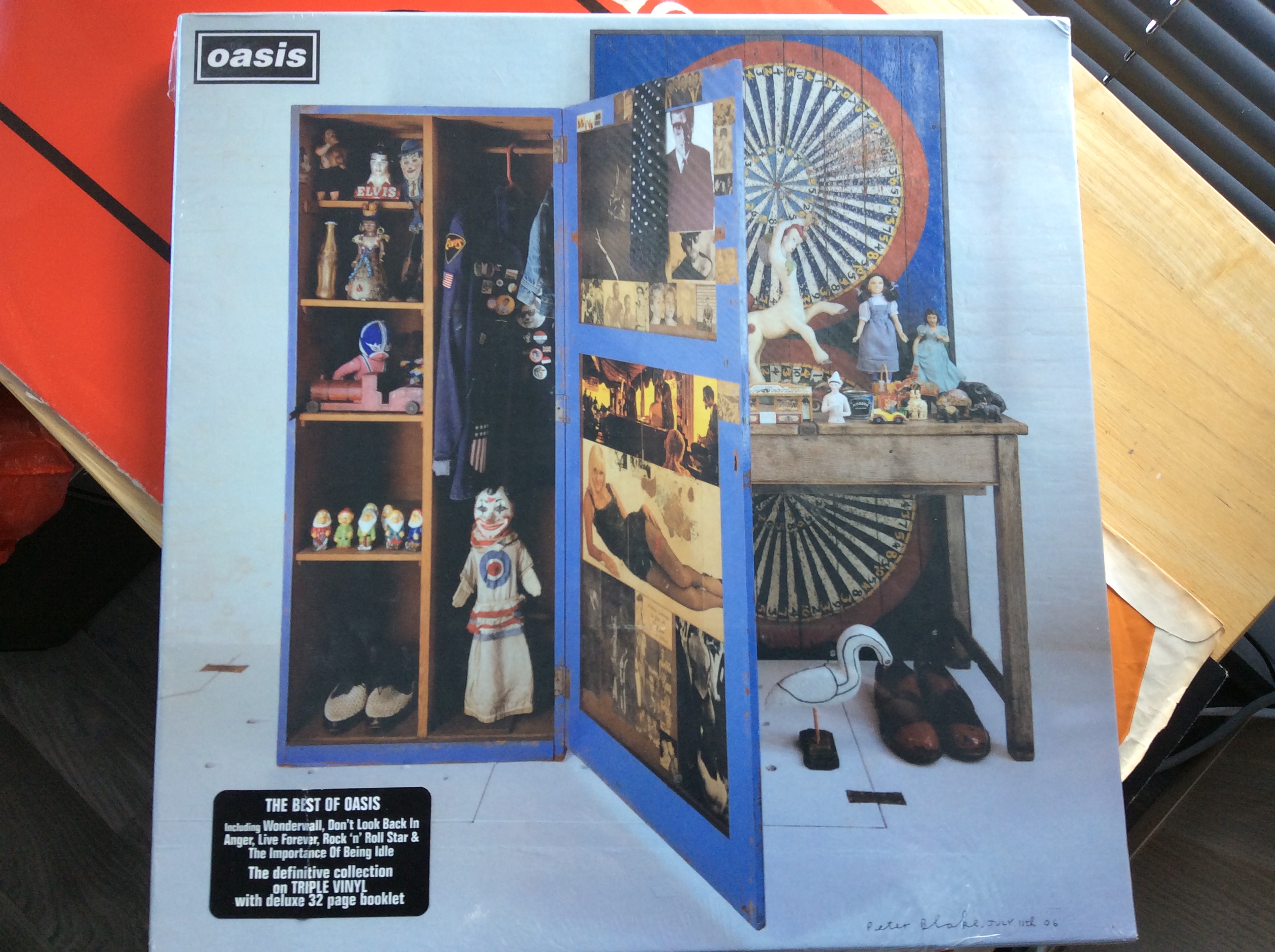Oasis , Stop the Clocks . The best of Oasis on triple vinyl from 2006 with artwork by Peter Blake and yes it’s still unopened & sealed ( apart from a small tear on the back ) that happened by accident but I don’t look back in anger and some might say it’s definitely maybe one of my favourites. I also have the CD which I listen to ,usually with cigarettes and Alcohol, but sometimes maybe with a glass of champagne supernova while watching the world slide-away
