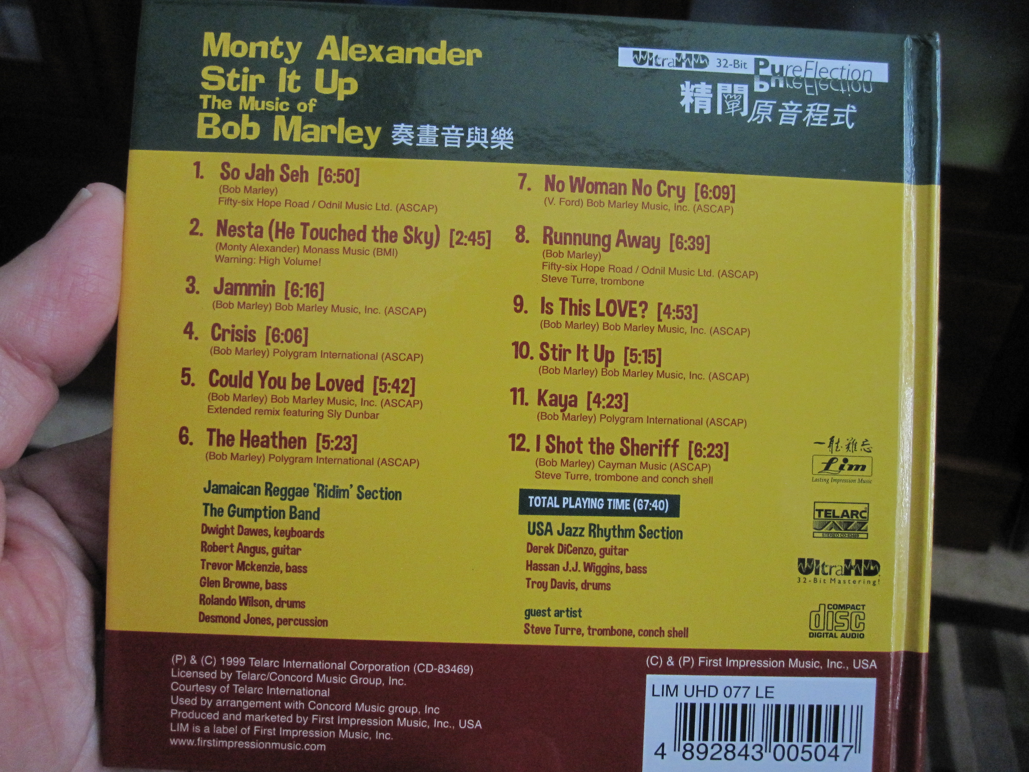 I discovered Monty Alexander from Jamaica a few years ago, this is one of his best issues. Great Bob Marley tunes and really well recorded, if you have a good system this will give it a workout.