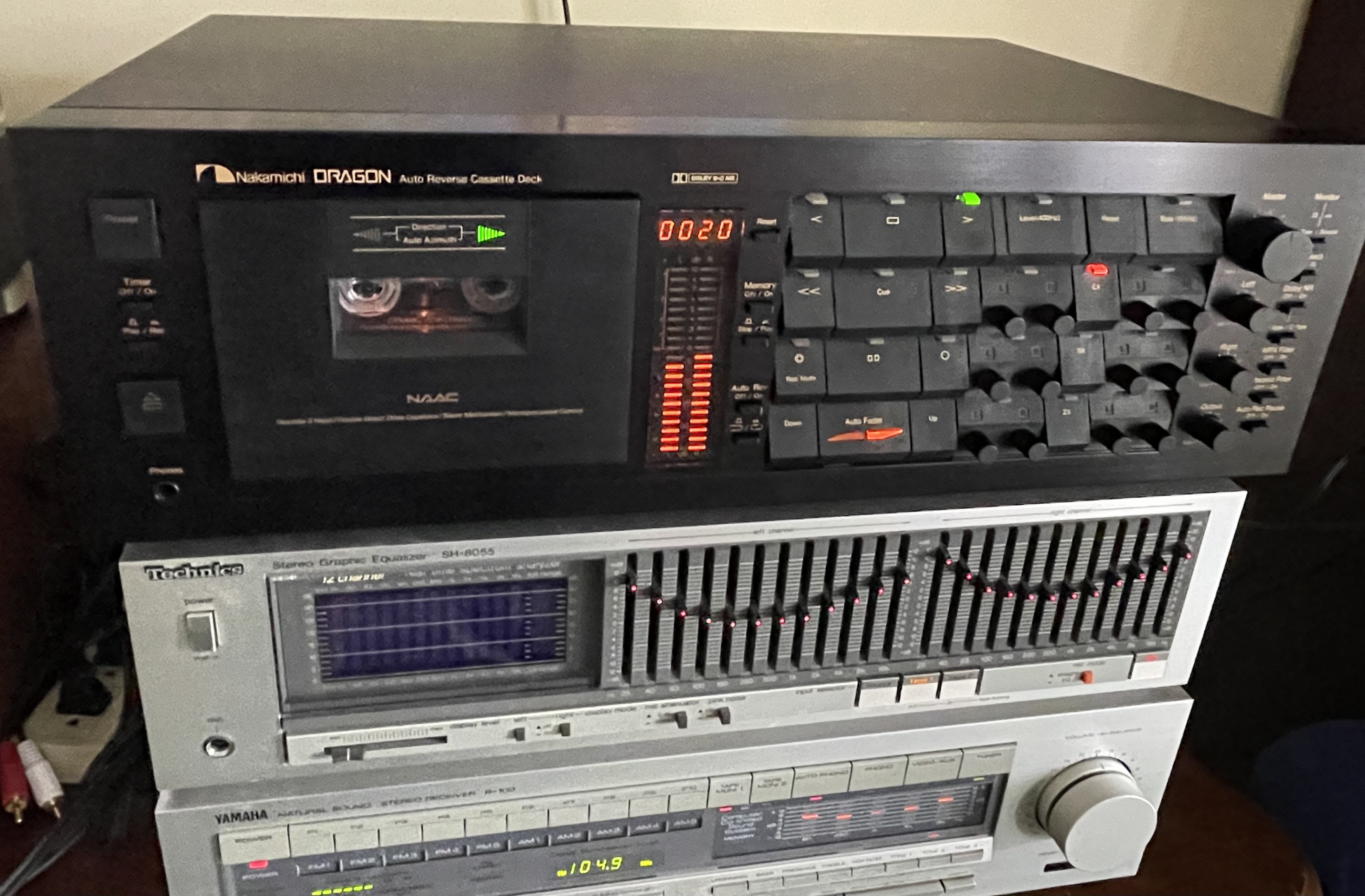 Recently added a Nakamichi Dragon to my 80s room. Like so many young GIs stationed in Asia, I bought the silver pieces in 1985 in the Philippines. The Dragon was something I dreamed of then....cost 2500 in 1985. Do the math. Auto azimuth correction. Crazy. Listening to the 80s, of course.