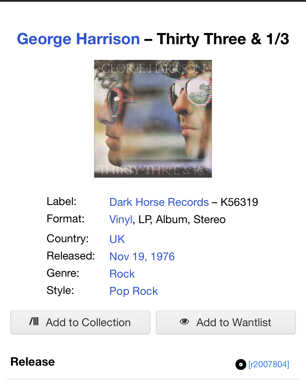 Great pick up that 33and a 3rd always reminds me of Harrison’s album