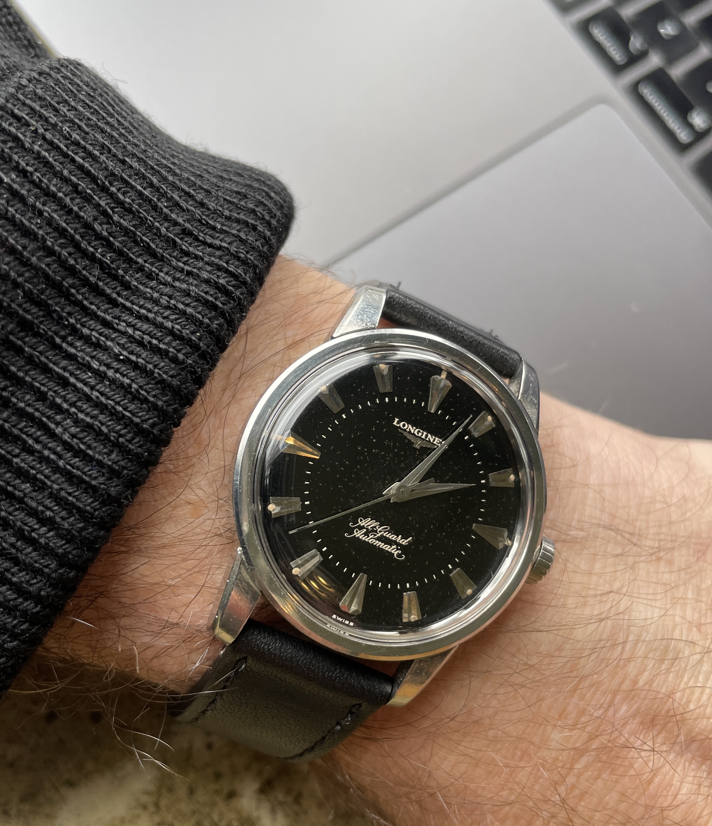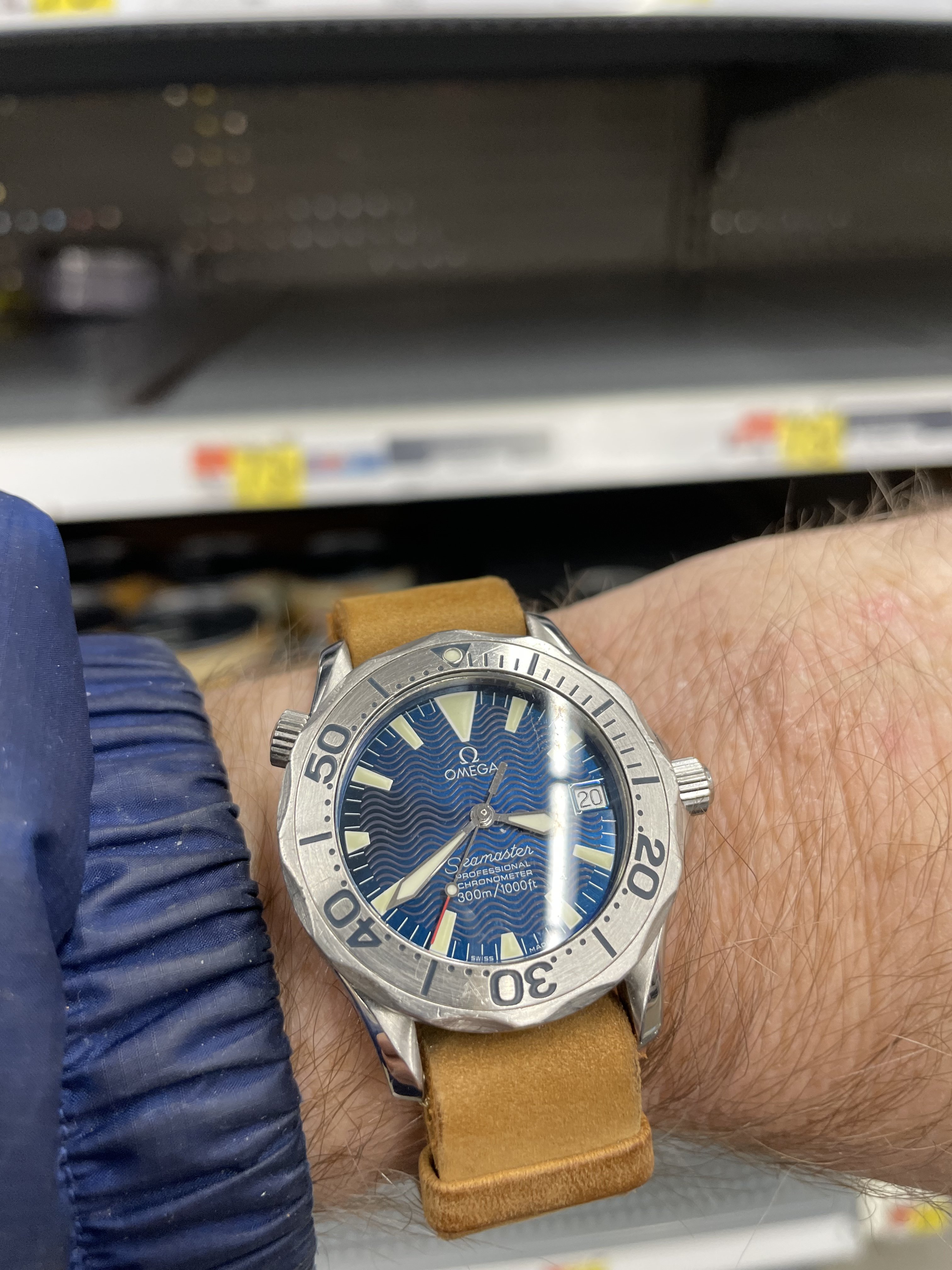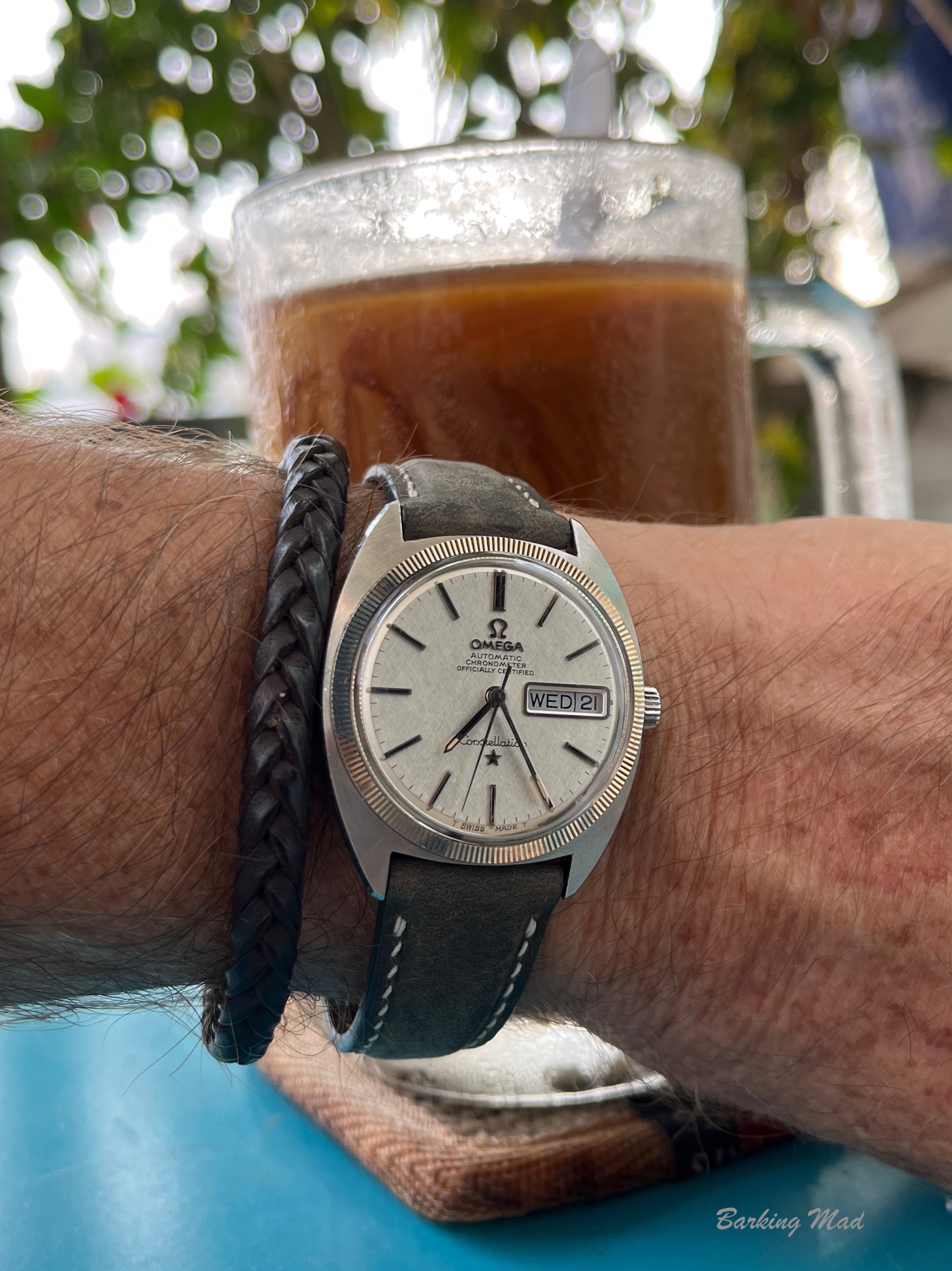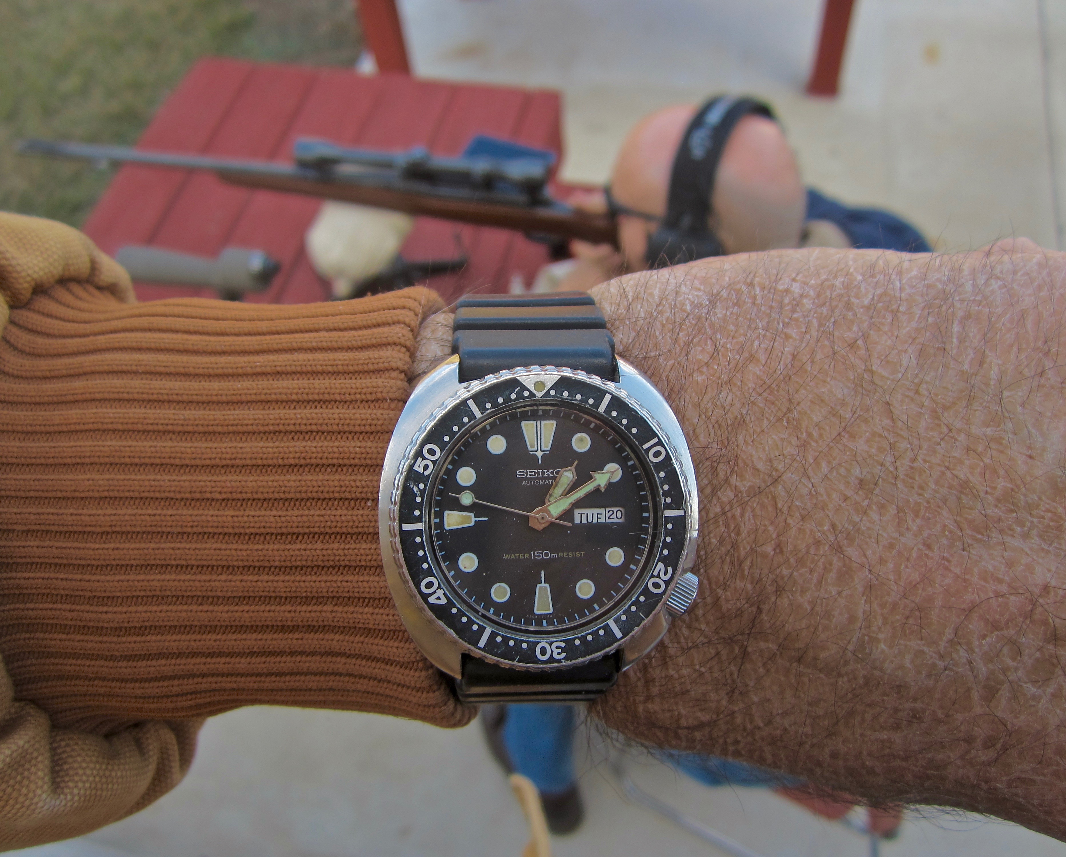 Not your common skin diver - ca. 1971 Mathey-Tissot “Mergulhador” Skin Diver - Ref. 1635 - powered by a “Ultra High Frequency” (UHF) ETA 2784 automatic movement. (Some vintage marketing there) - Mergulhador meaning “scuba diver” in Portuguese, which makes since as many of these carry a Portuguese import stamp. The iridescent blue dial on this one is just gorgeous and changes hues depending on the light. They also were available in red, green, brown & silver dials if your lucky enough to come across one.
