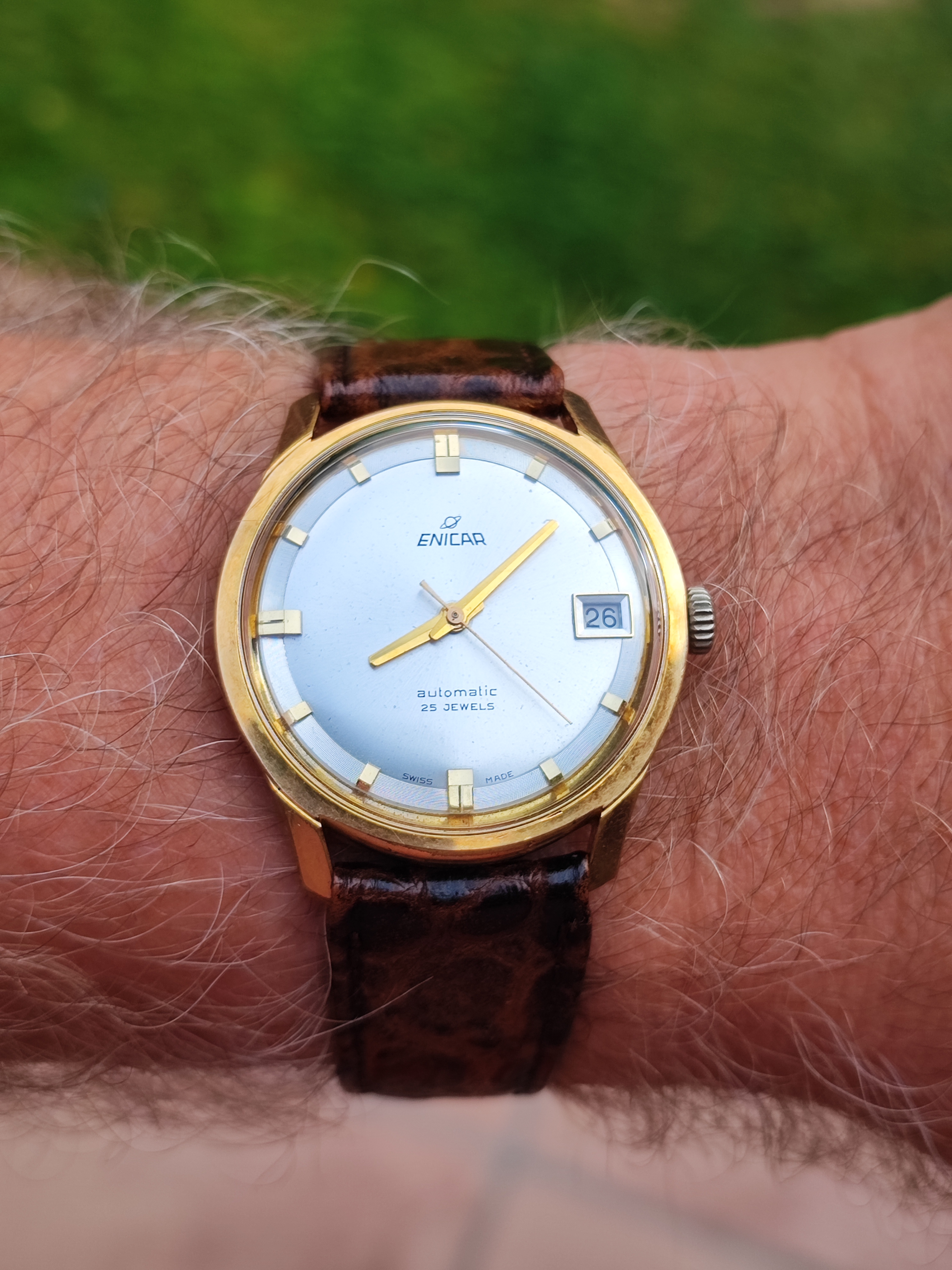 I love the outer dial track style of these Enicar references with the shiny microgrooves they really catch your eye in the sunlight, I have 3 of them with this dial concept all slightly different in colour.