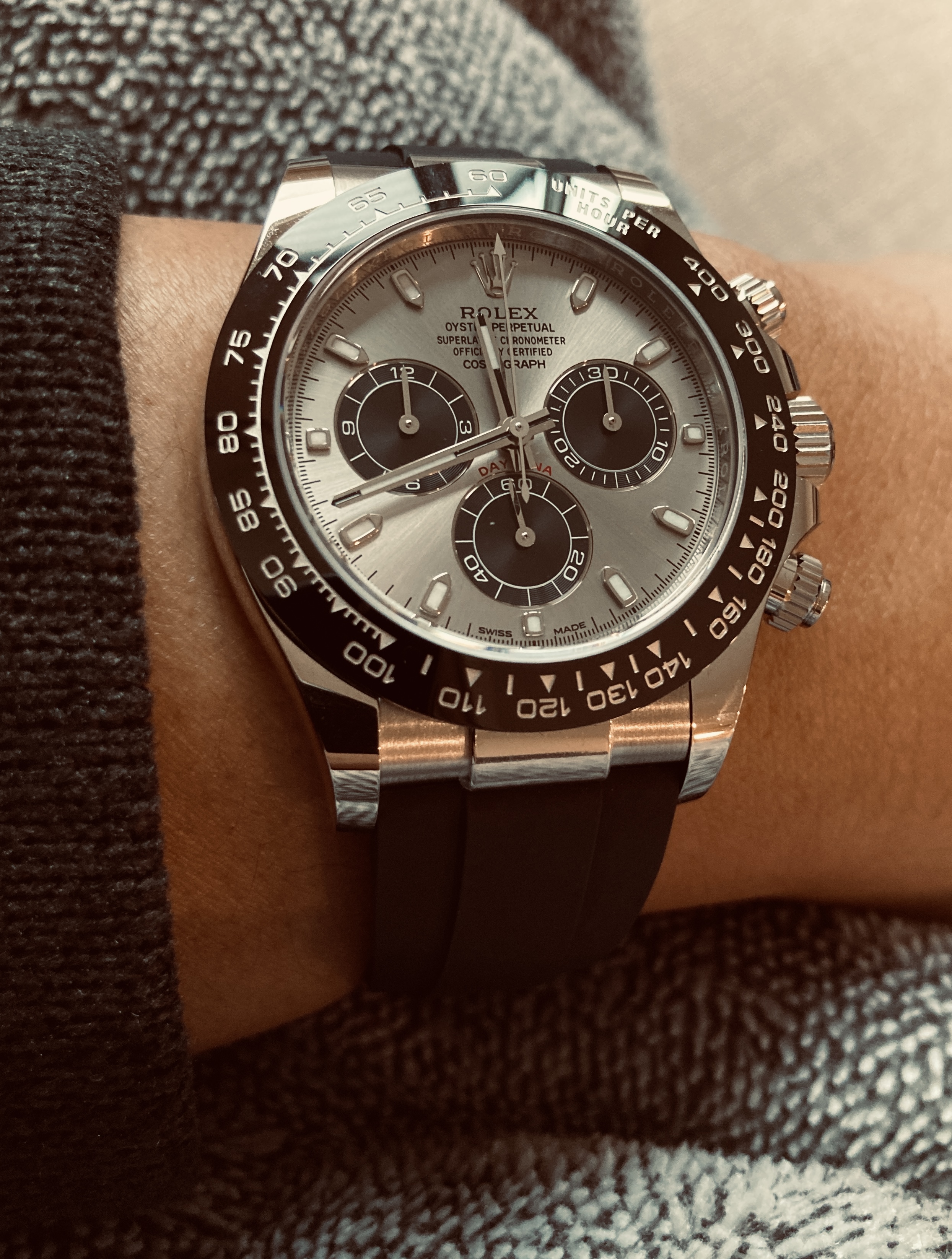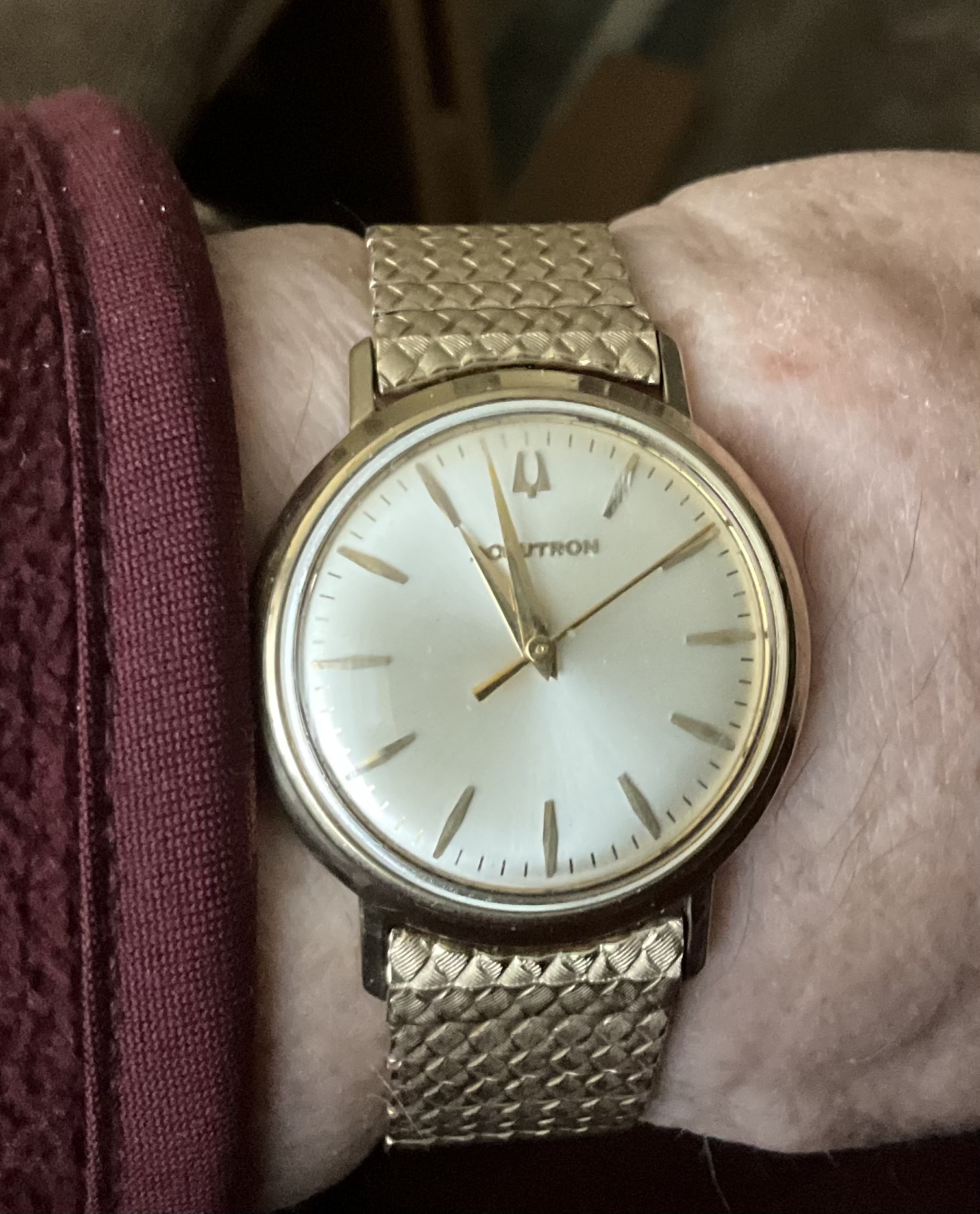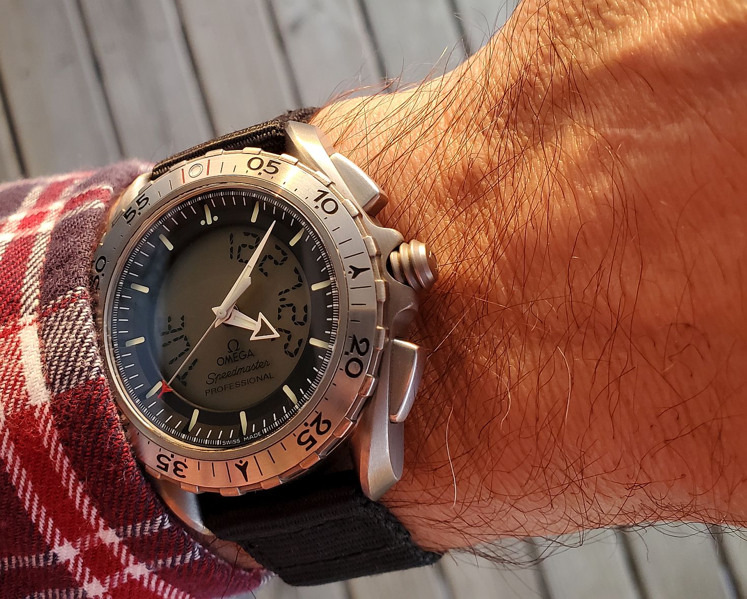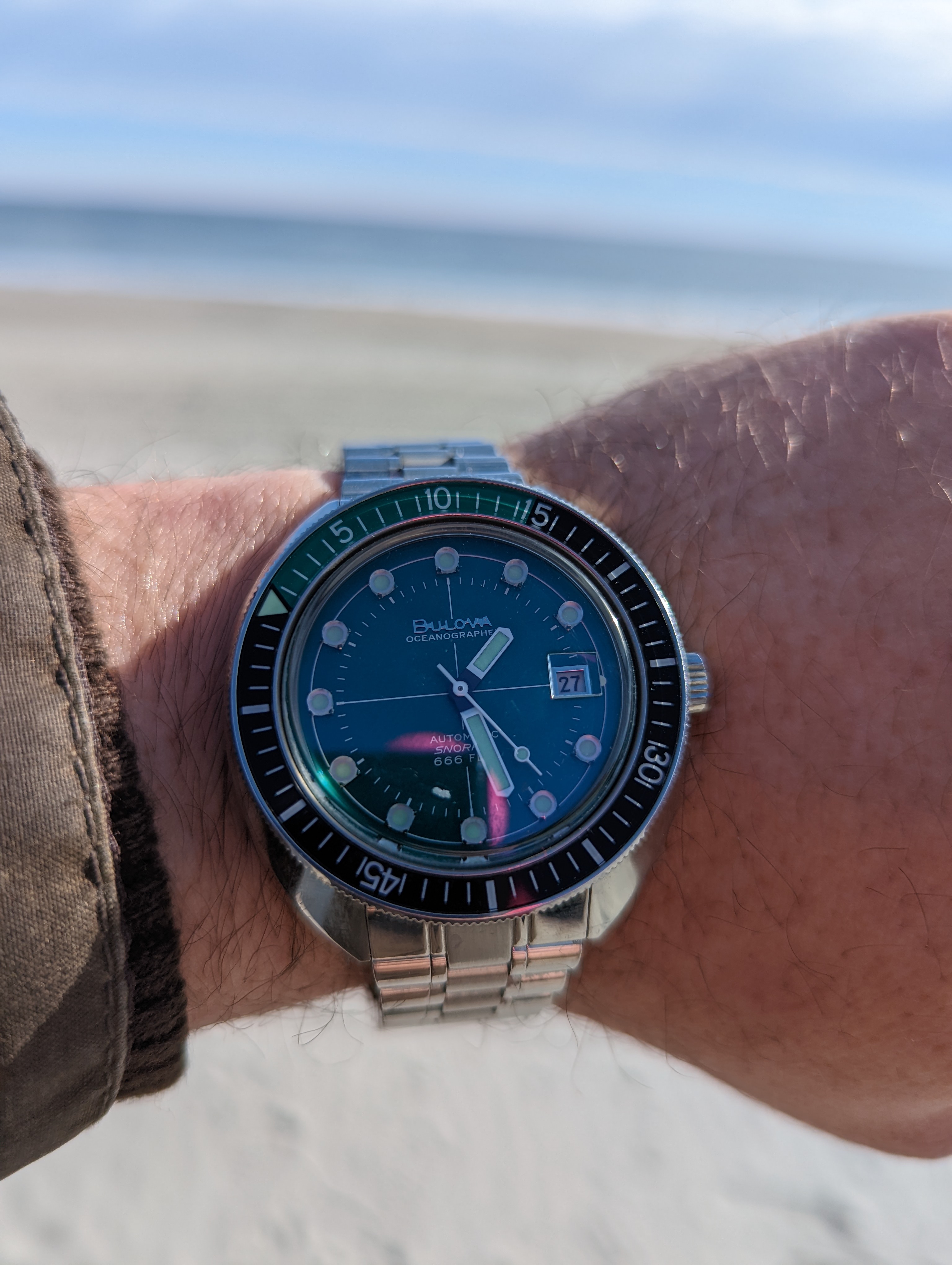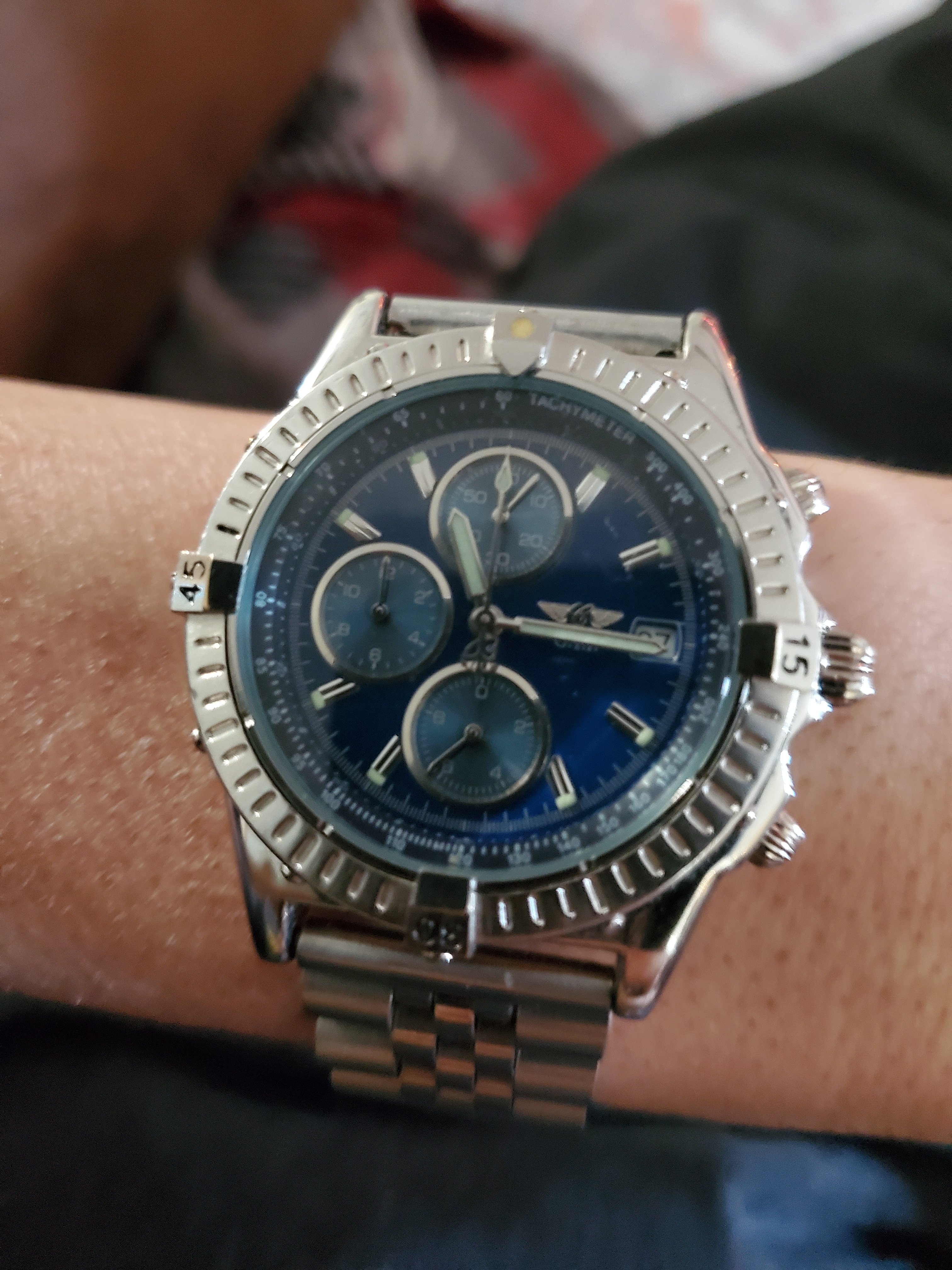 Non-Swiss today, a Grand Seiko Spring Drive GMT. This watch has a chocolate sun ray dial, Seiko puts it on a black croc strap which never seemed right to me to I ordered a padded beige Genteel calf strap with brown stiching to bring it all together. Uncanny accuracy with these watches and the GMT function is easy to use when travelling.