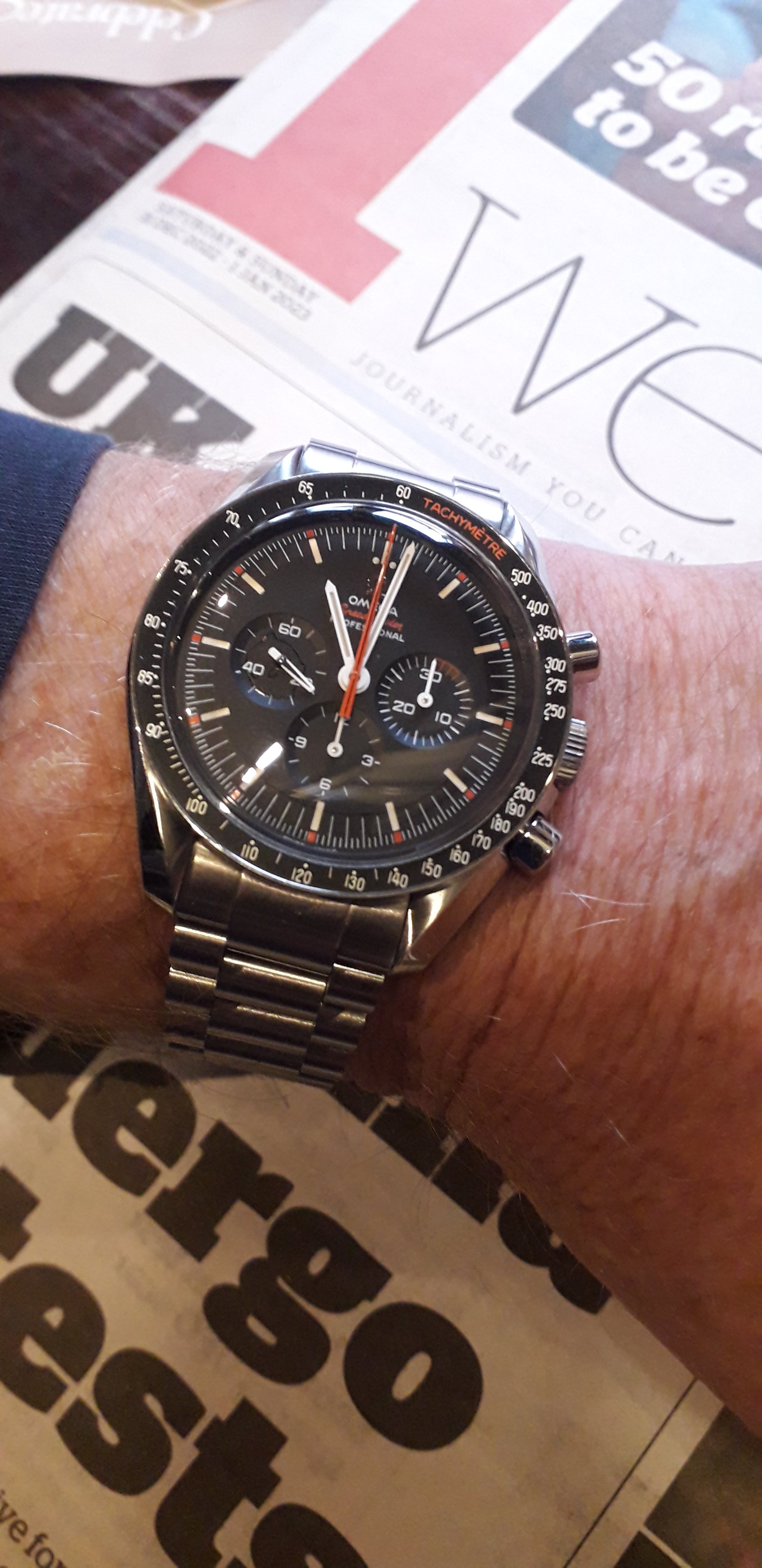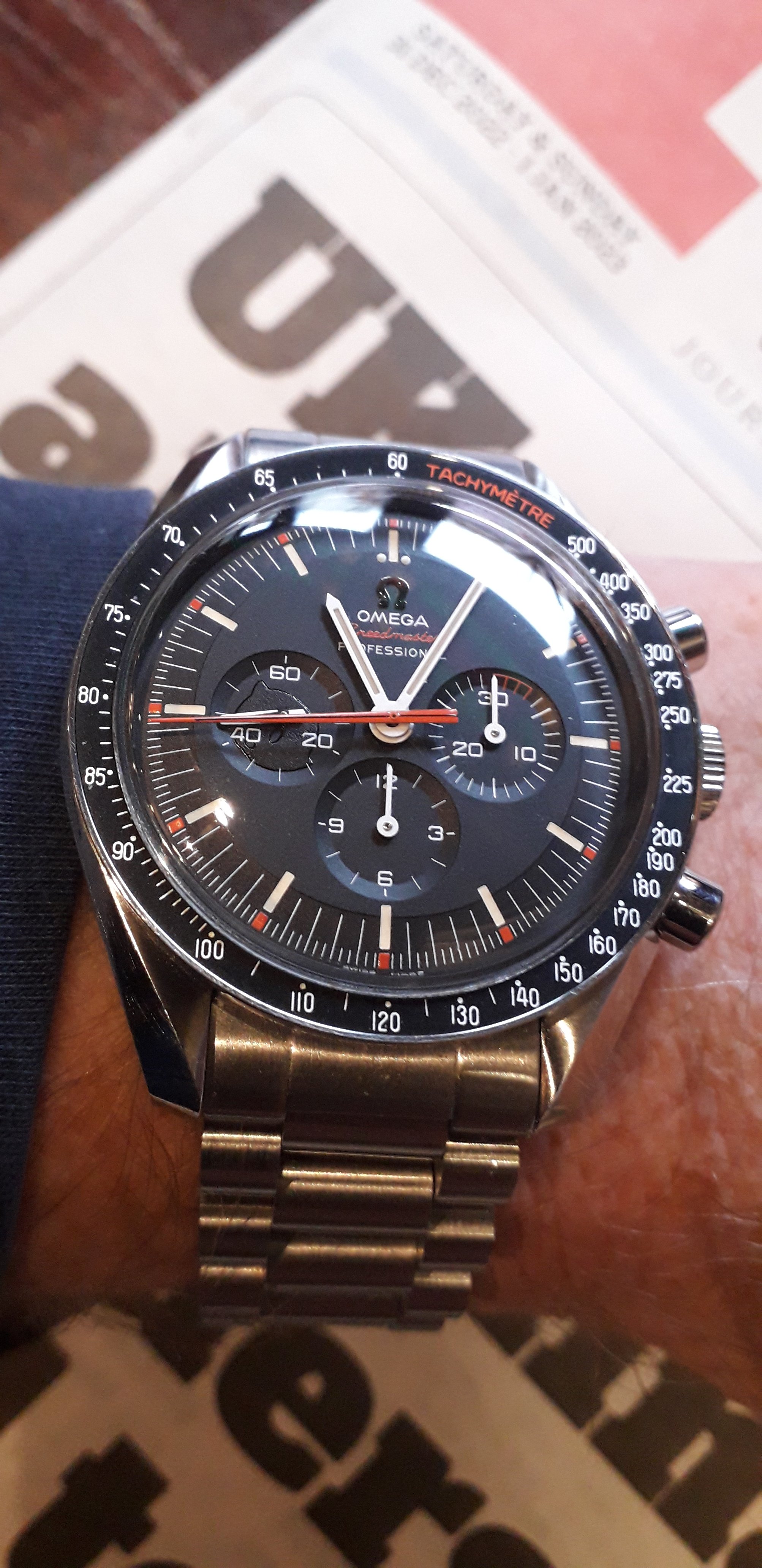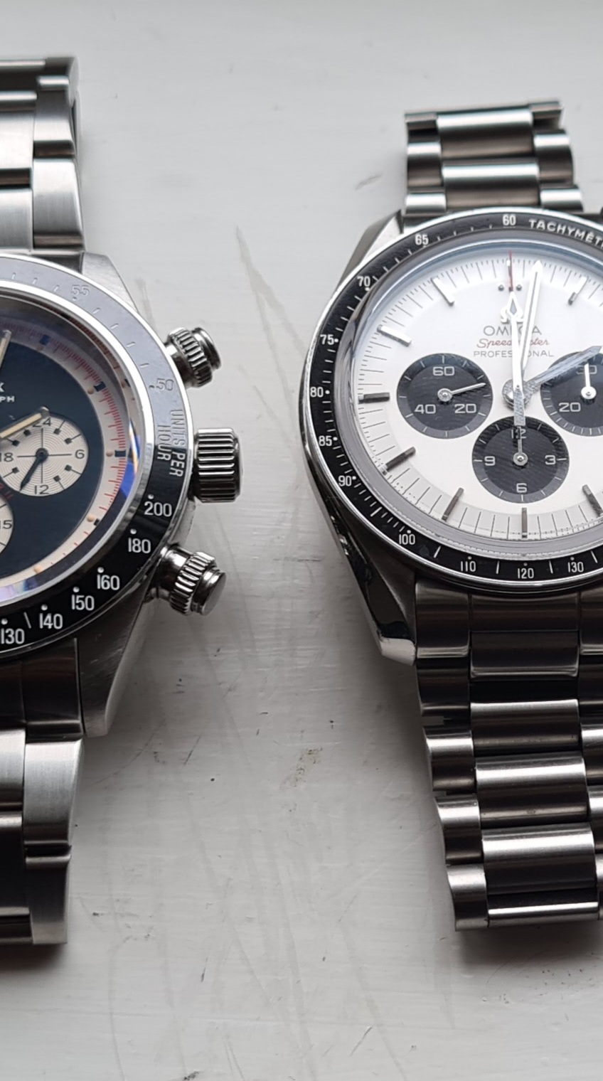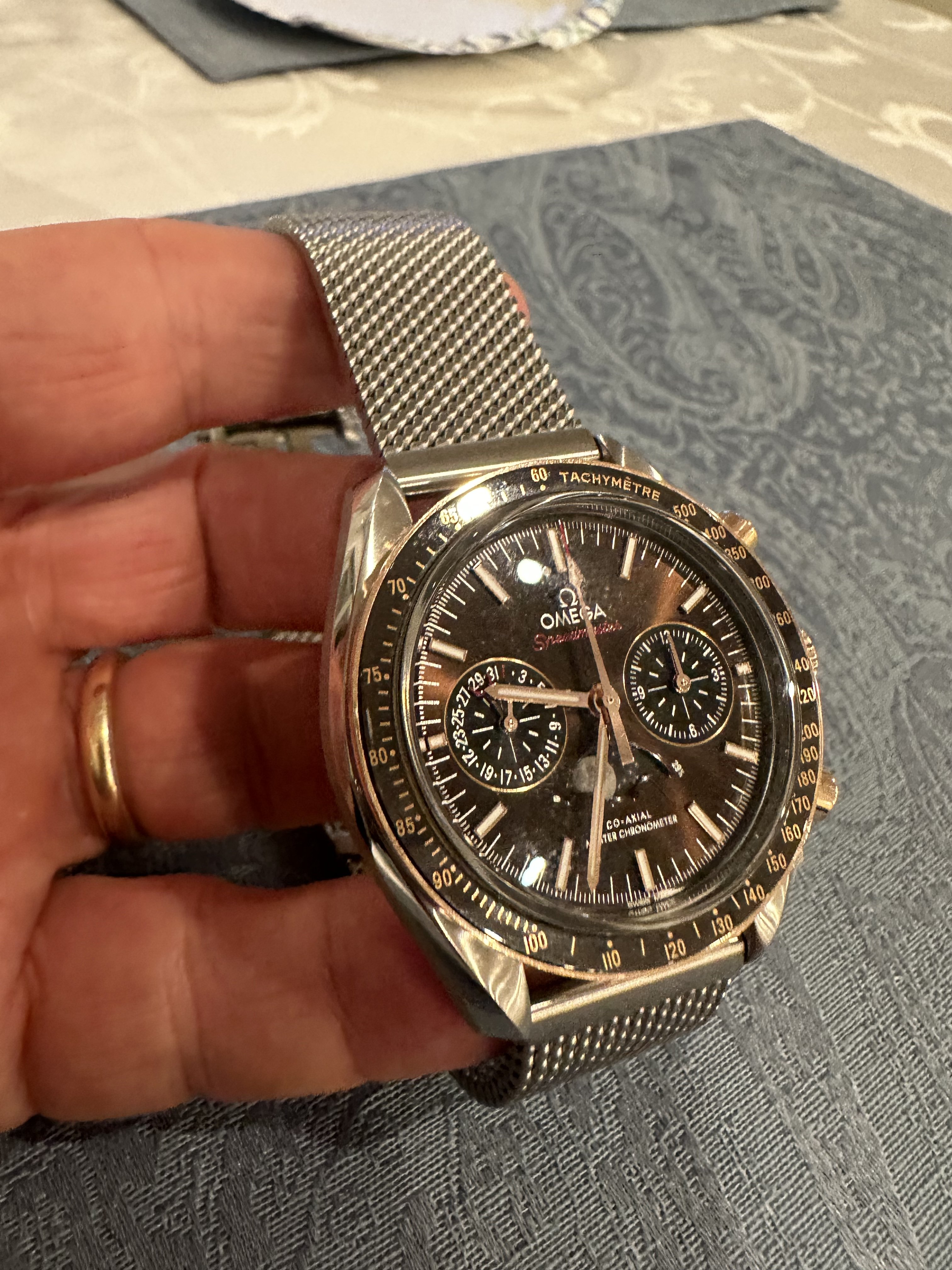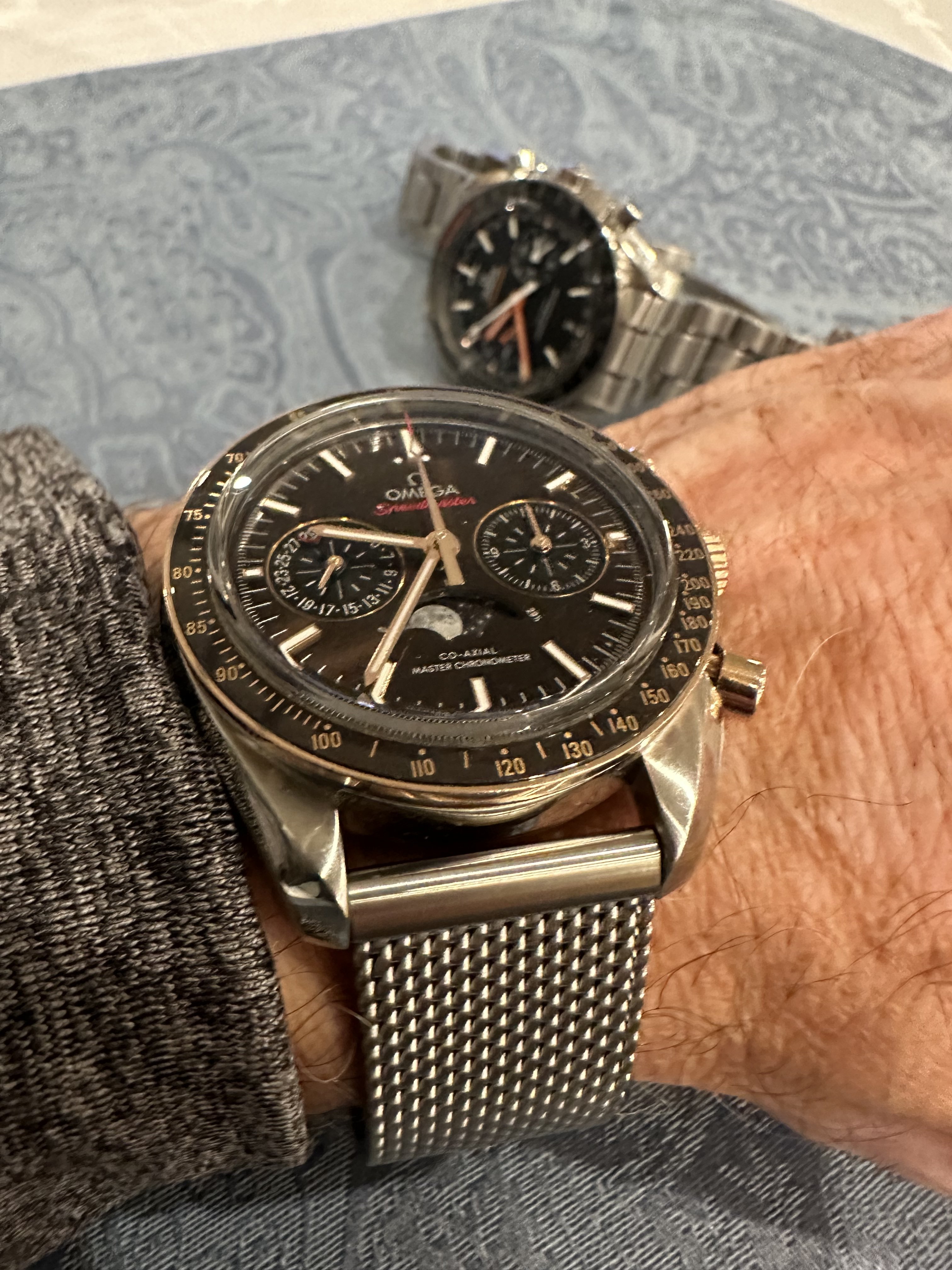 Posts 653 Likes 9,594 Flysatchmo ·Dec 31, 2022 Some strap changes before New Years Eve…got the mesh strap as a Christmas present and planned on putting it on the new Speedy Racing but liked how it looks on the Sedna brown moonphase. Happy New Year everyone!!