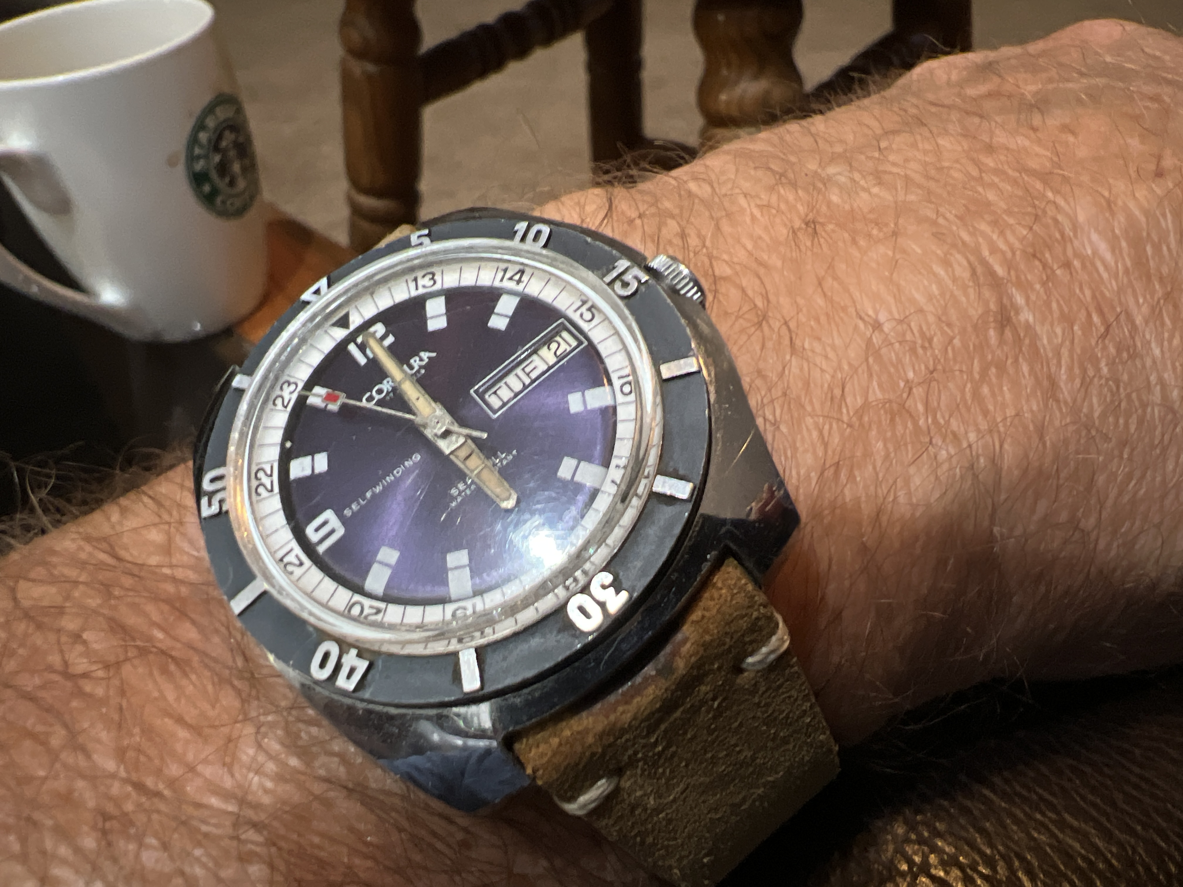 Posts 4,803 Likes 48,359 ghce ·Jan 3, 2023 Time for a change out, haven't worn this one since I bought it 12 months ago. I think I got it serviced? but can't remember, need to check my records. Arcadia automatic.