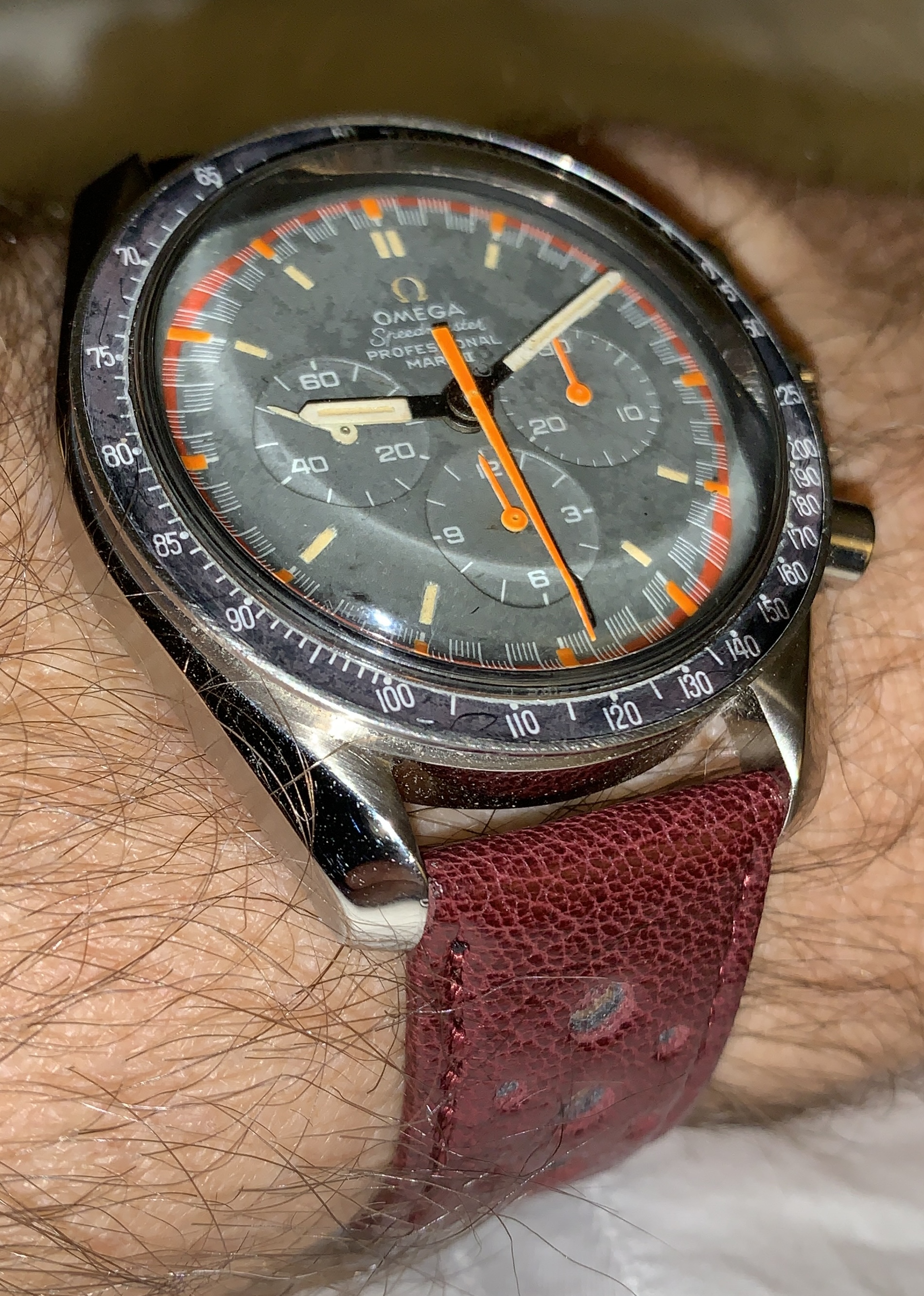 This one tonight. On a RalStra Driver strap designed for this Speedmaster.