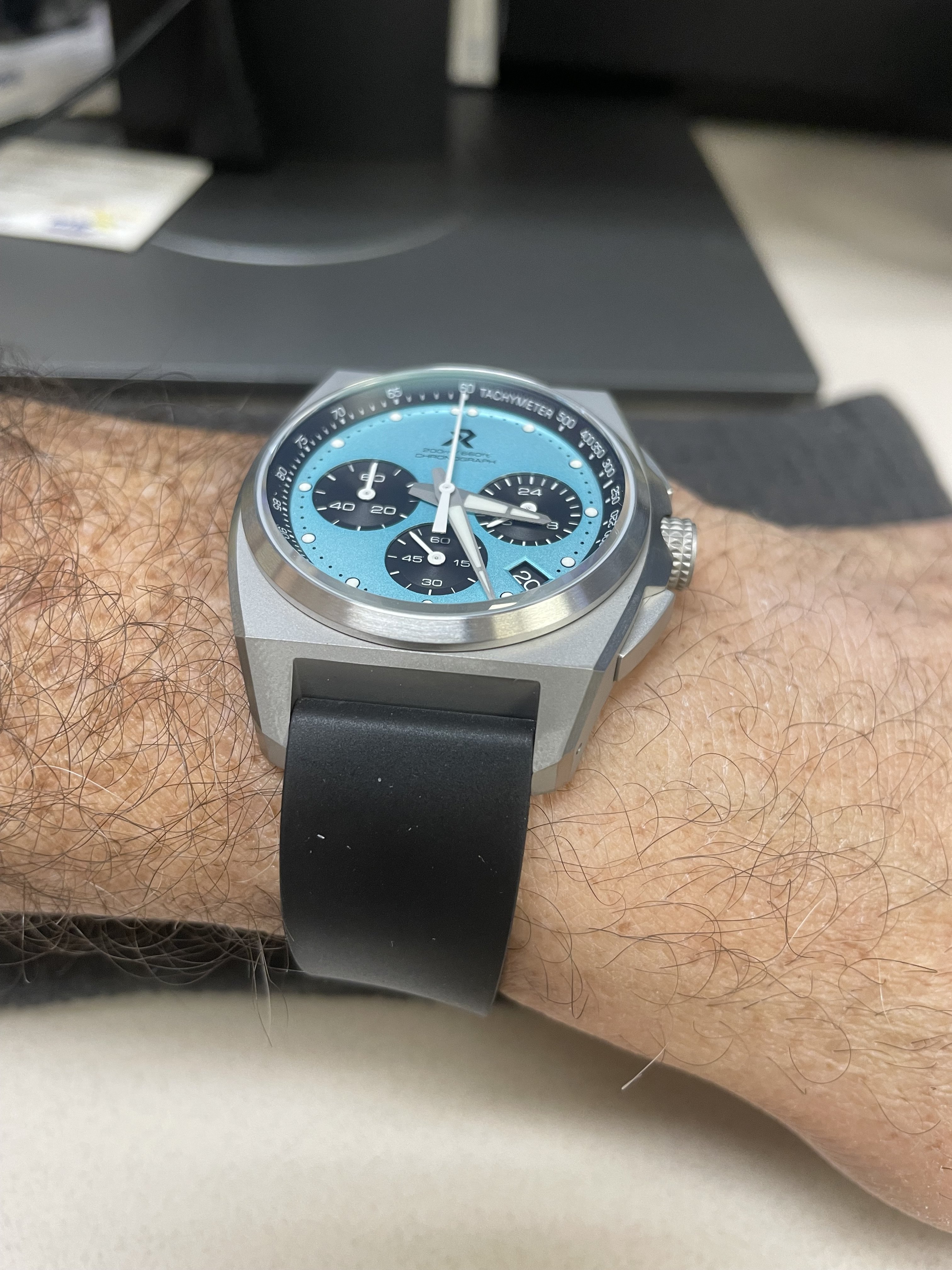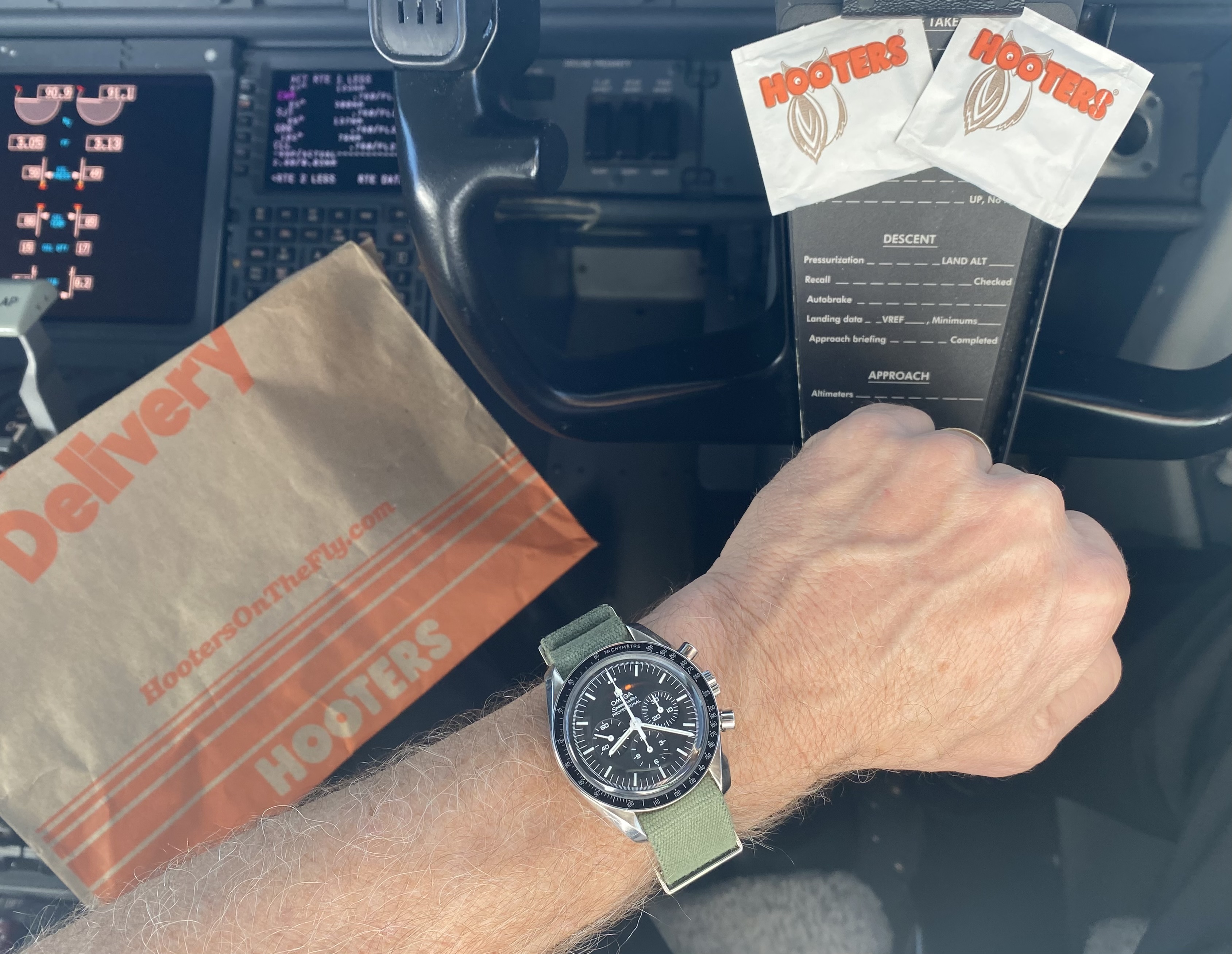 Posts 6,581 Likes 78,213 Mad Dog ·Jan 20, 2023 Still phliegering with my beloved 1861…now on an Omega mil green polyester NATO…Hooters wings for breakfast…