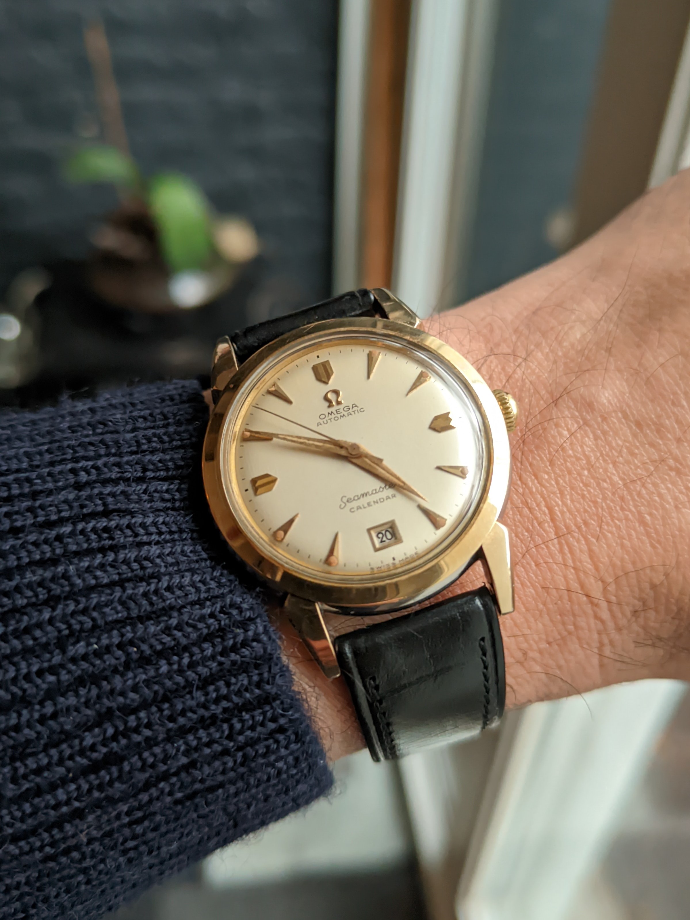 Posts 6,603 Likes 51,640 noelekal ·Jan 20, 2023·Home For Wayward Watches Oh no! It's Shameless Hussy Omega Seamaster 520 with "that" redial on casual Friday here in Retirement-Land!