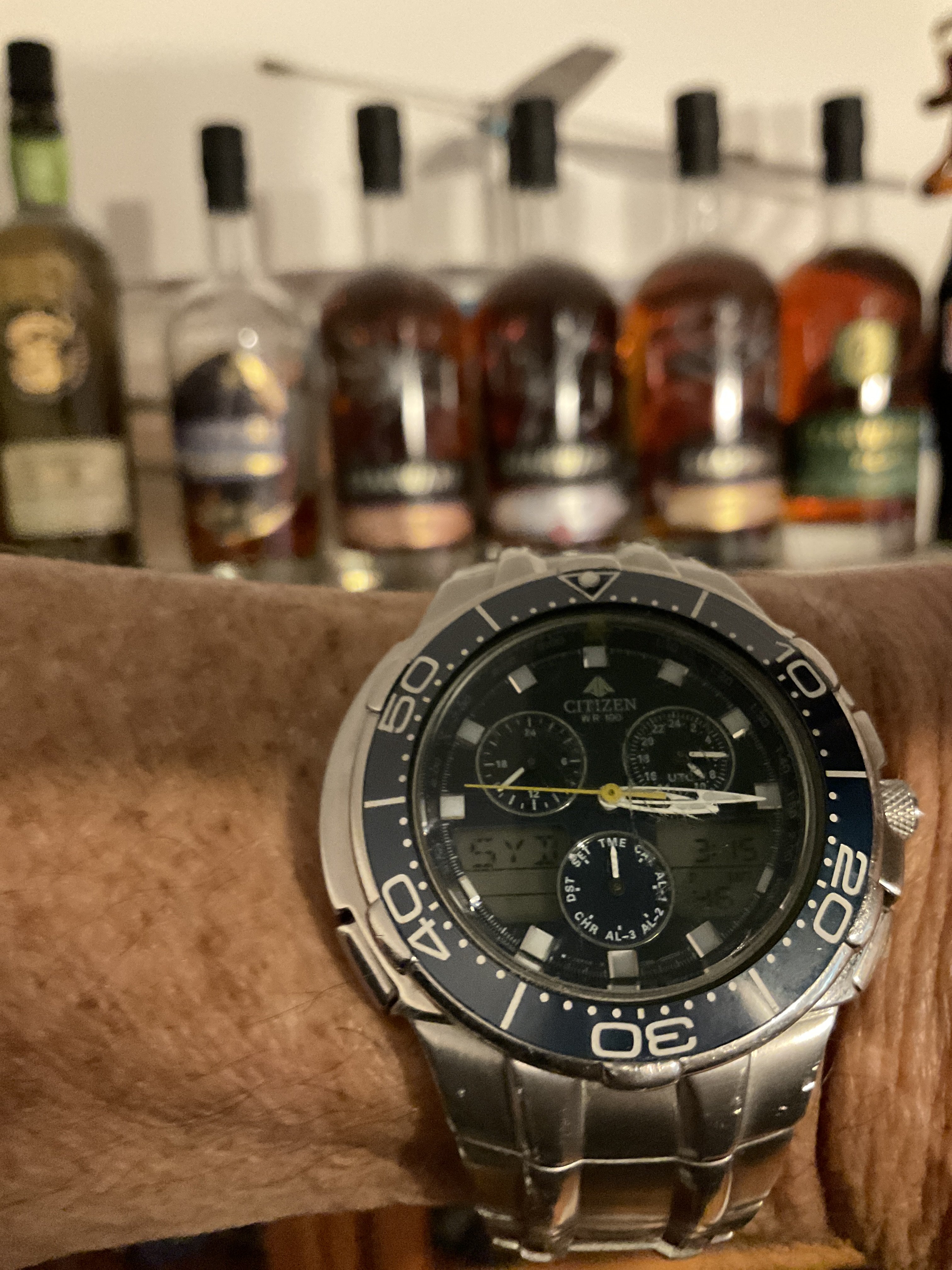 This Citizen Promaster is an aviator watch, it came to me with the 2 bezel slide rule chapter rings missing, looked like crap without them.