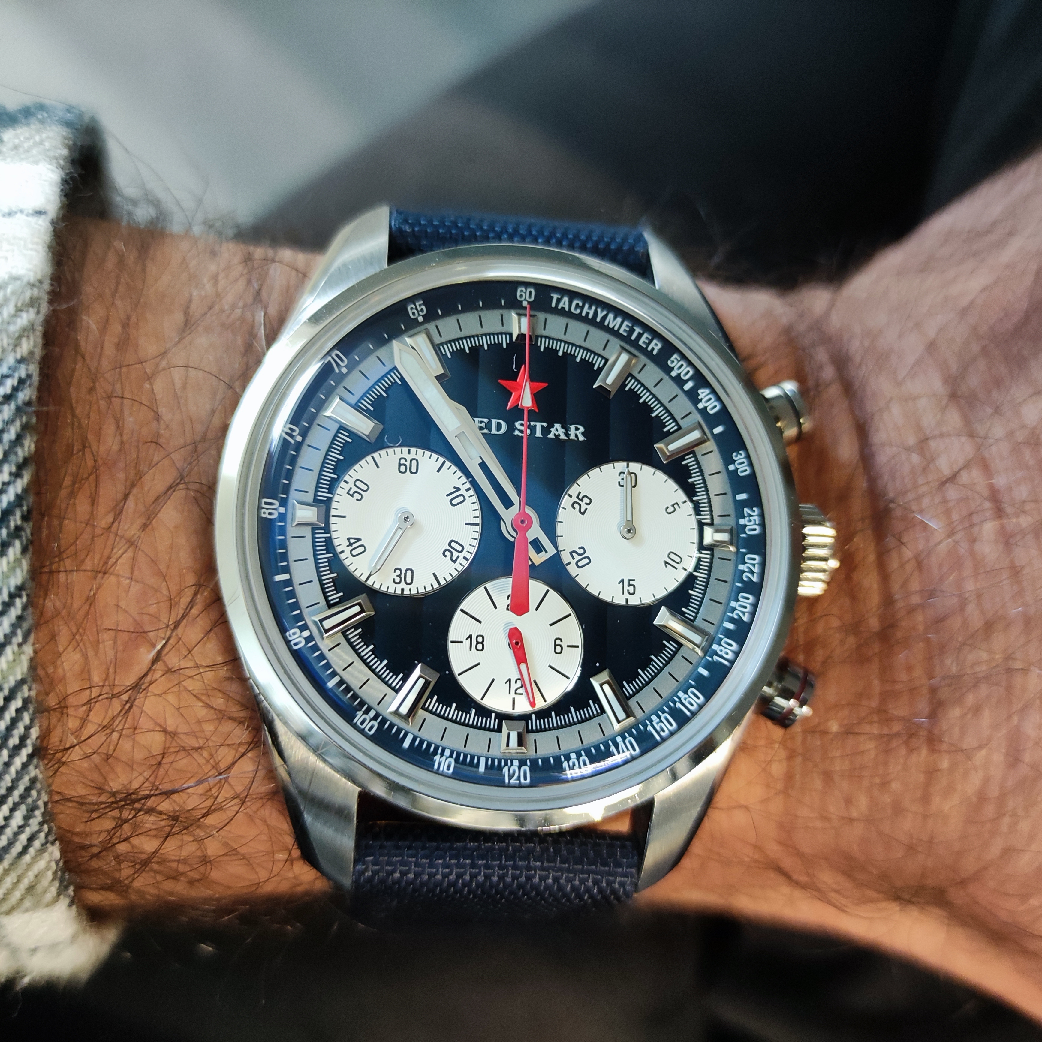 I was lucky enough to find a blue that is very close to that of the dial.