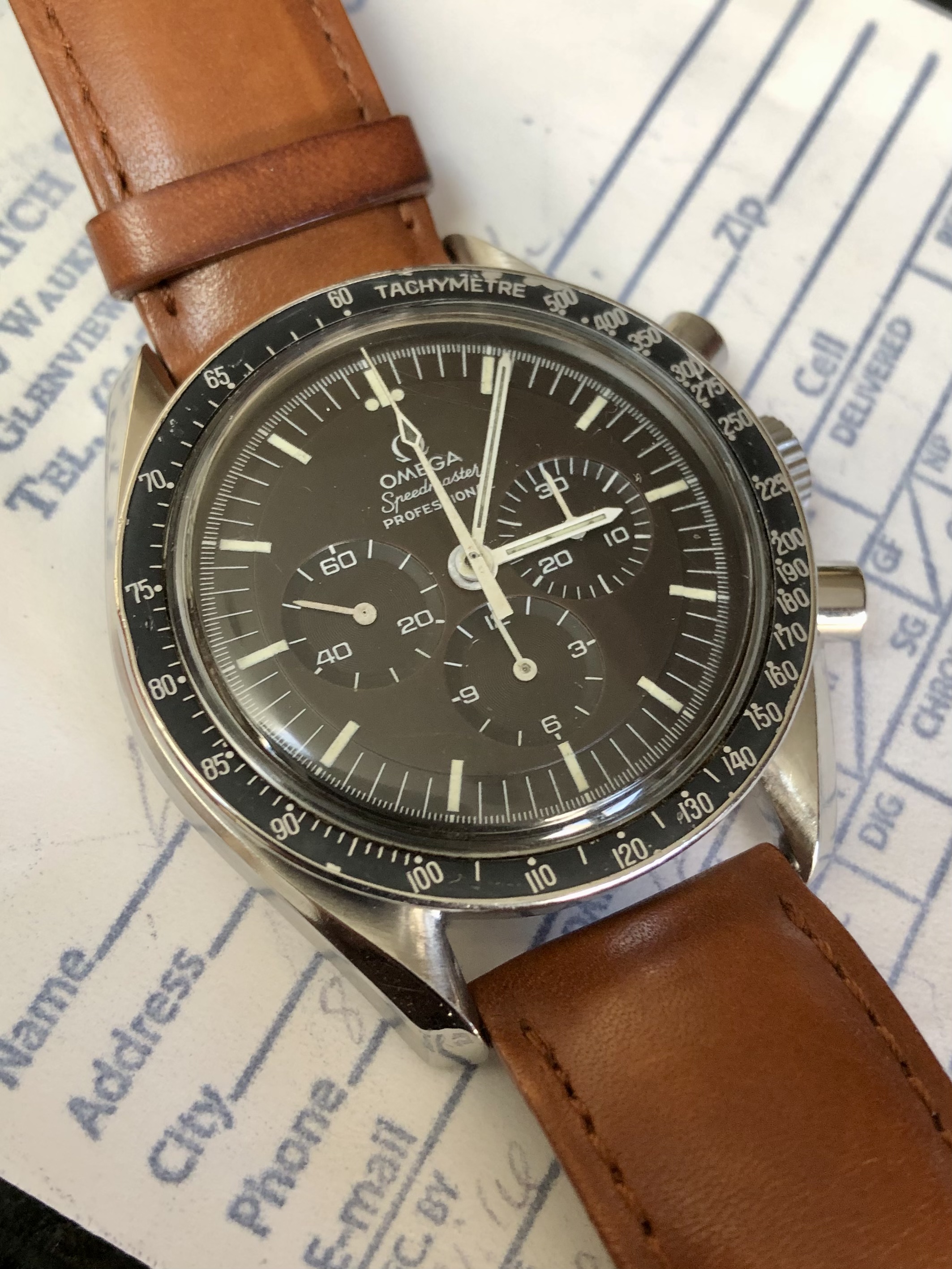 144 22 69 dark chocolate, back from a couple of months at the spa. First service under my ownership. Now to finally add those links I bought years ago to its bracelet.