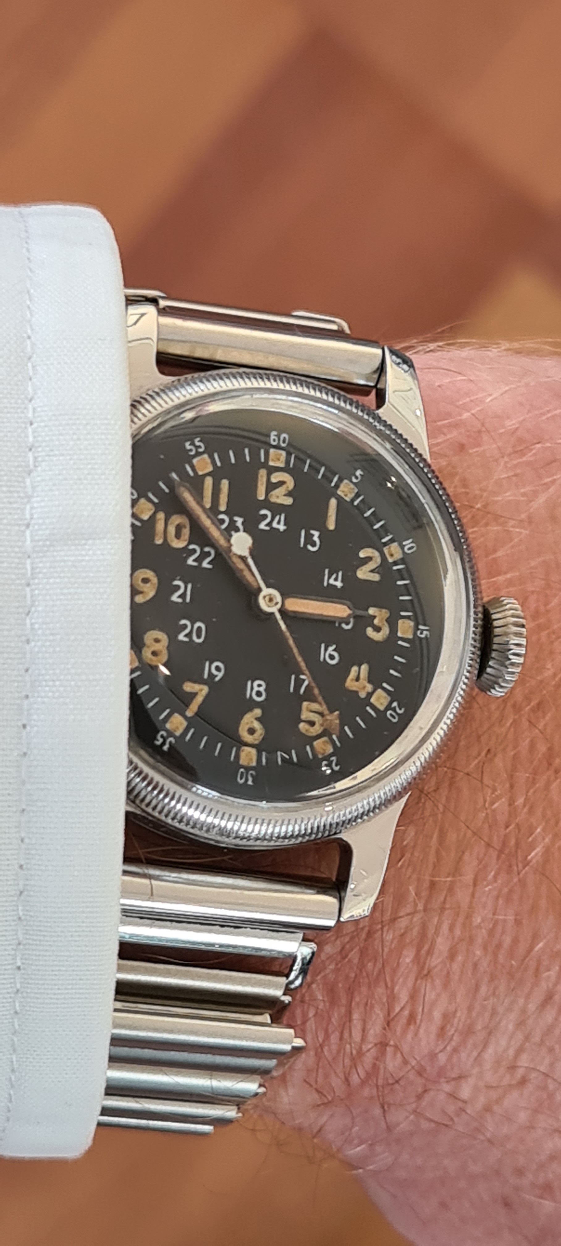 Now, my reason for choosing this watch to wear! It belonged to my late father who was a watchmaker/jeweller, and Bulova dealer. He was born 123 years ago, on Feb 22, 1900. He died in July of 1976. I’m celebrating his birthday in the only way left to me. It isn’t on my wrist in the picture, but it is on my wrist now. And will be for a week or so.