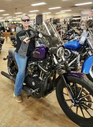 LATE ENTRY: Tomorrow, she’ll be taking delivery of a used 2014 H-D 883 Sportster which fits her perfectly…