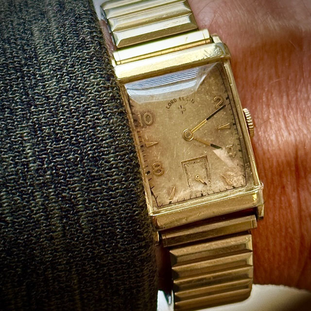 Posts 5,571 Likes 54,213 Jones in LA 路Feb 25, 2023路Not in LA anymore. Grandad's Lord Elgin 馃榾 No Radium or any other luminous material Early 1950s 14k gold-wrapped, 14k electroplate Speidel Twist-O-Flex
