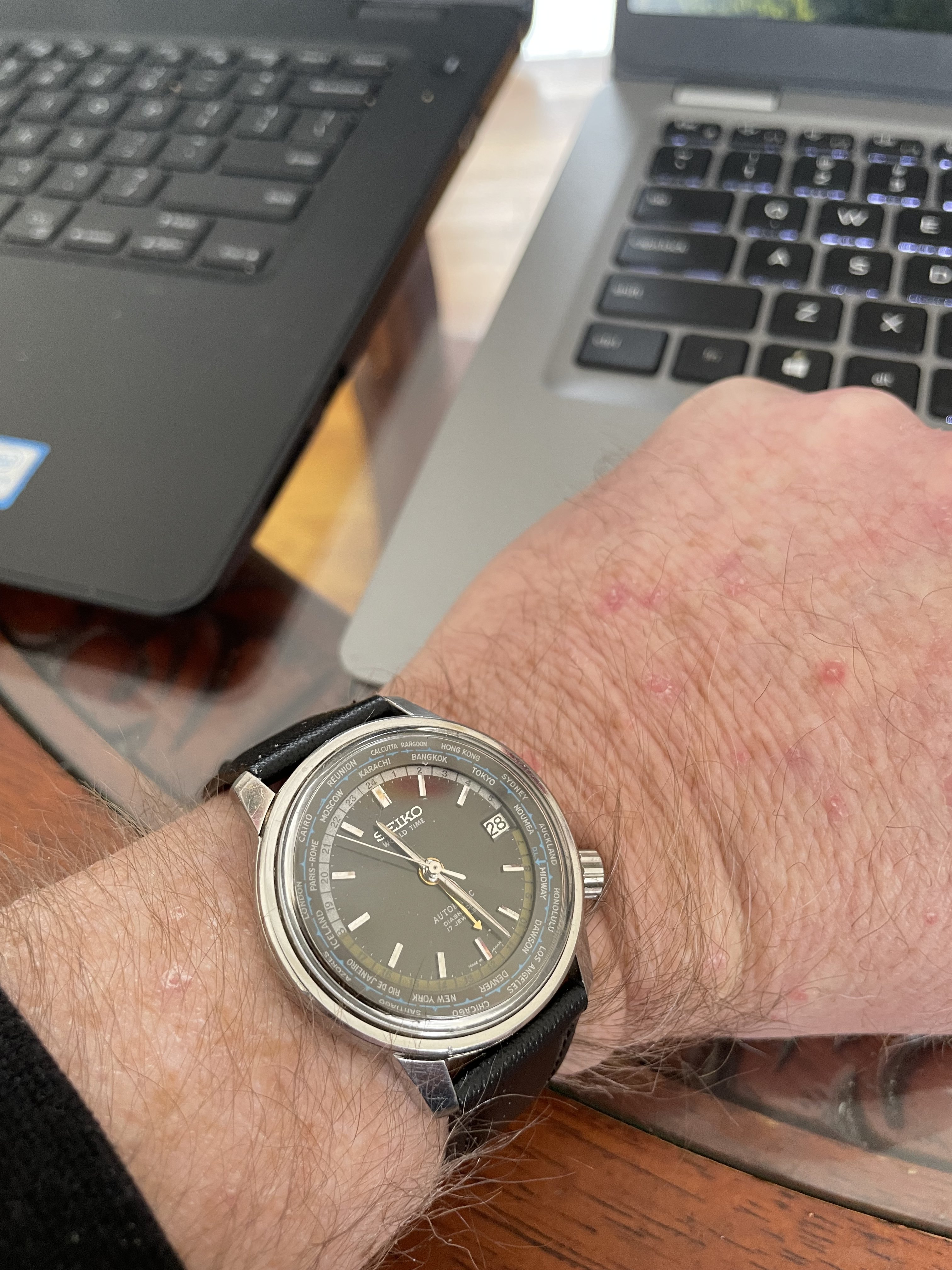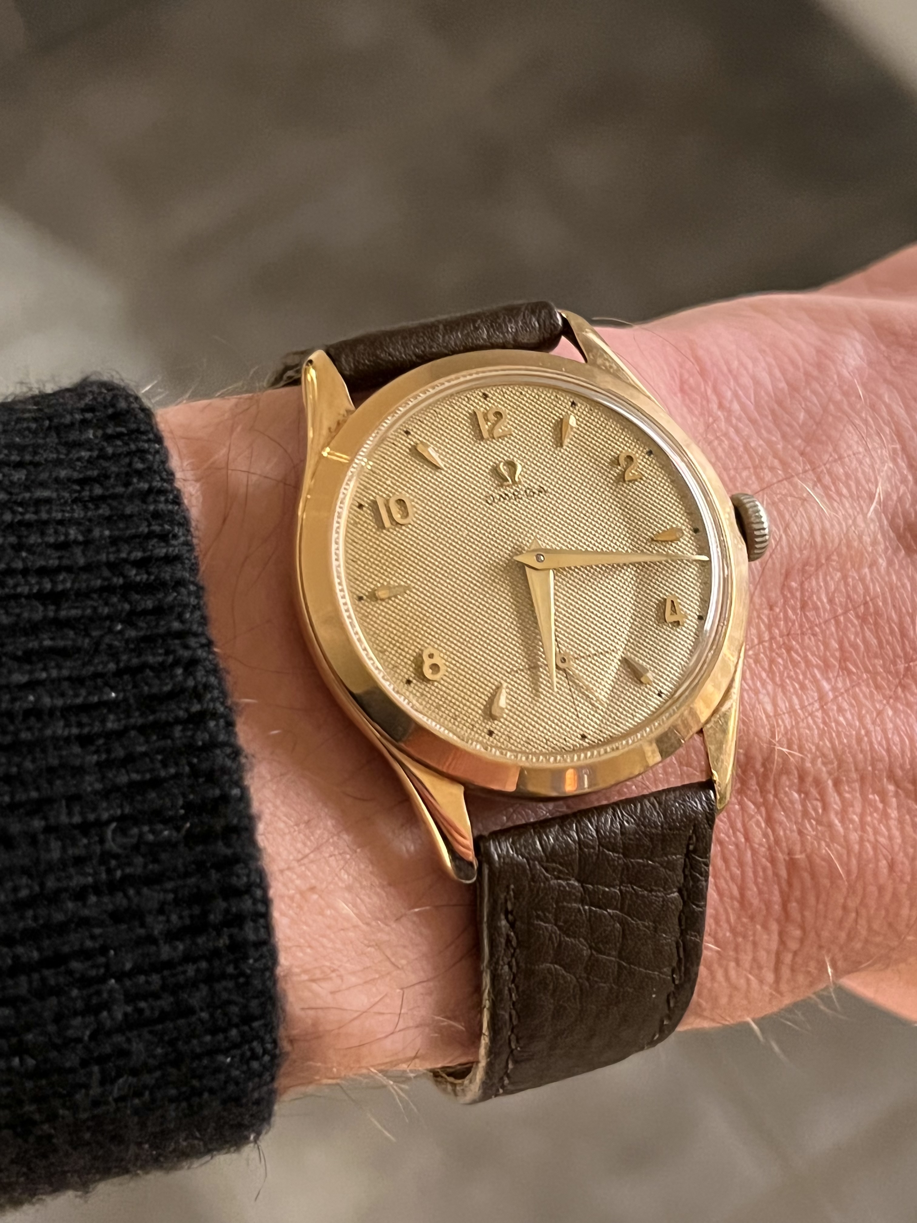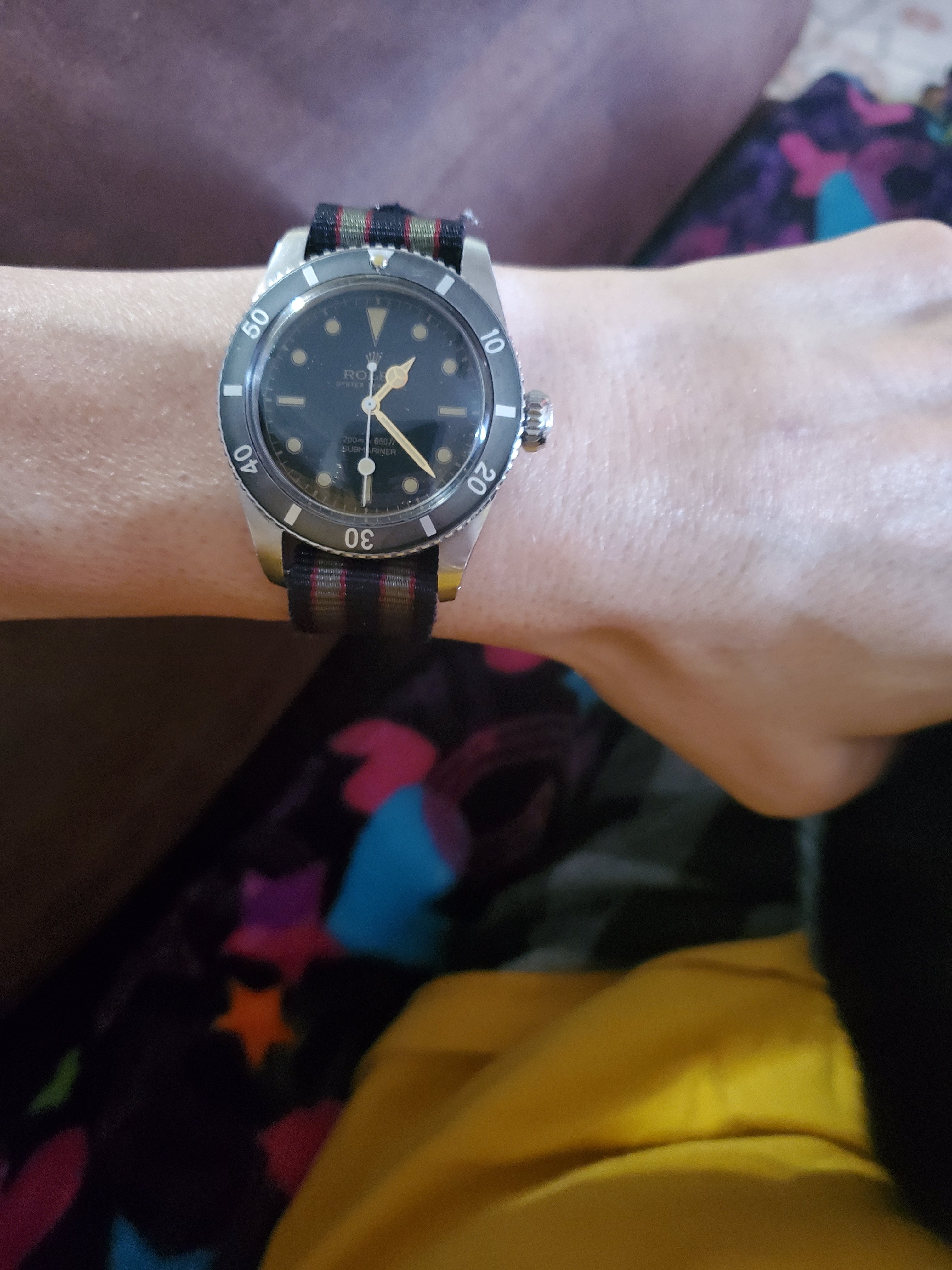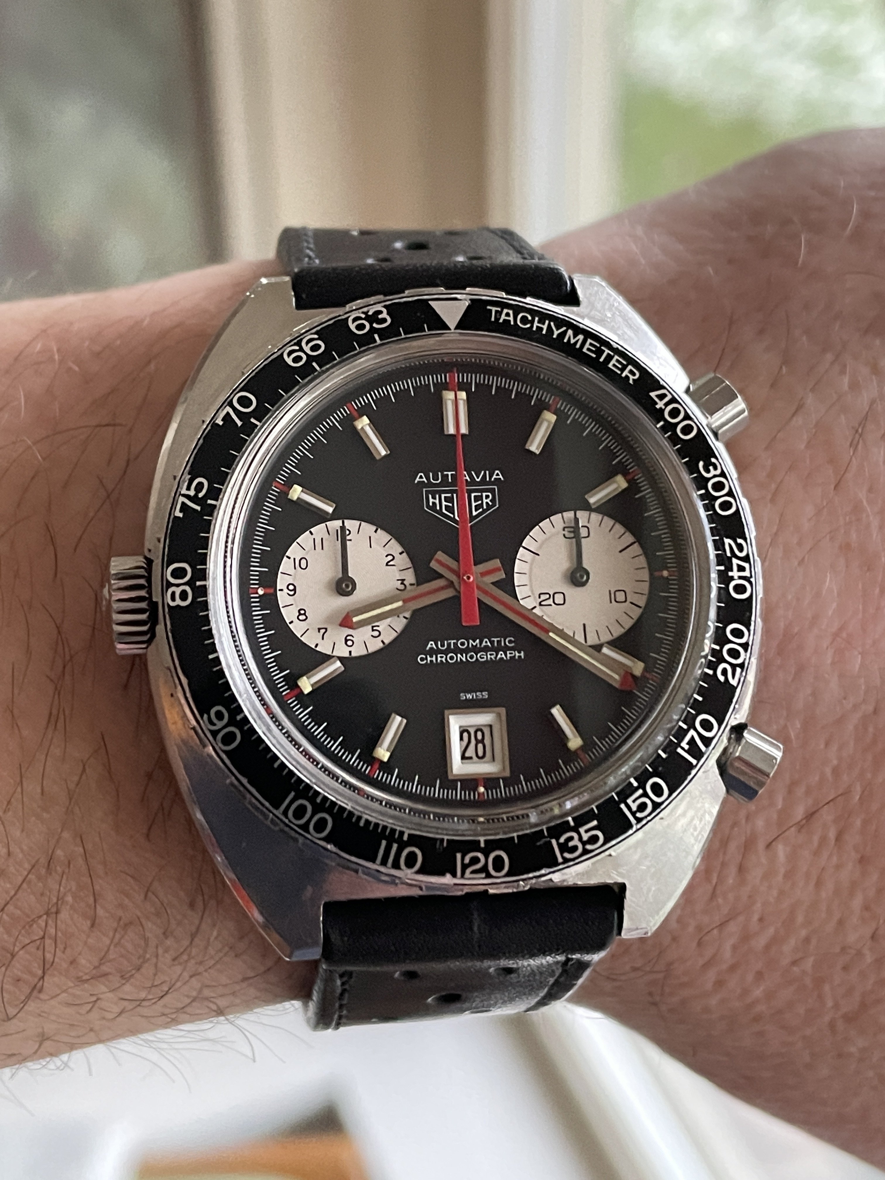 Speedy Tuesday from the pointy end…145.022-71 on a modern Omega NASA strap…and protected [from pointy end watch foes] via a run-of-the-mill sweat band…
