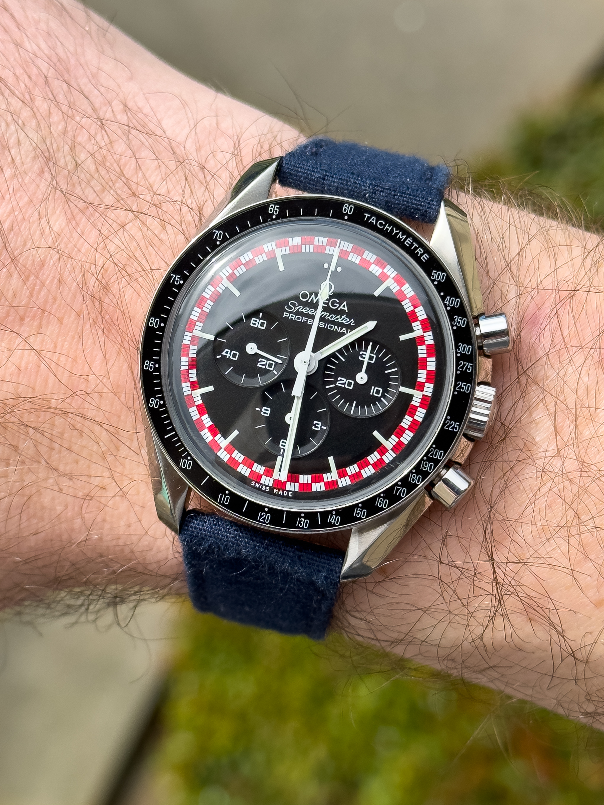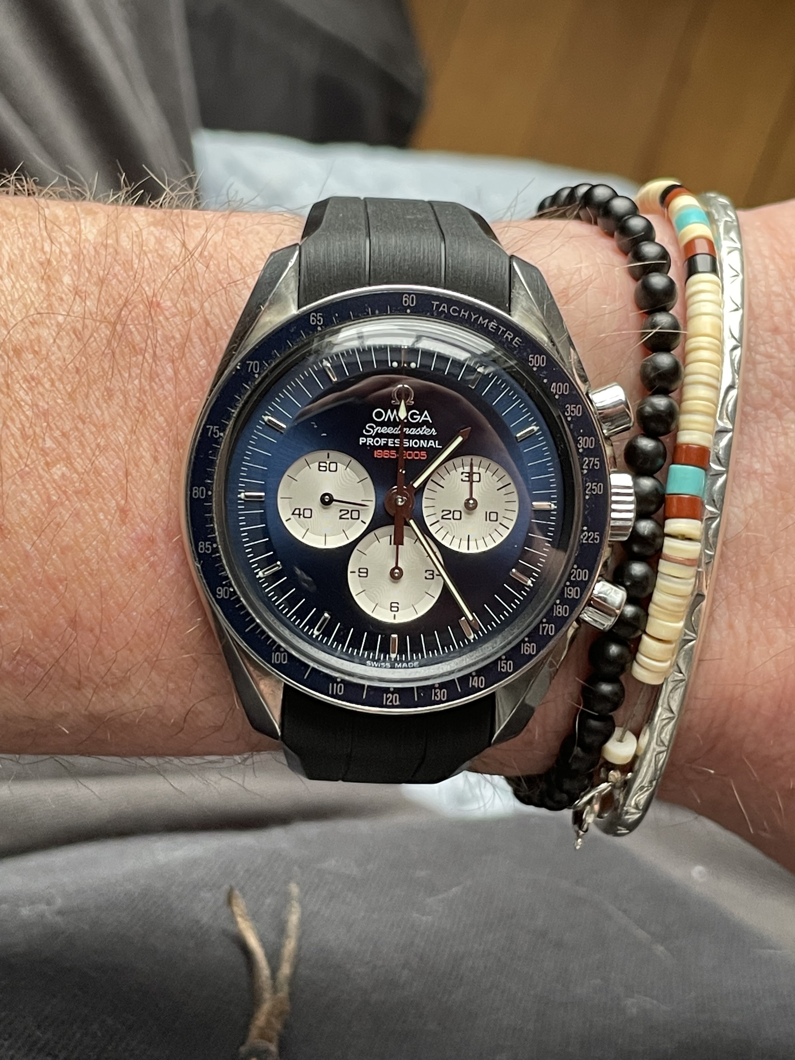 Posts 764 Likes 14,456 MDubs ·Mar 4, 2023 Good afternoon Forum! Playing with watch-strap combos before going out and moving snow. I’m digging the Gemini IV on the Speedy rubber strap quite a bit!