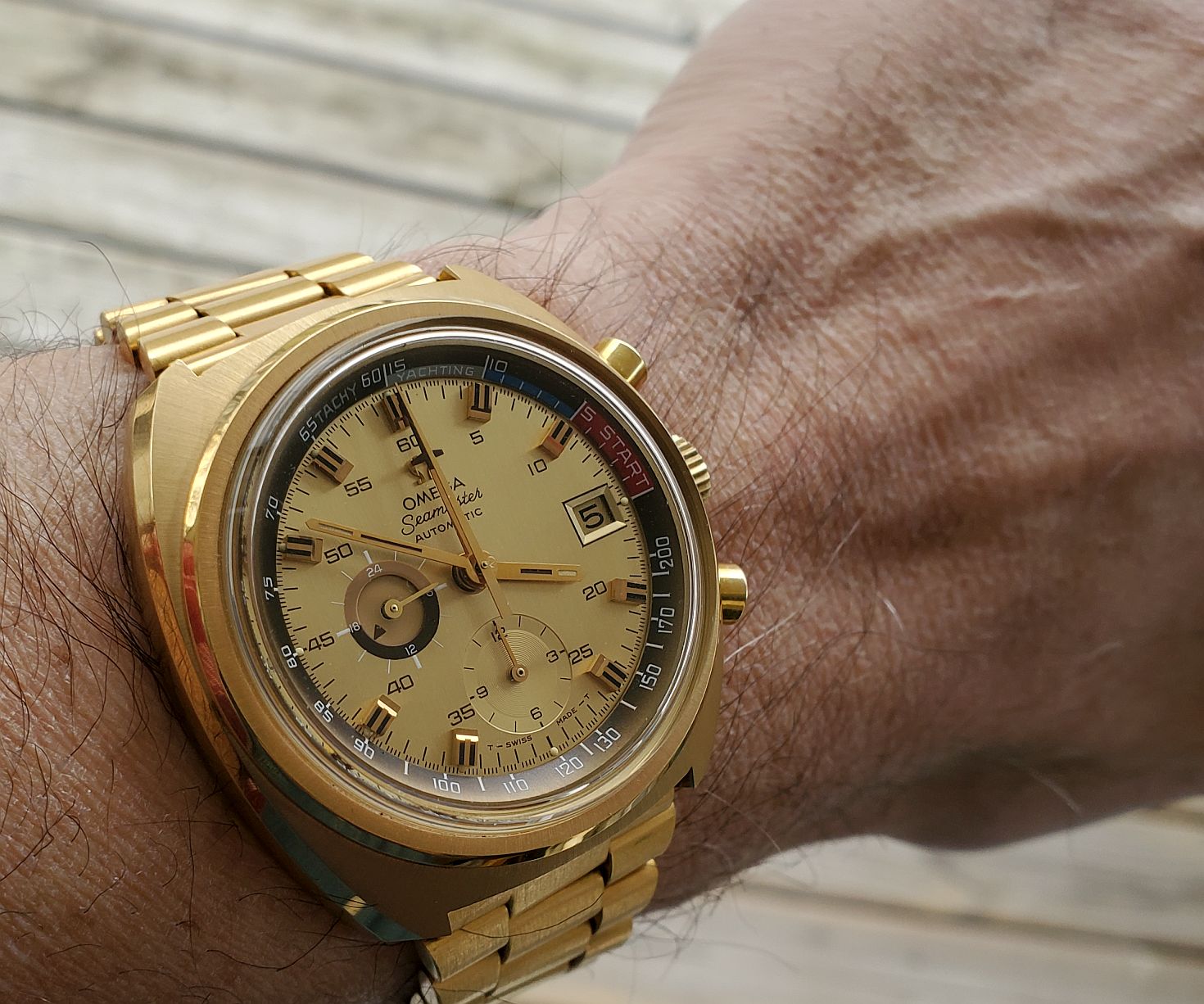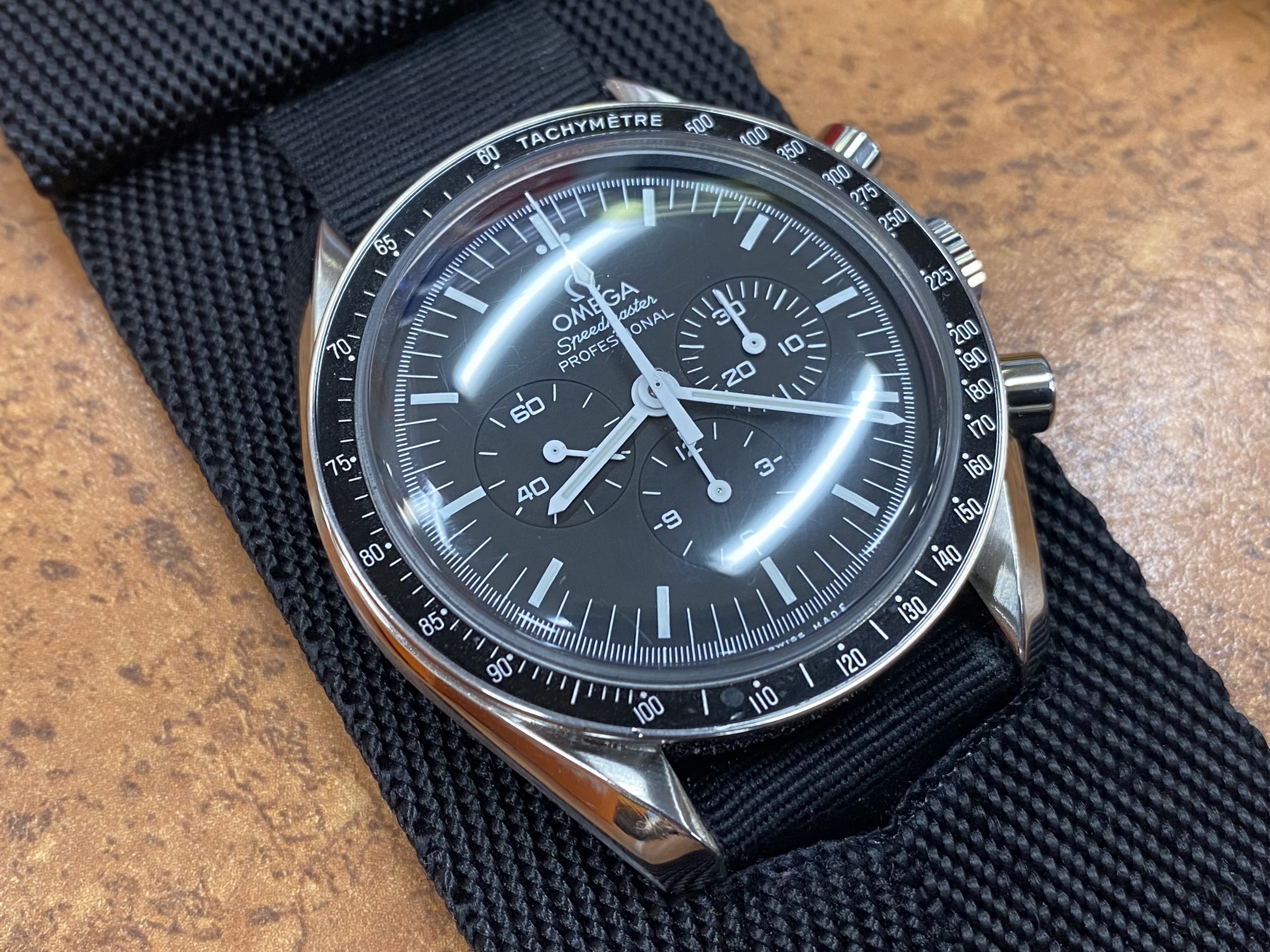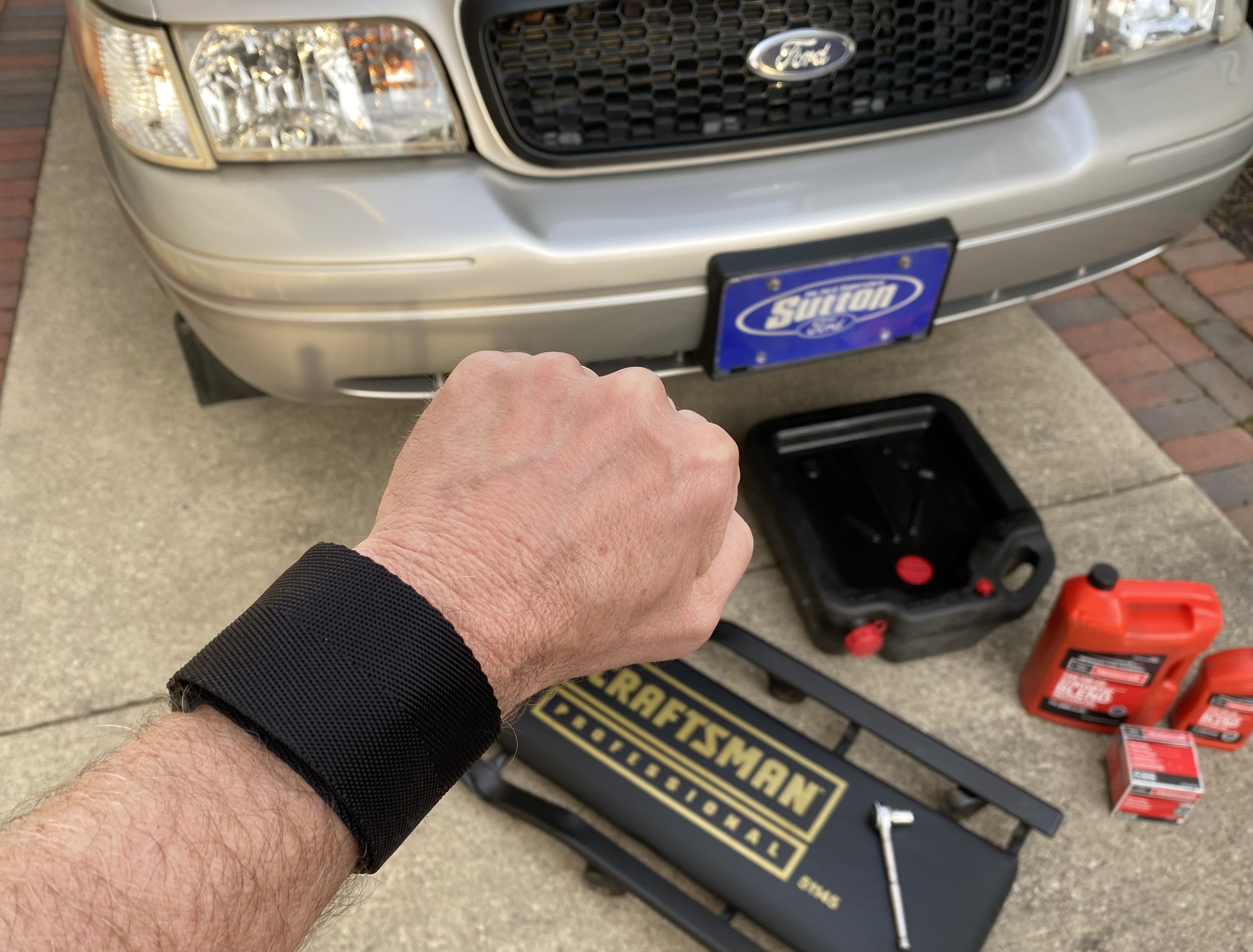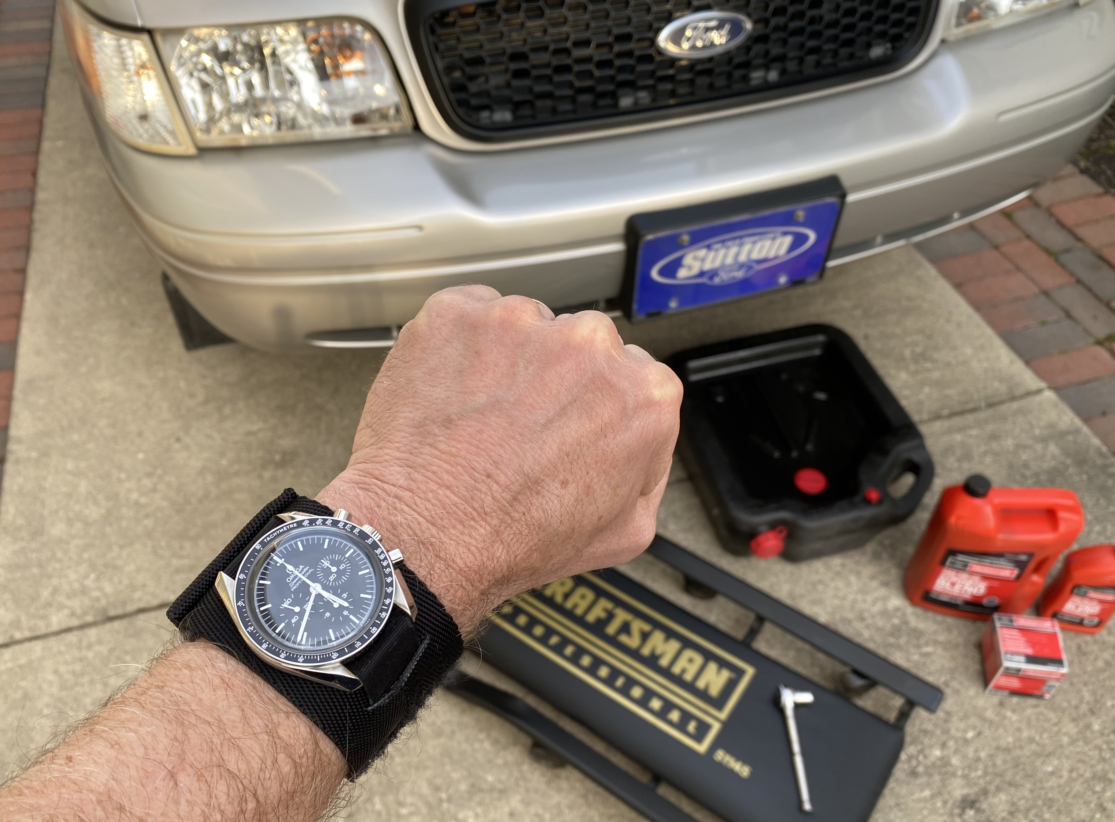 Switcheroo from vintage Speedmasters for church to my modern 1861 on a Rothco protective band for the almighty oil/filter change on my beloved 2007 Ford Police Interceptor…