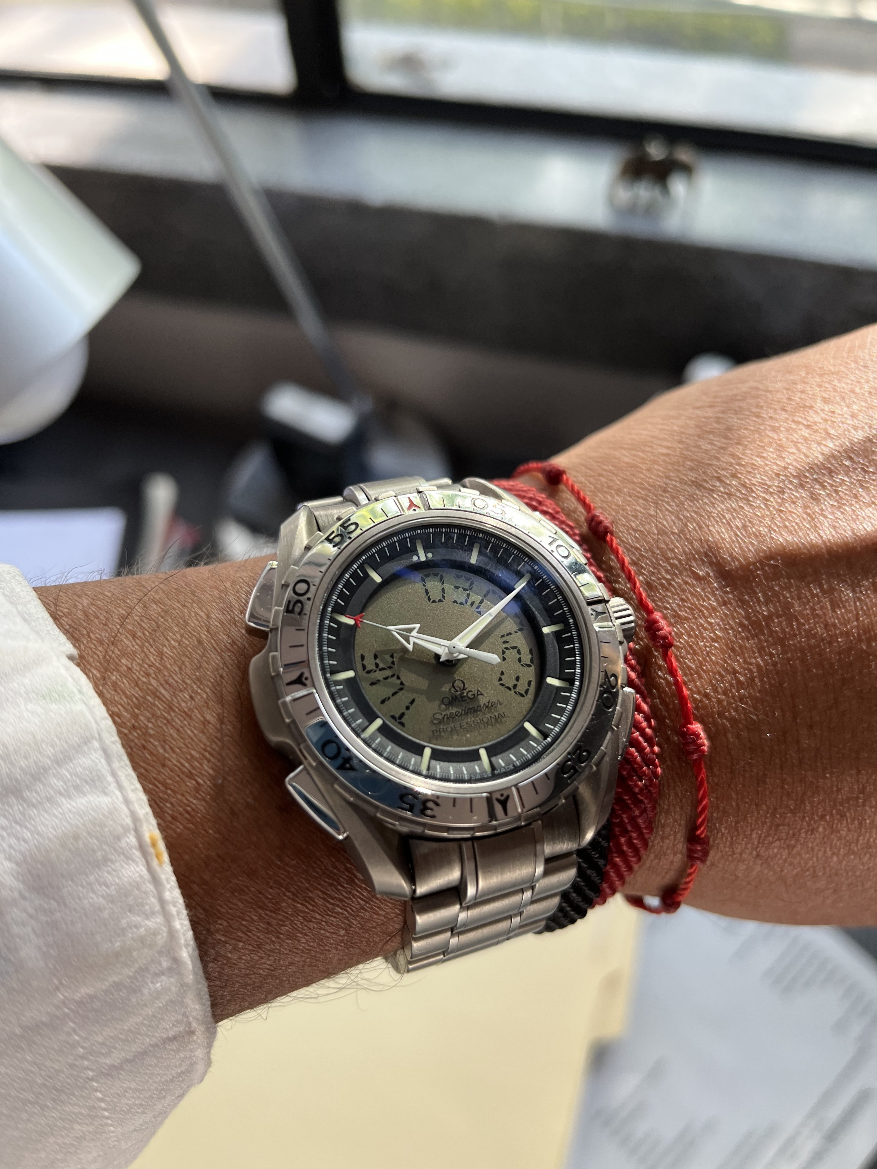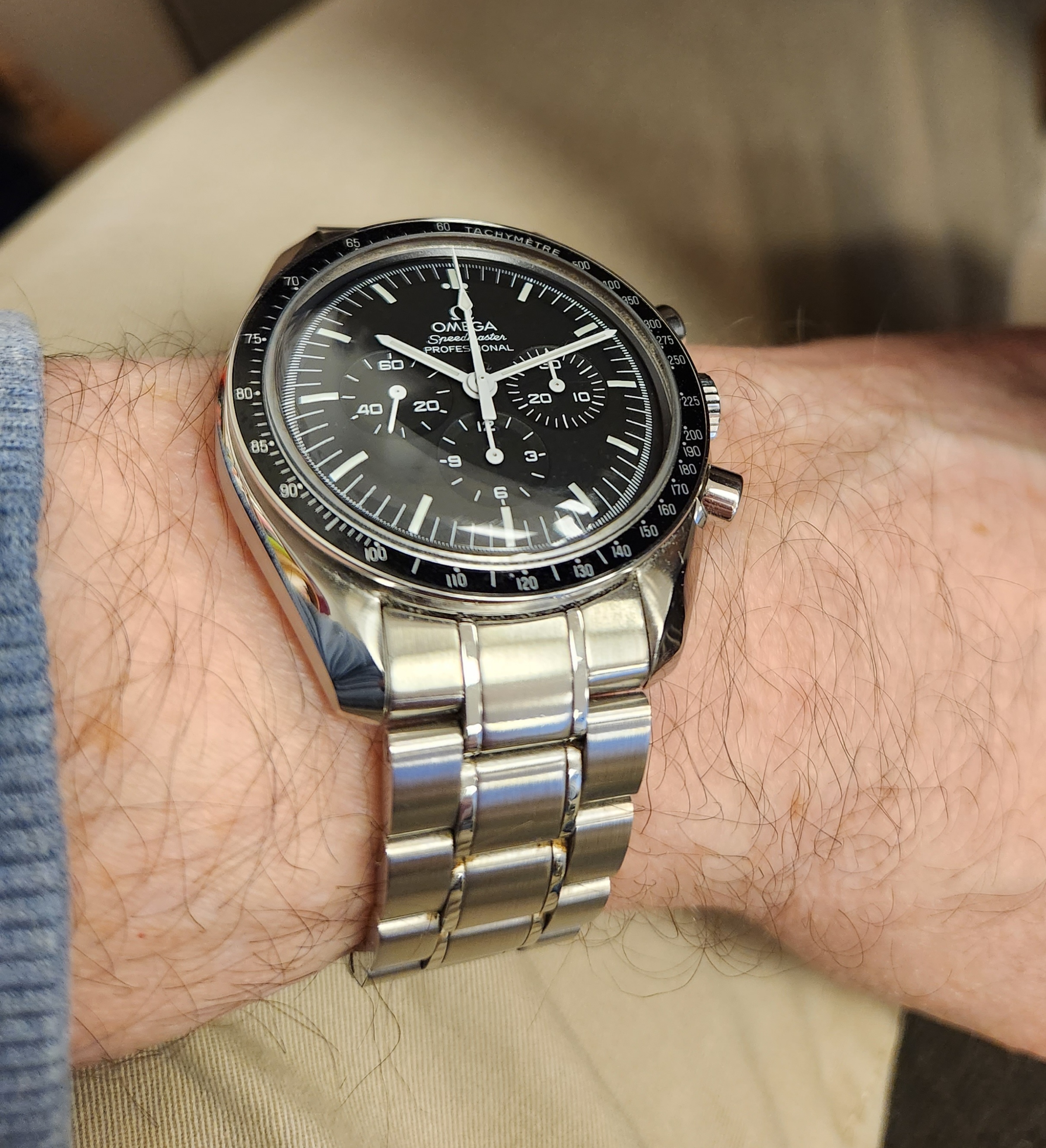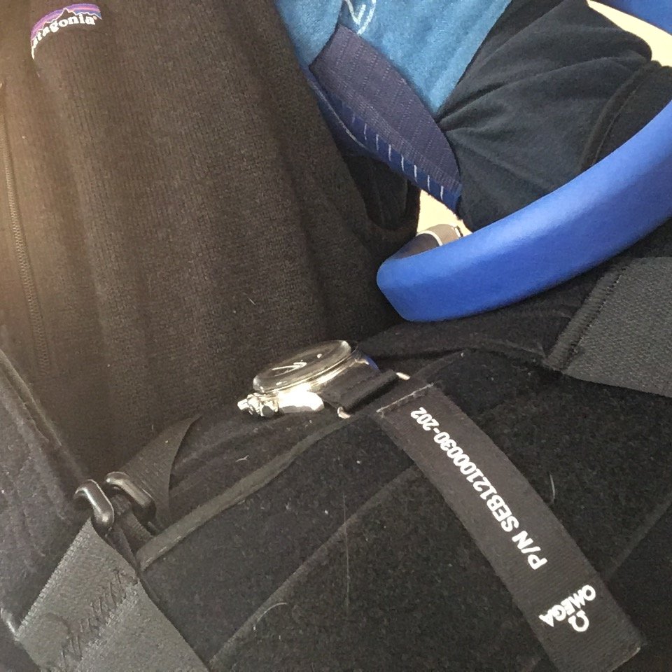 The sharp-eyed among you will notice my Speedmaster 1861 is neatly Velcroed to the top of the wedge-shaped pad and sling. I finally found a real use for that long astronaut strap that came in the big box!