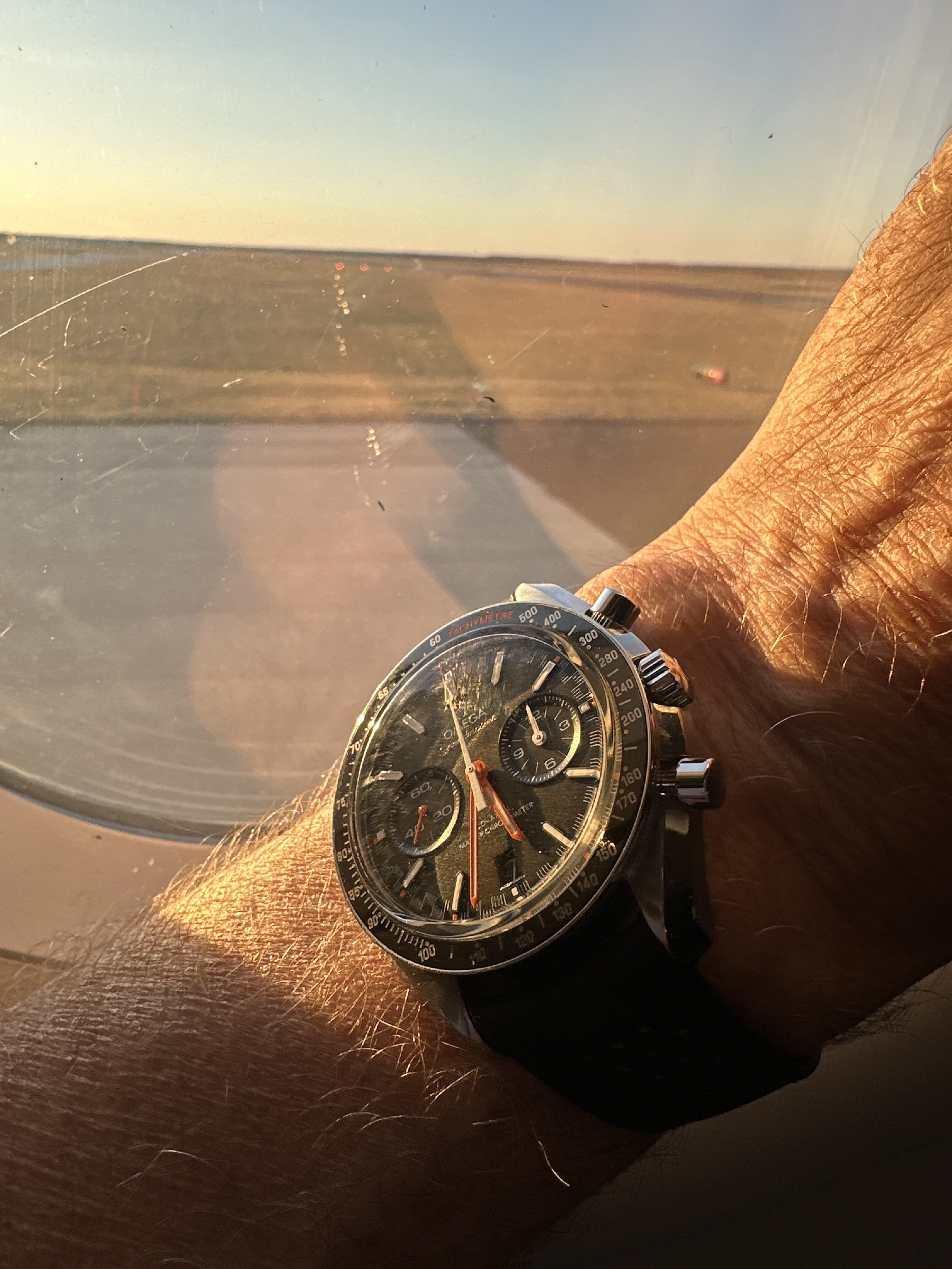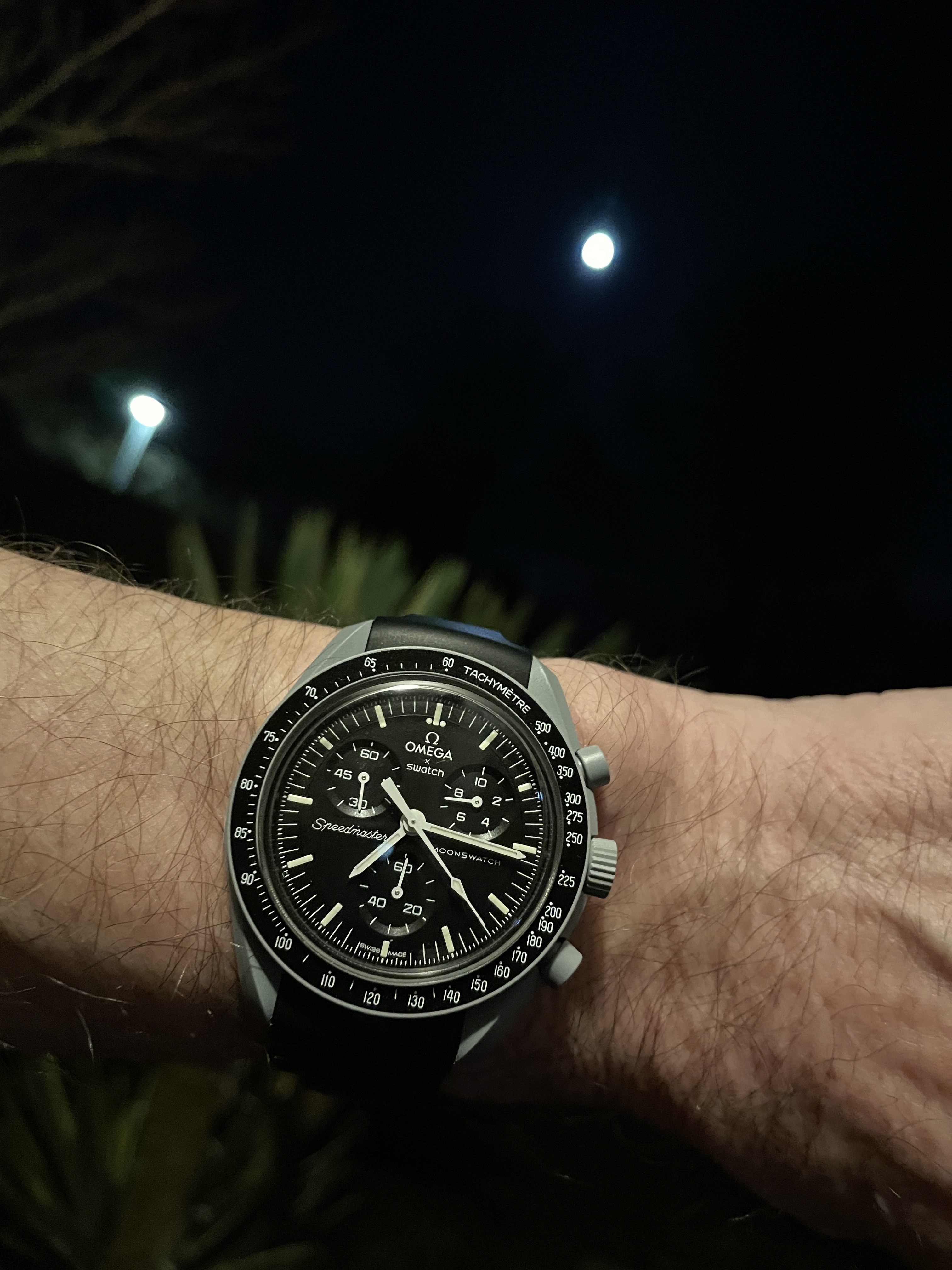 The sharp-eyed among you will notice my Speedmaster 1861 is neatly Velcroed to the top of the wedge-shaped pad and sling. I finally found a real use for that long astronaut strap that came in the big box!