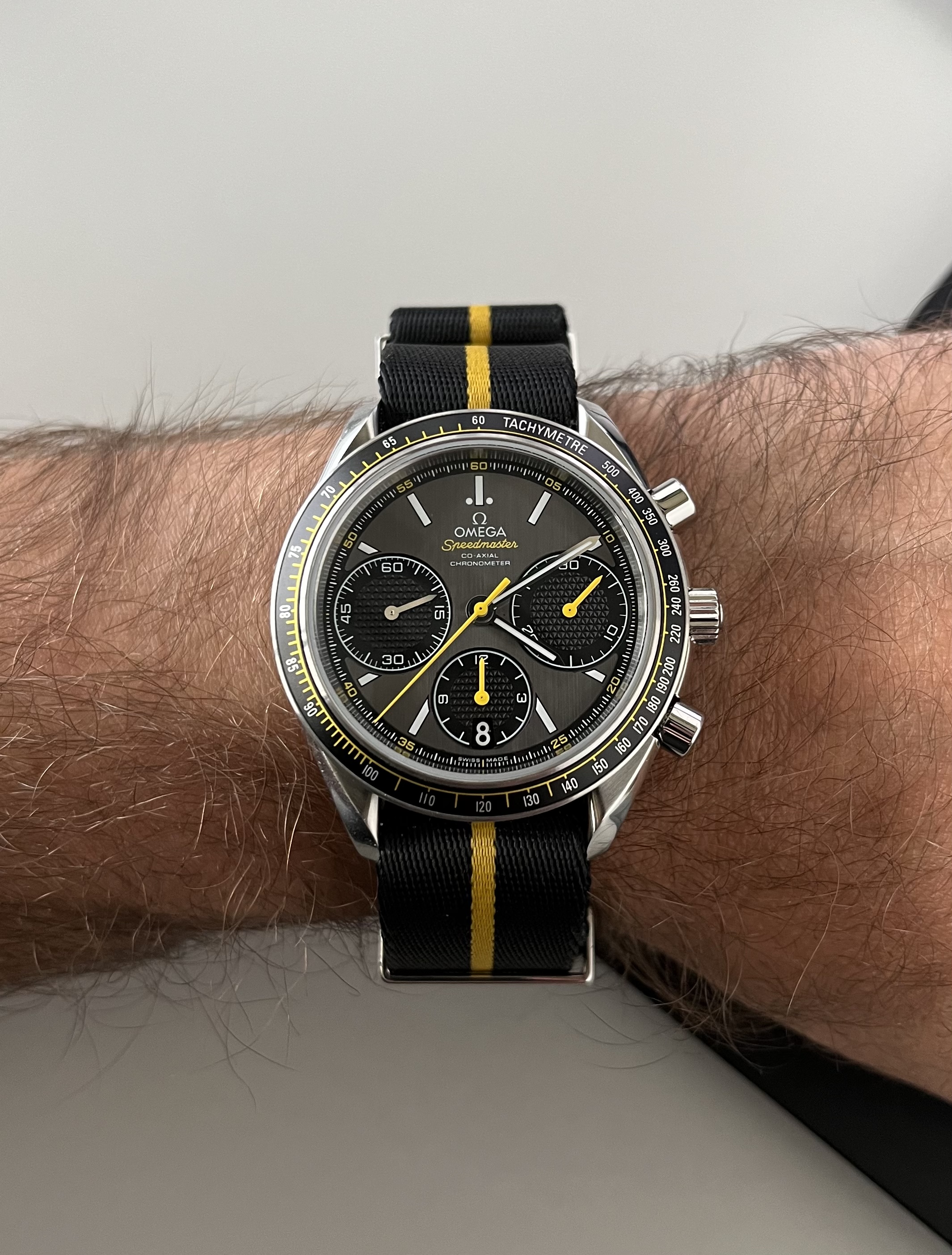 The sharp-eyed among you will notice my Speedmaster 1861 is neatly Velcroed to the top of the wedge-shaped pad and sling. I finally found a real use for that long astronaut strap that came in the big box!