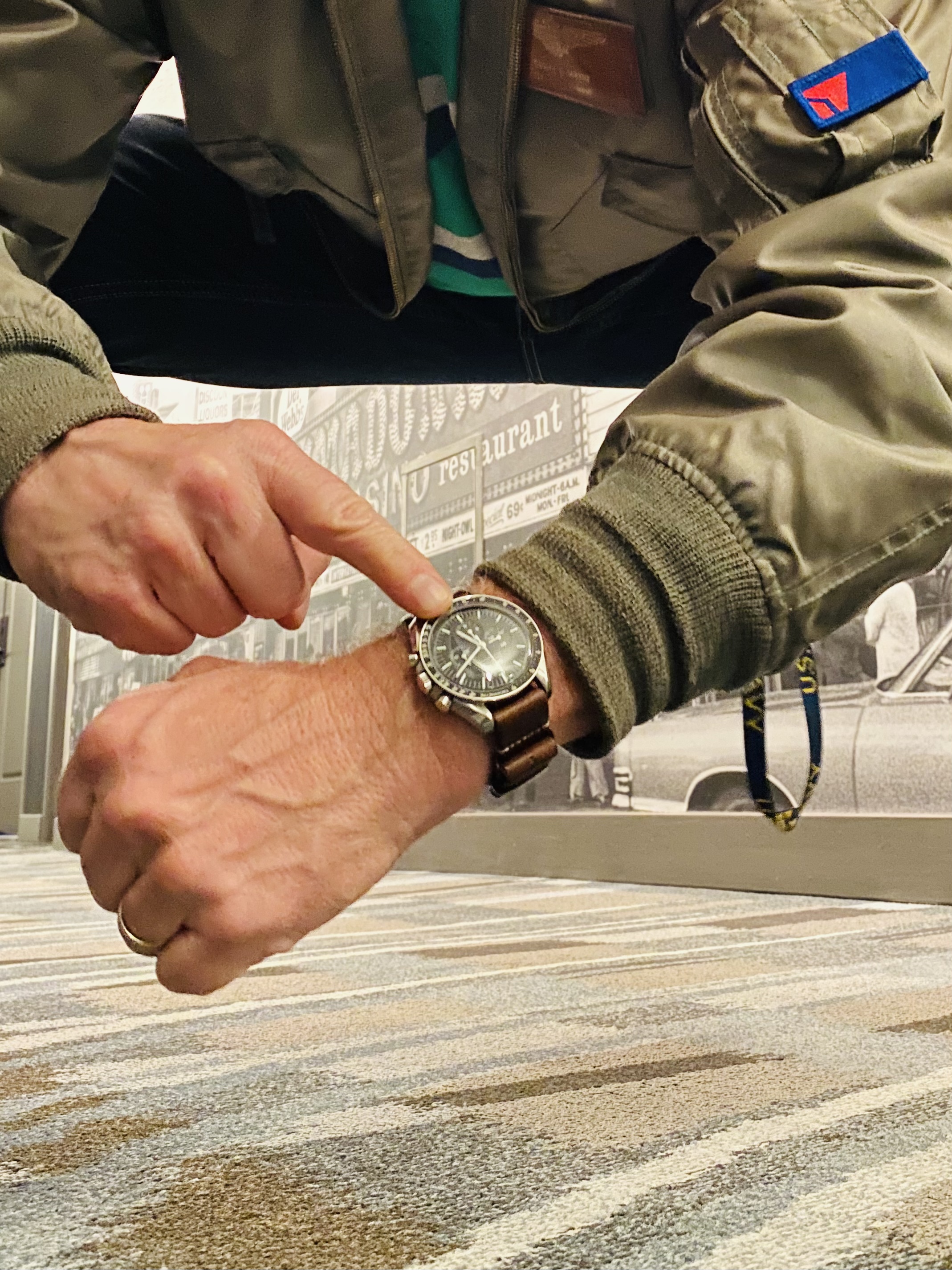Posts 6,581 Likes 78,213 Mad Dog ·Mar 10, 2023 Hot dog! First time ever laying over in Reno, NV! Check out the wall at the layover motel! Craptastic pic of my 3861 on an Omega barenia leather NATO…