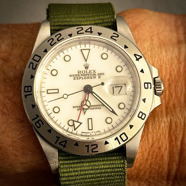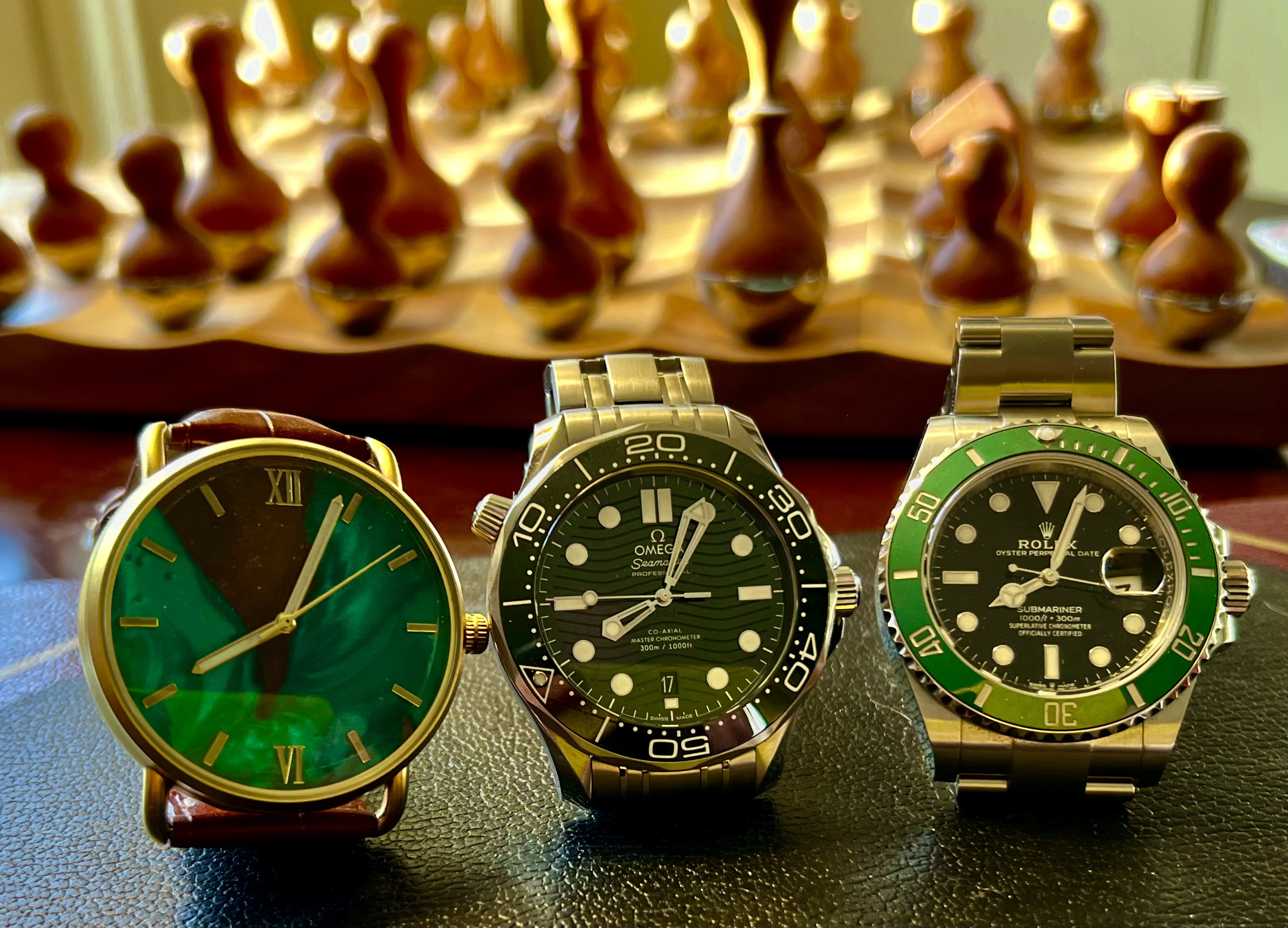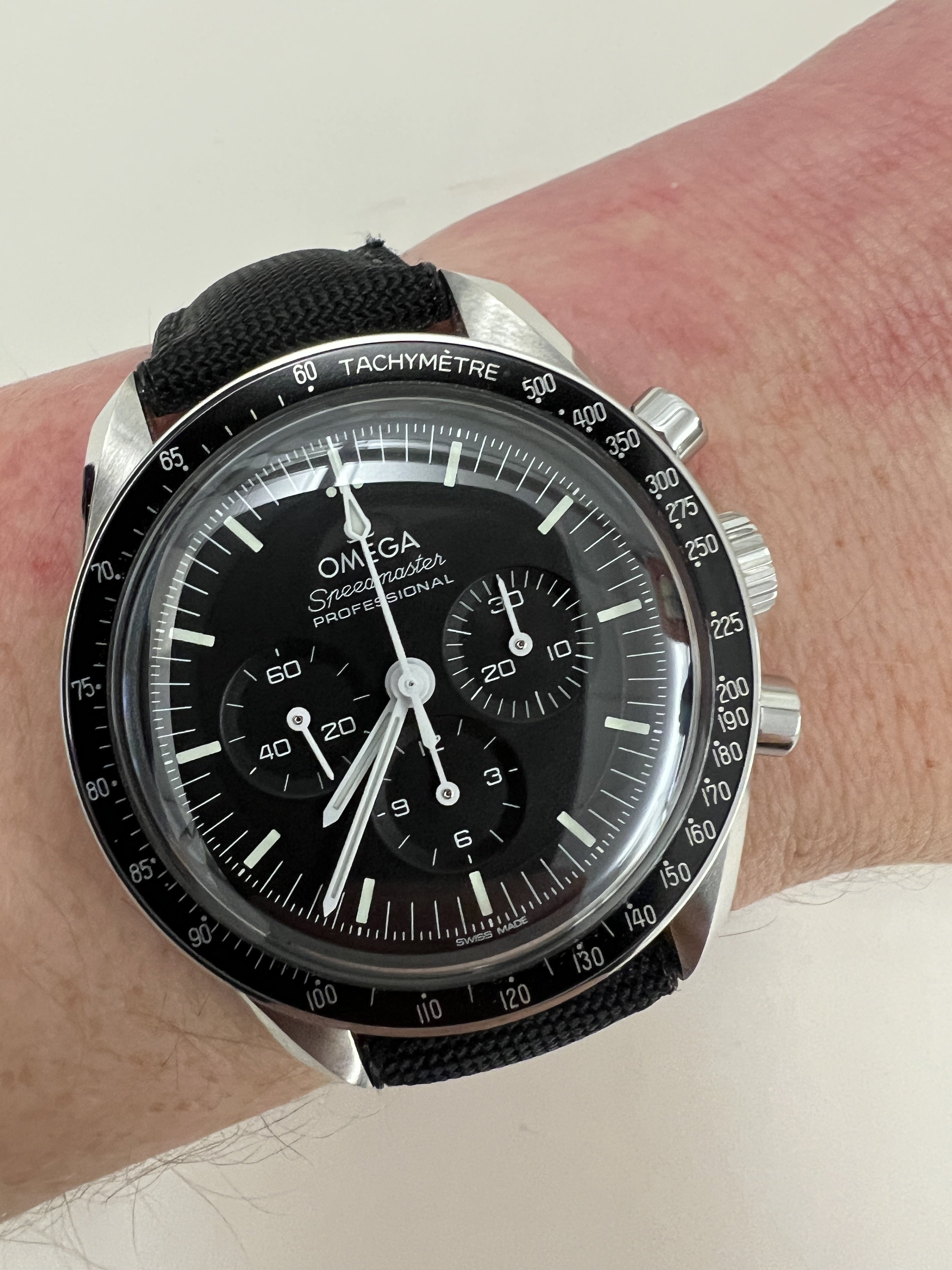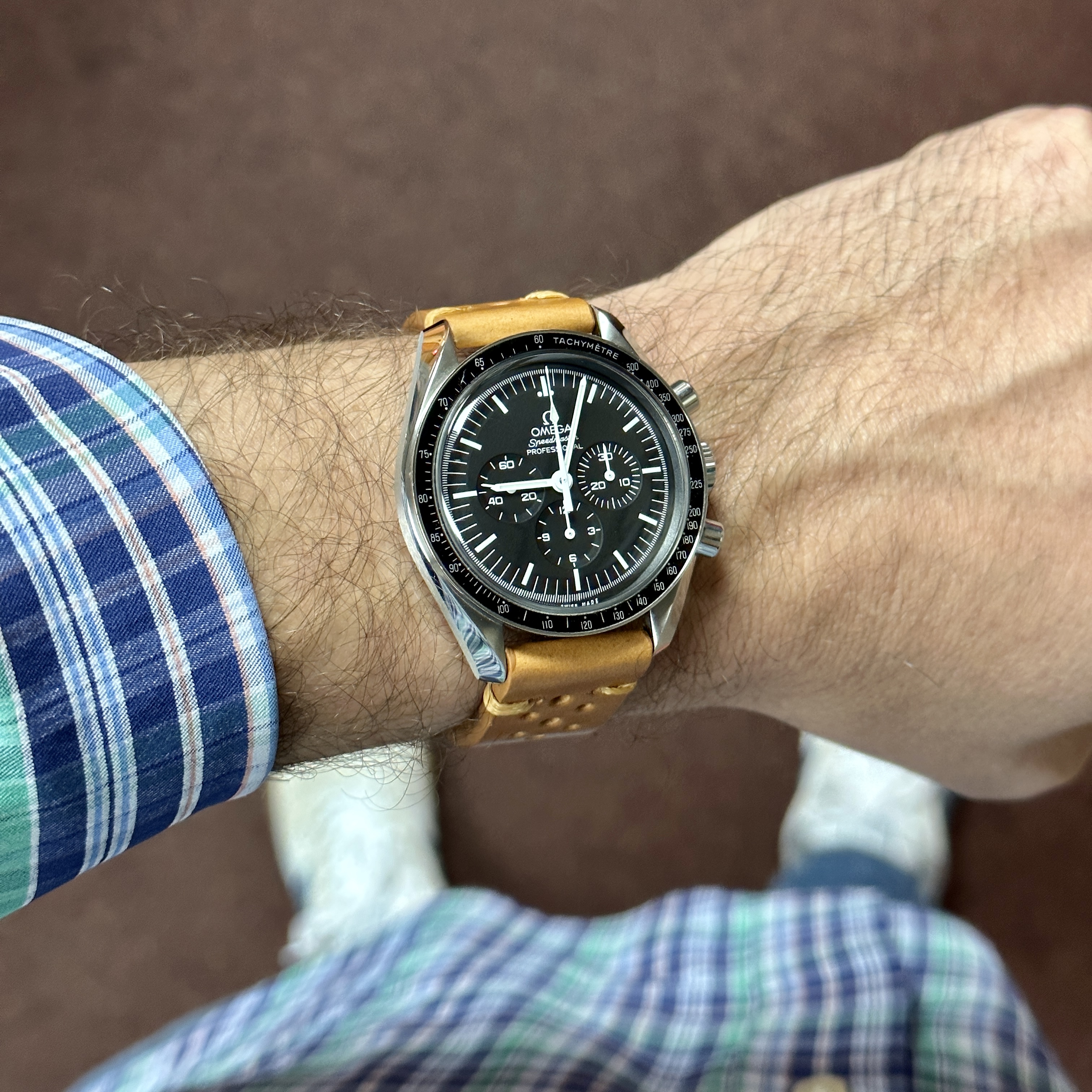 Posts 4,681 Likes 23,681 vbrad26 ·Mar 17, 2023 An increasingly rare strap change for the Speedy along with the greenest shirt I own.