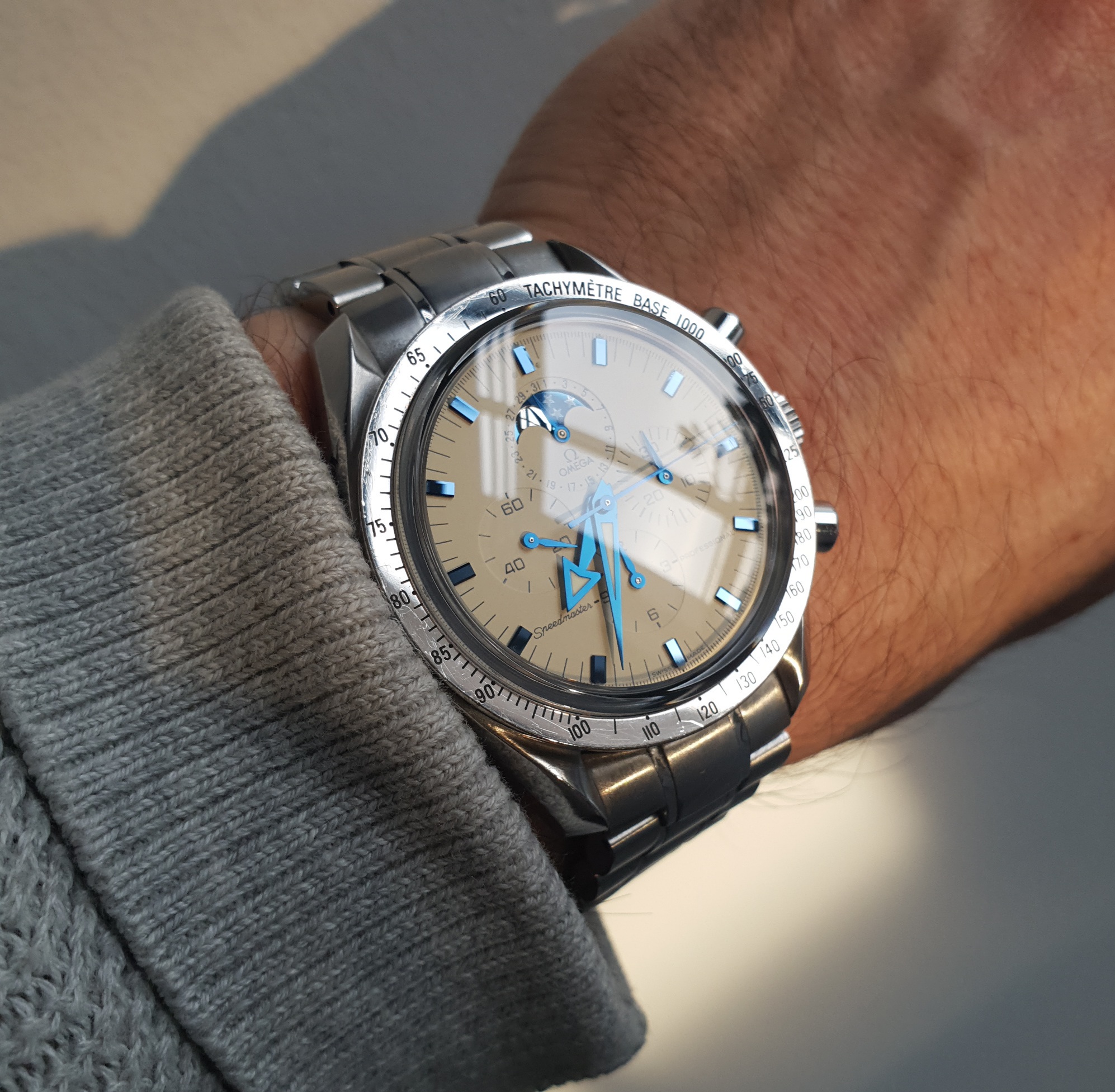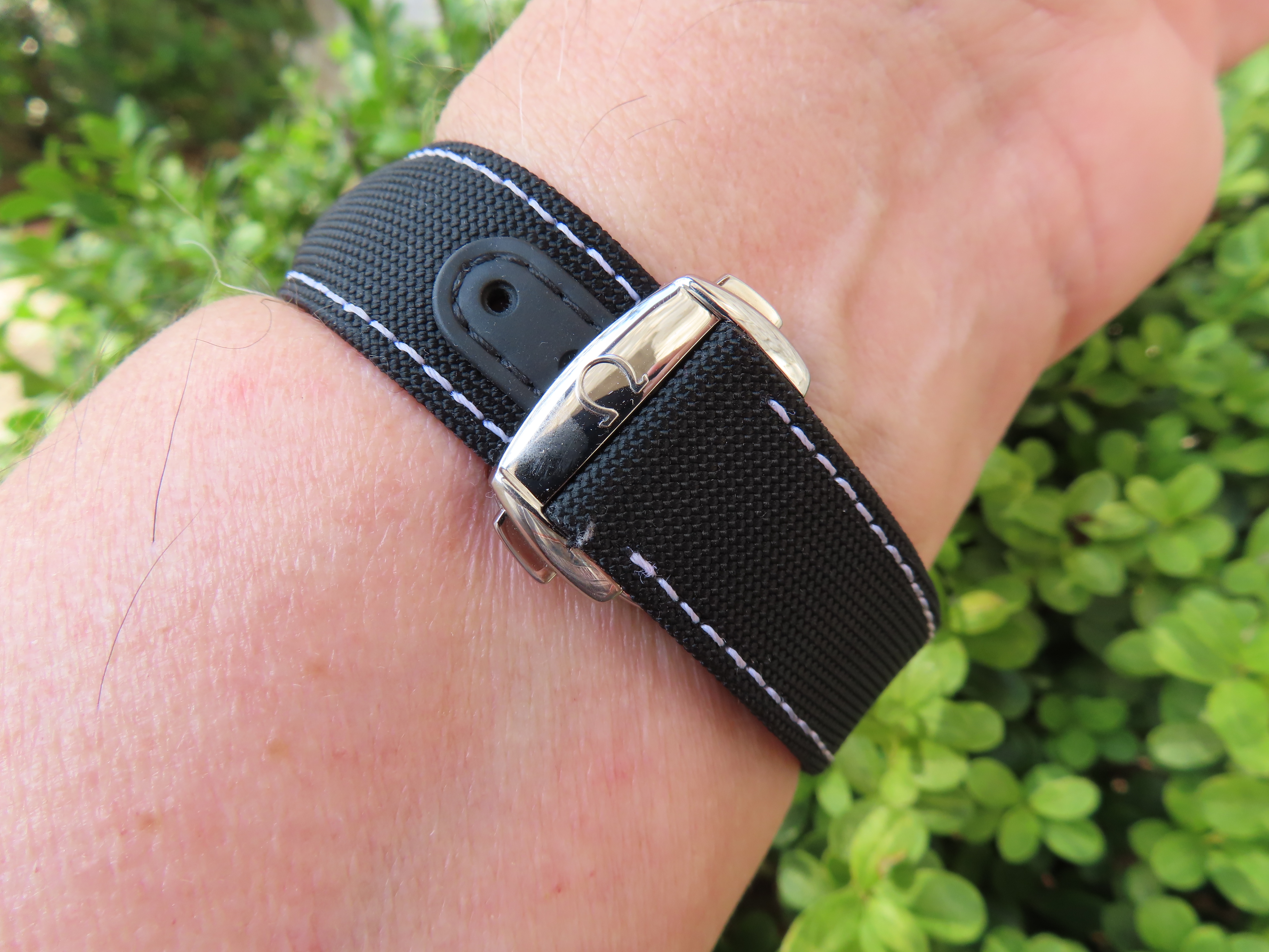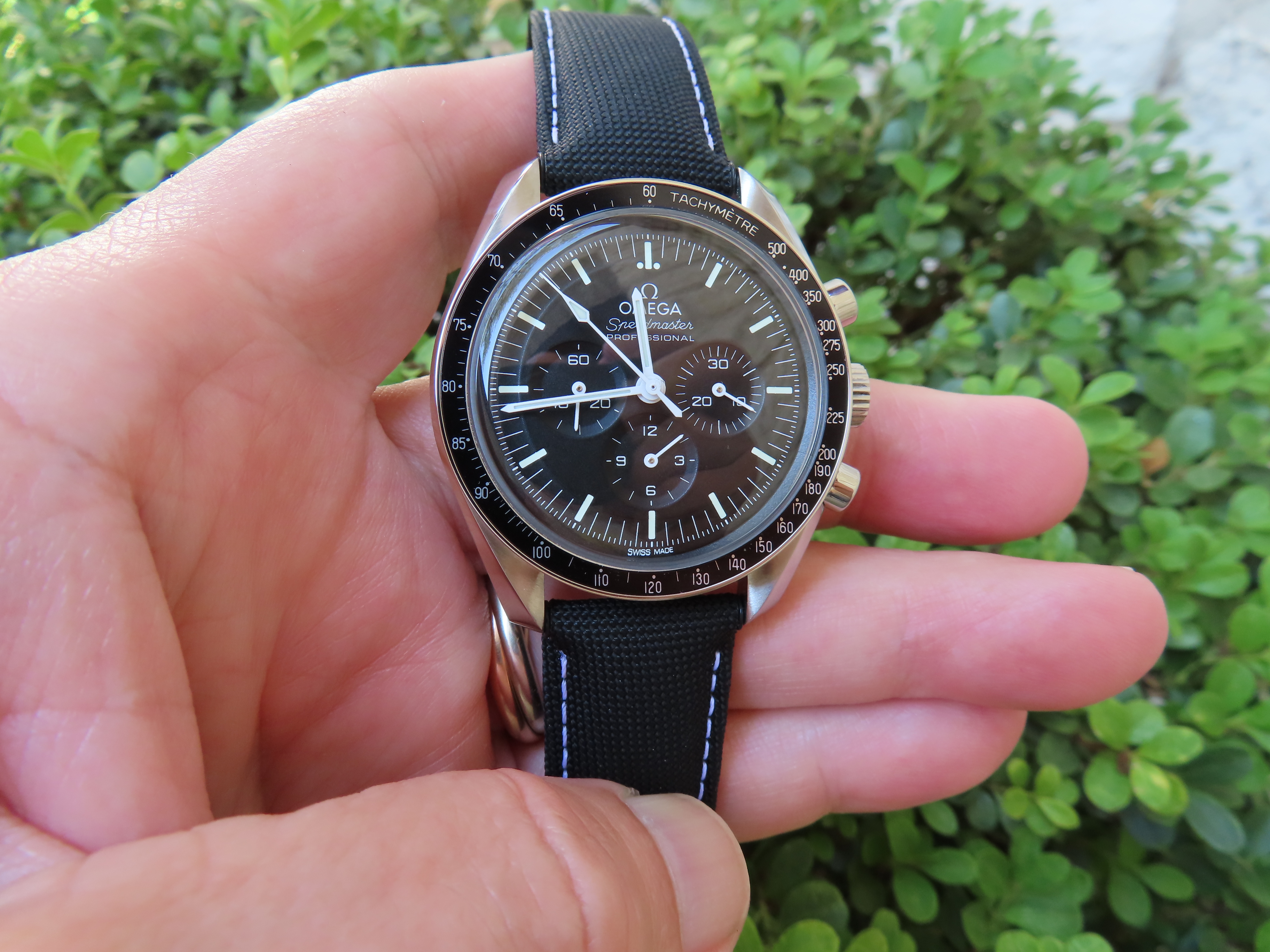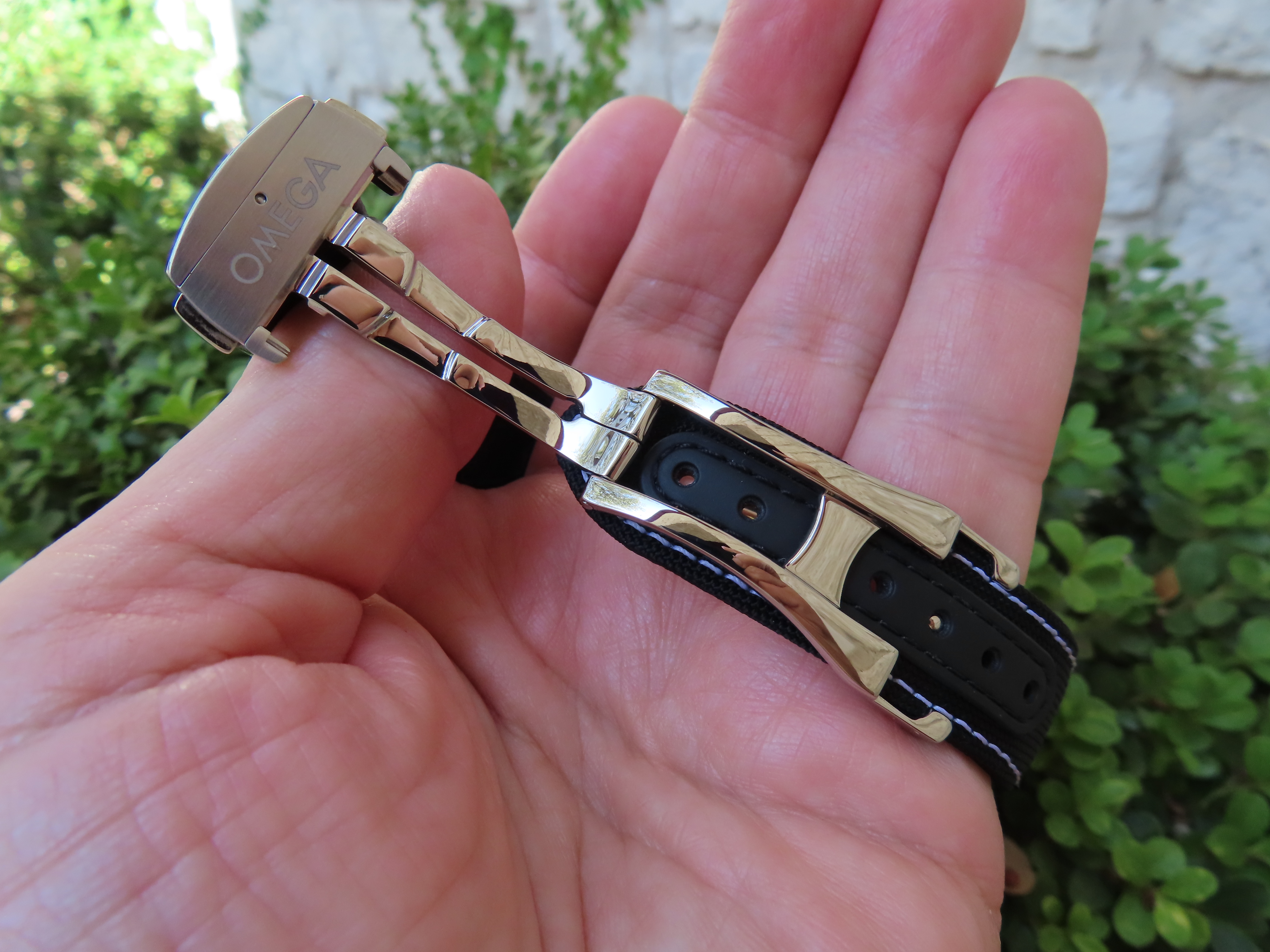 Wearing something current right now, this 3861 Hesalite started with the steel bracelet but I am using that bracelet on another watch so am using the Cordura strap from the 45th anniversary Snoopy with white stitching (CWZ003436) with an Omega DP clasp (9452.18.13) which is an early all polished design (18mm). I like the white stitching vs the standard all black Cordura strap, it breaks up the all black look.