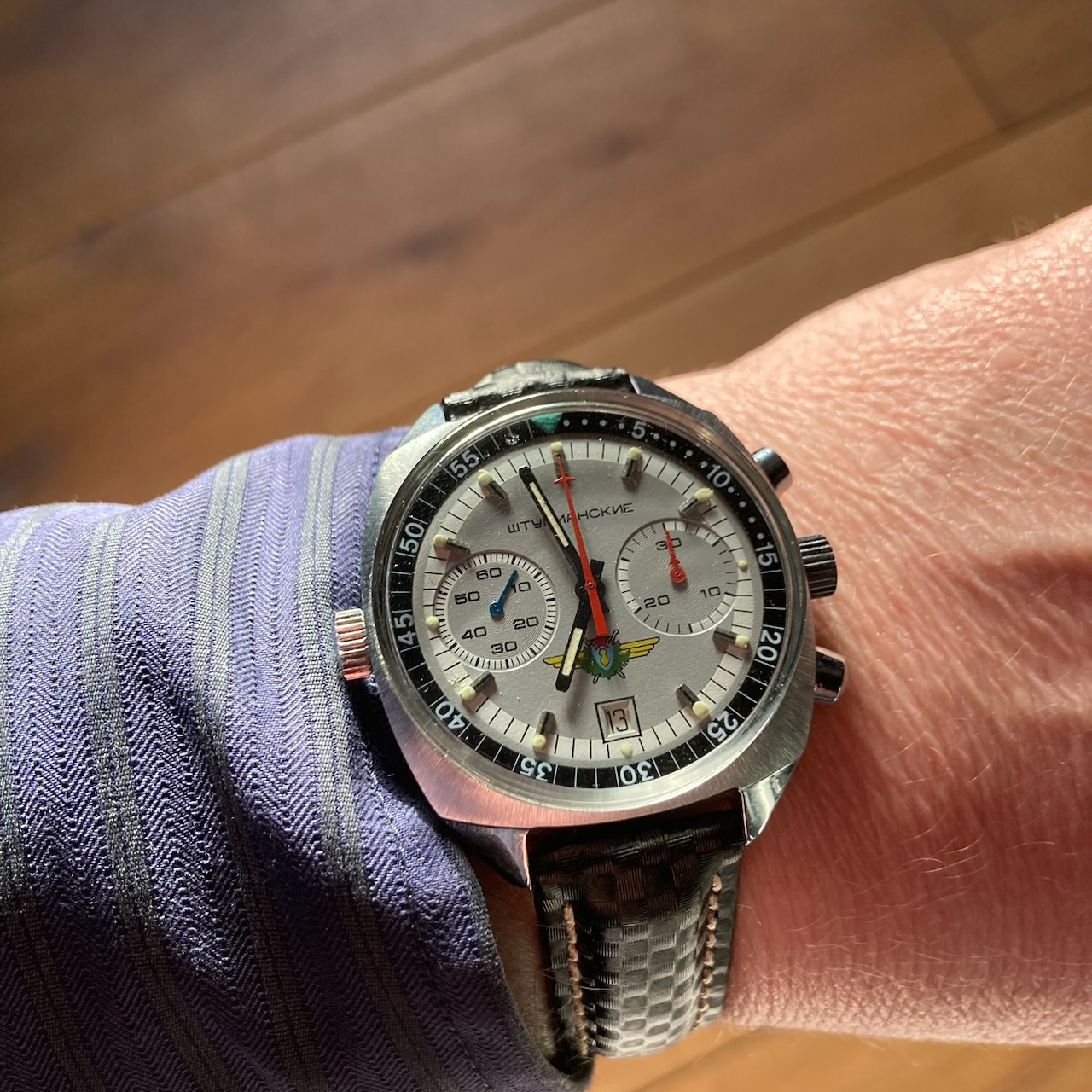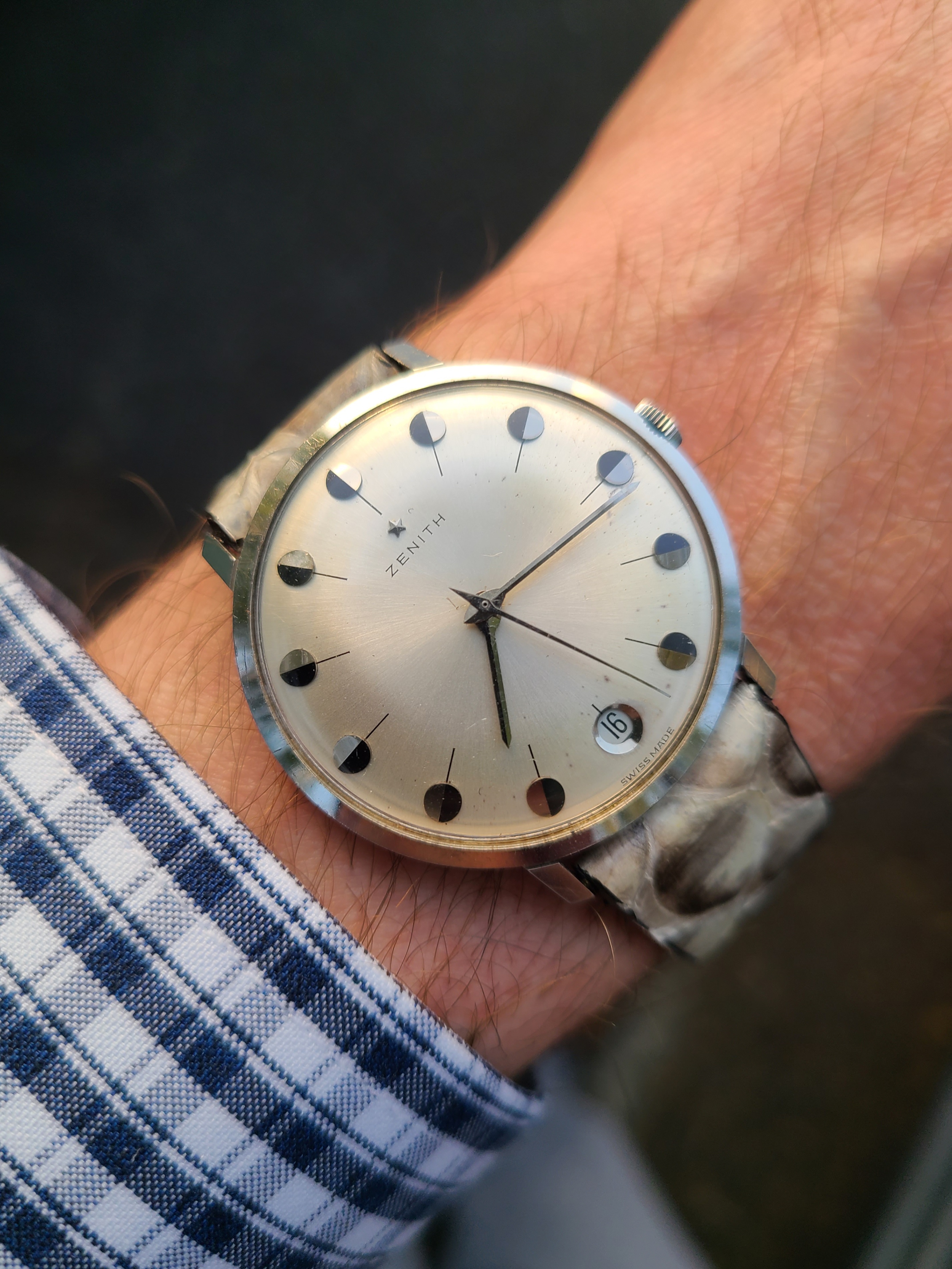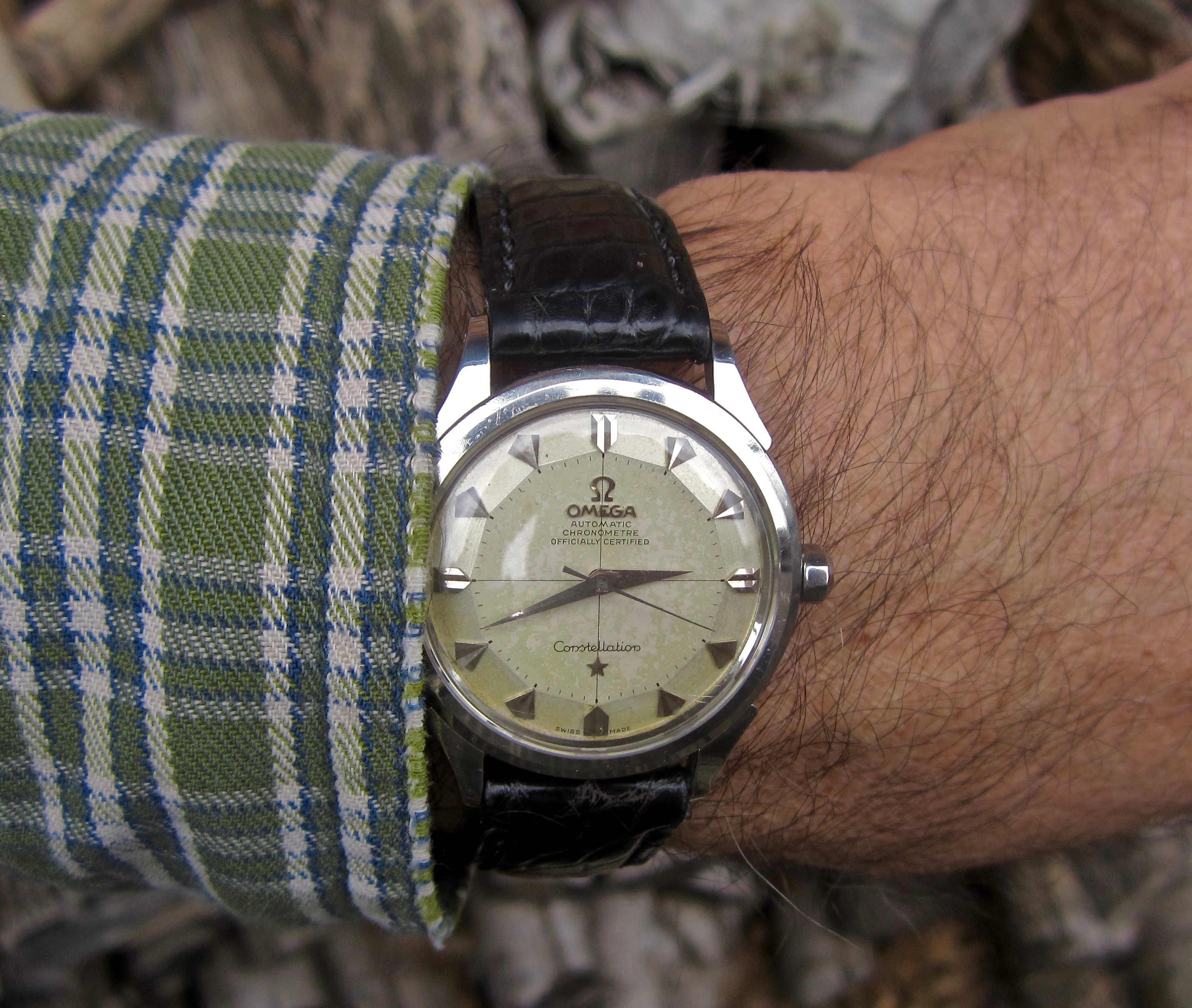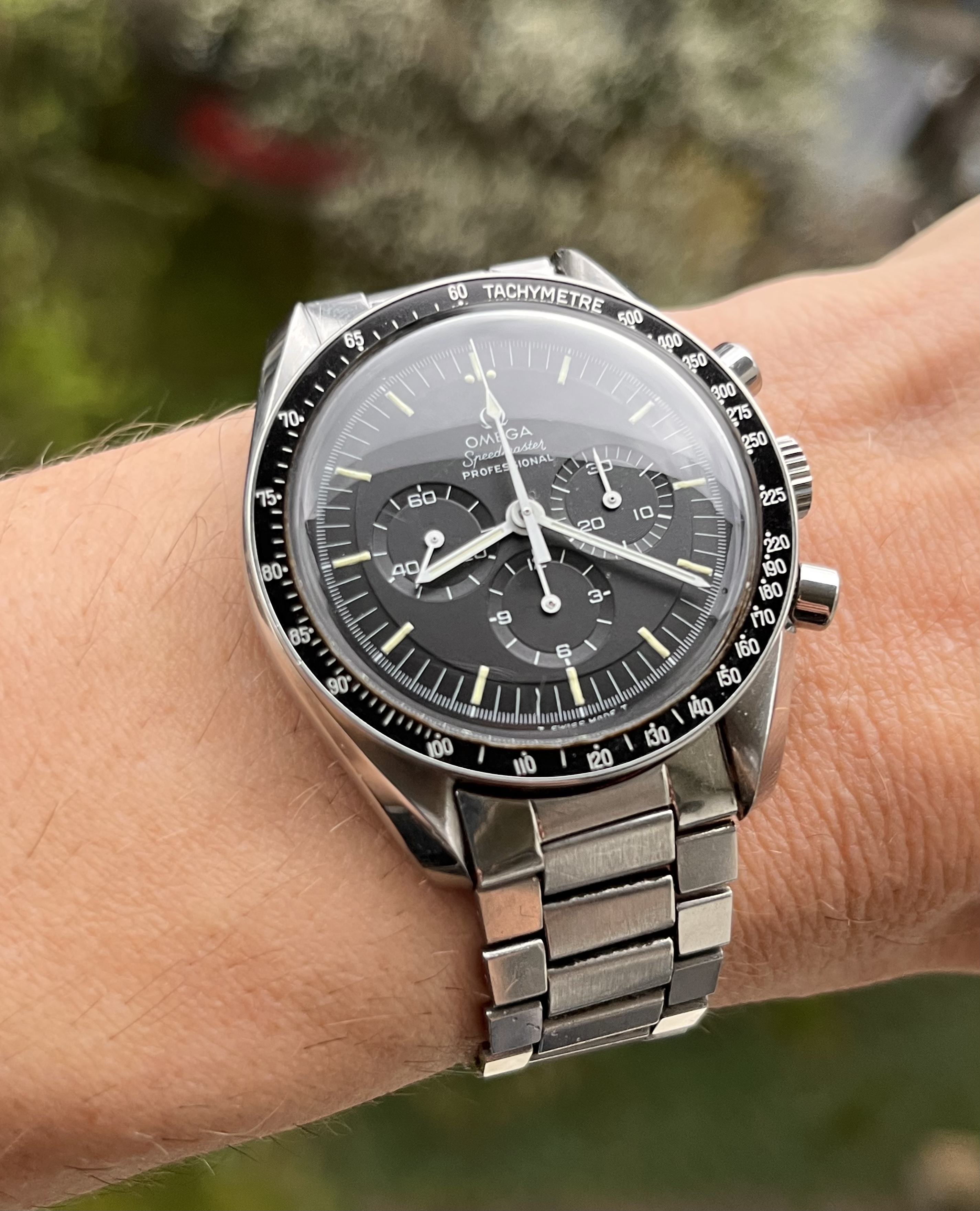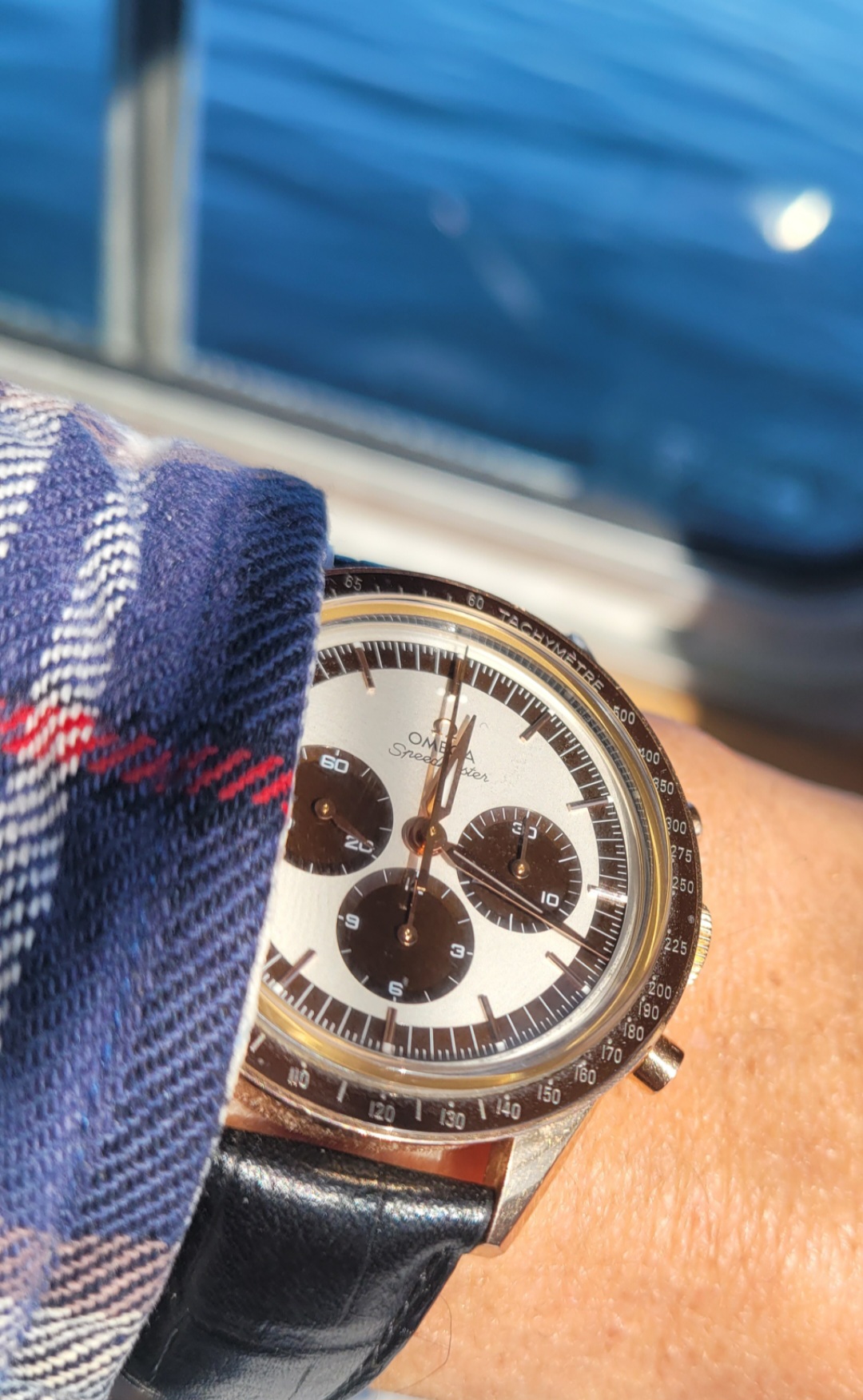Wearing something current right now, this 3861 Hesalite started with the steel bracelet but I am using that bracelet on another watch so am using the Cordura strap from the 45th anniversary Snoopy with white stitching (CWZ003436) with an Omega DP clasp (9452.18.13) which is an early all polished design (18mm). I like the white stitching vs the standard all black Cordura strap, it breaks up the all black look.