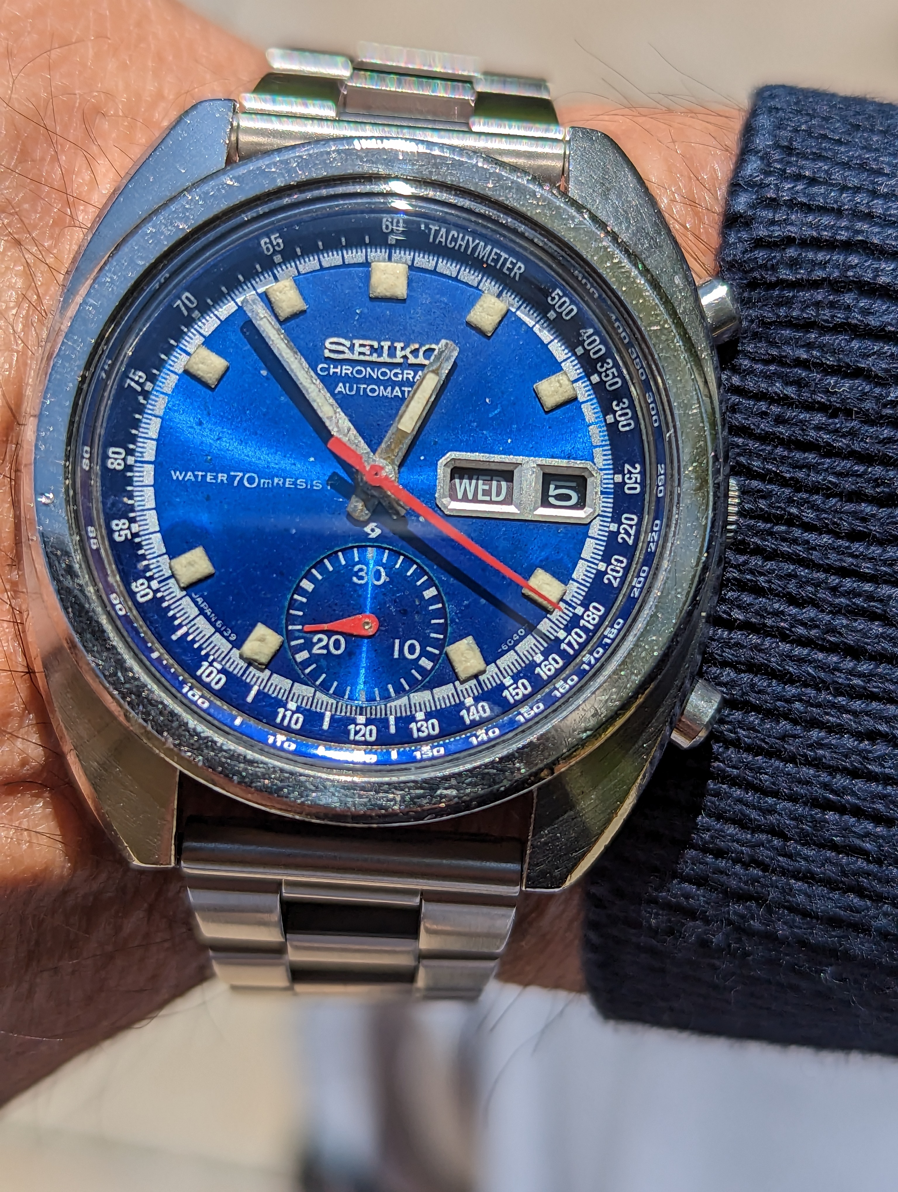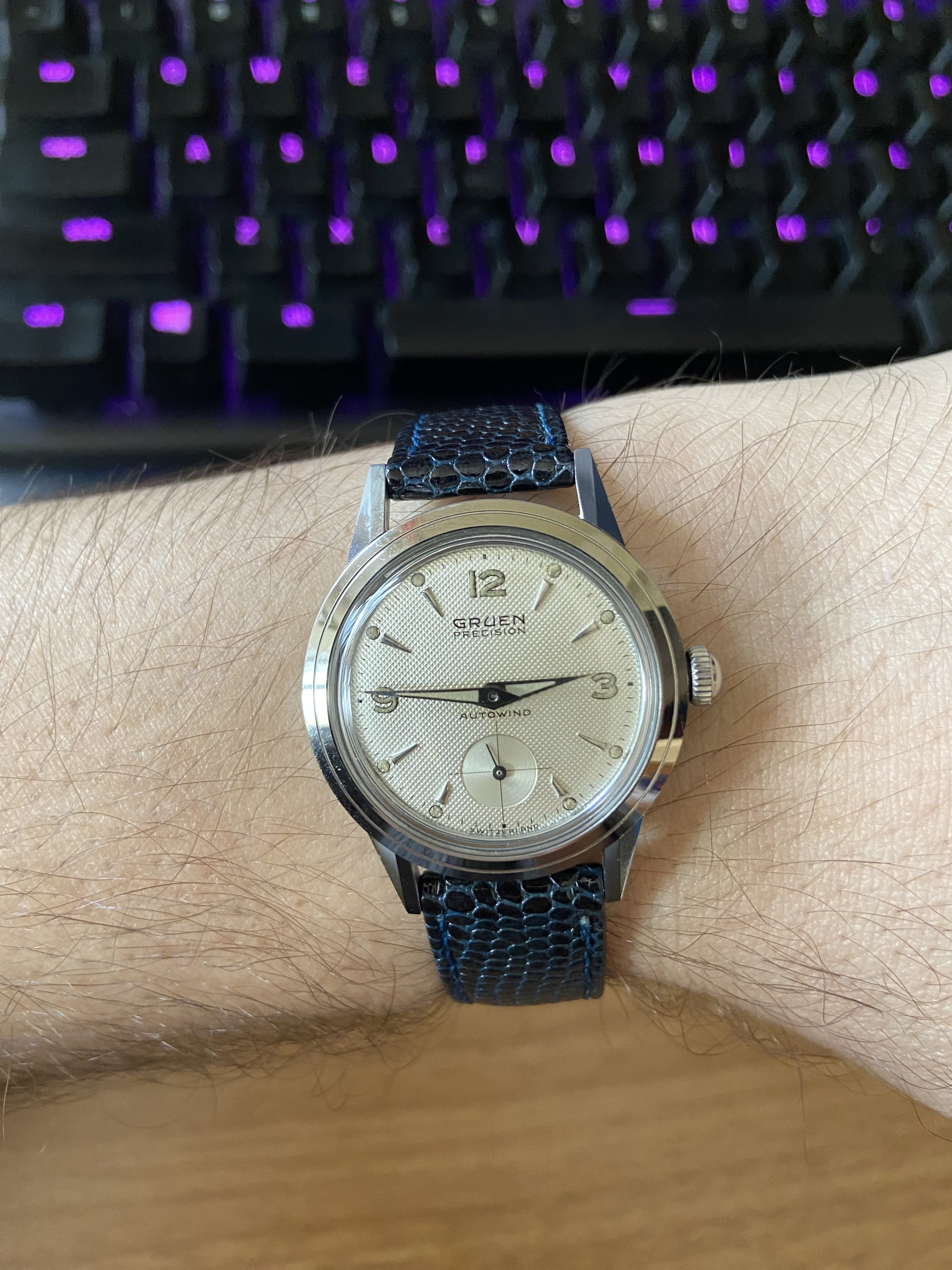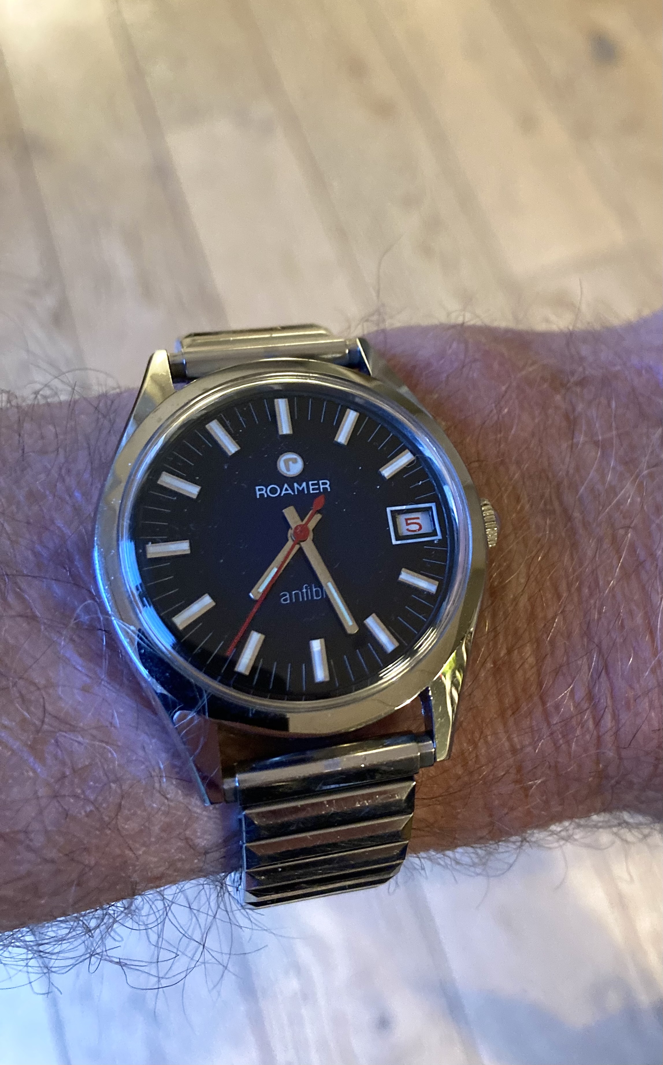 After several months of wearing my newly acquired 1877 Waltham hunter cased pocket watch, on Tuesday, I decided it was time to change to an old favourite that hasn’t seen daylight for three years. This is my 18-size, 21-jewel Hamilton, grade 941. This is the hunter cased version of the venerable Hamilton 940, one of the most popular of the 18-size Hamiltons for railroad use. Not too many of these around, I find. The 941 is railroad grade, but not railroad approved because it is in a hunter case. Case by the Philadelphia Watch Case Co. is gold filled. Shown on my Dave K miracle braid lanyard. (One of three watches I’ll wear today. The others being my Speedmaster 345.0808, and my Bucherer two-register chronograph with the Landeron calibre 48 movement.) I must get around to finding something to time!