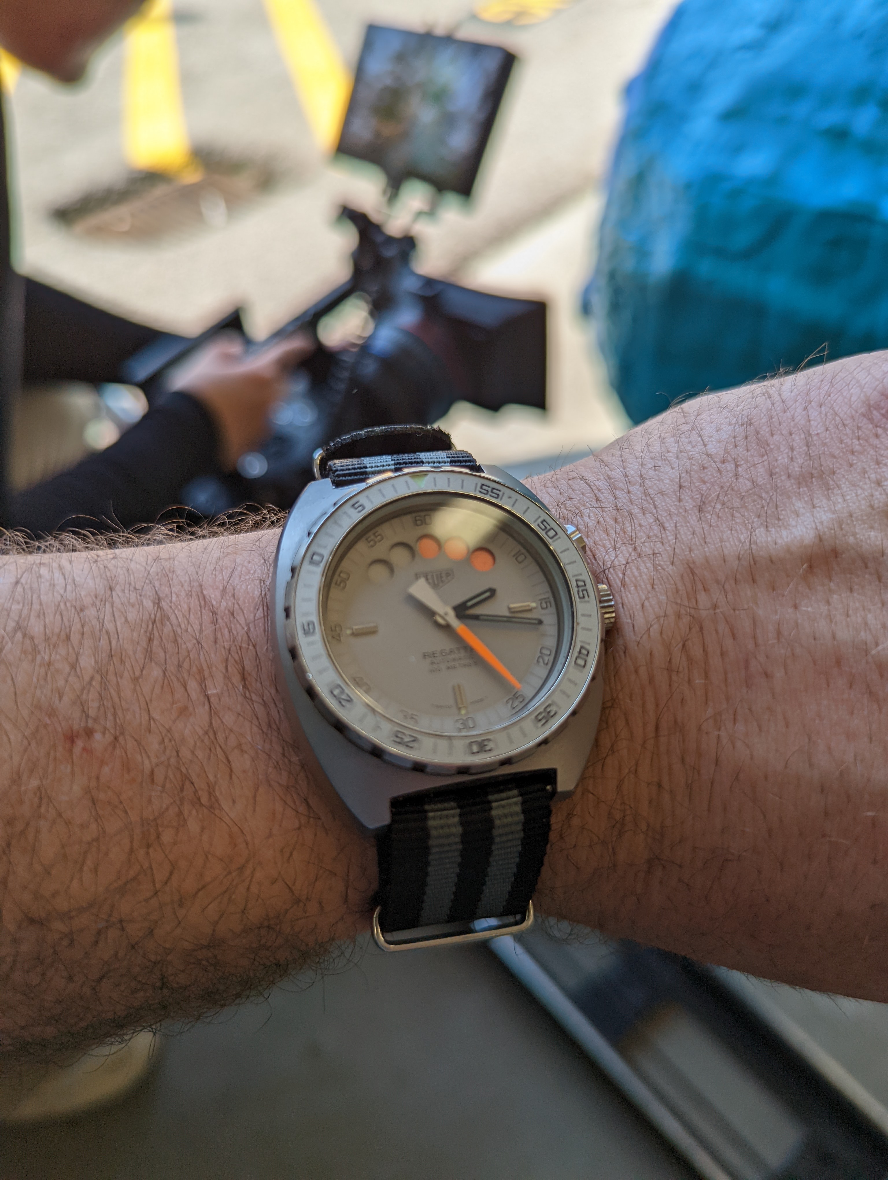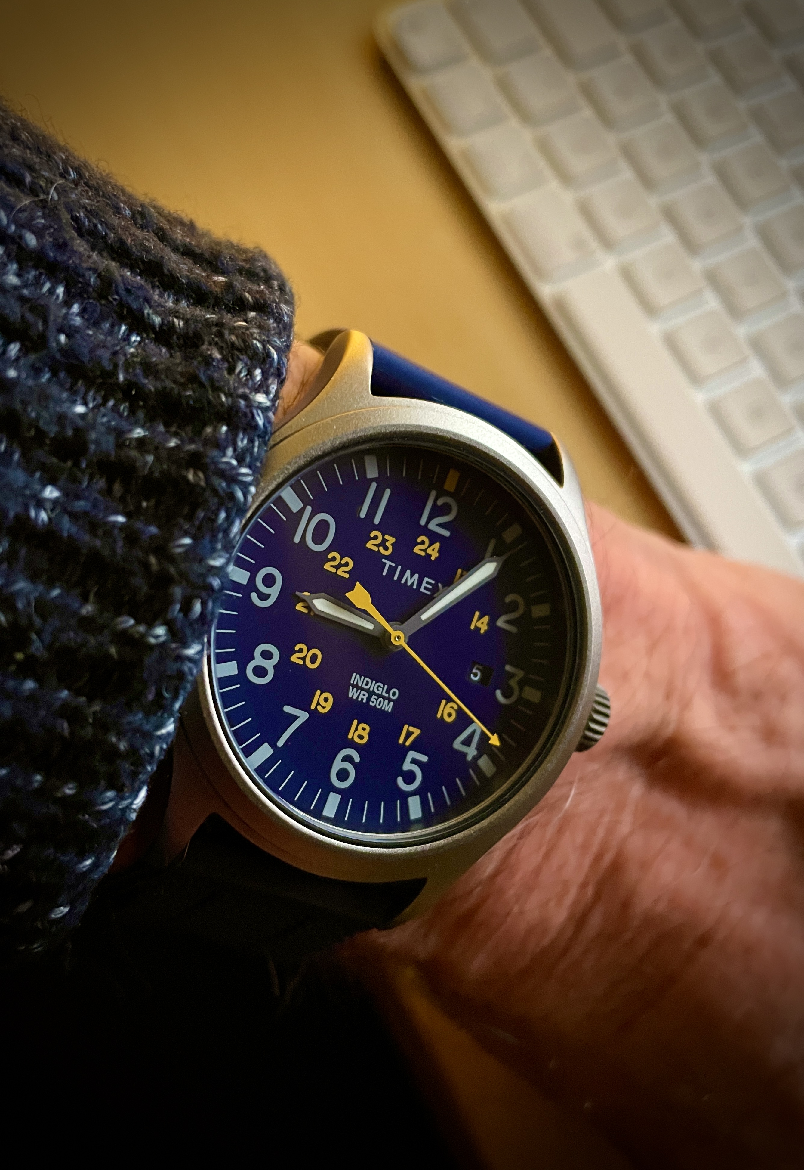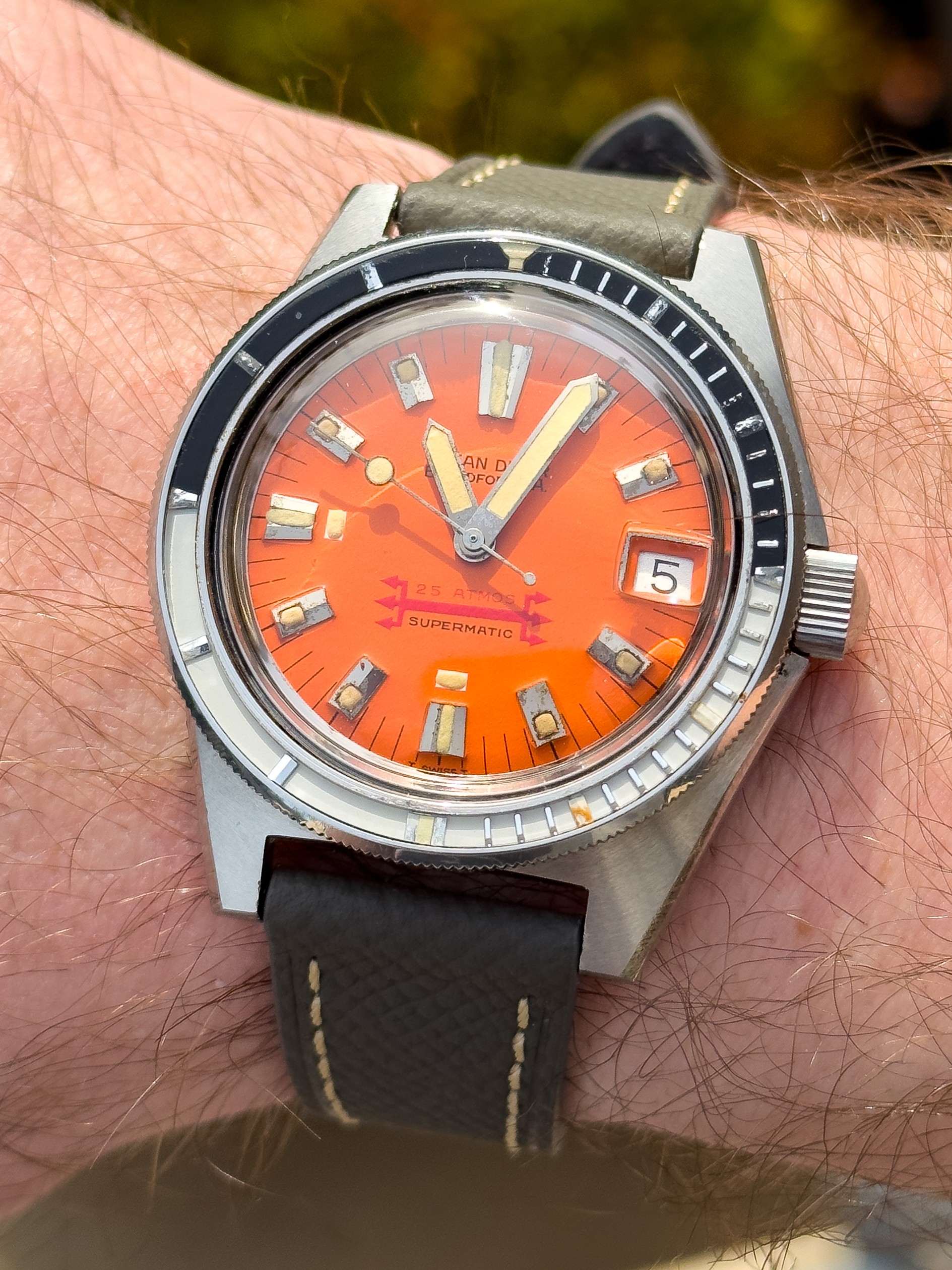 The blue part of the bezel is wonderfully reflective, changing from dark to bright blue based on what's reflecting off of it.