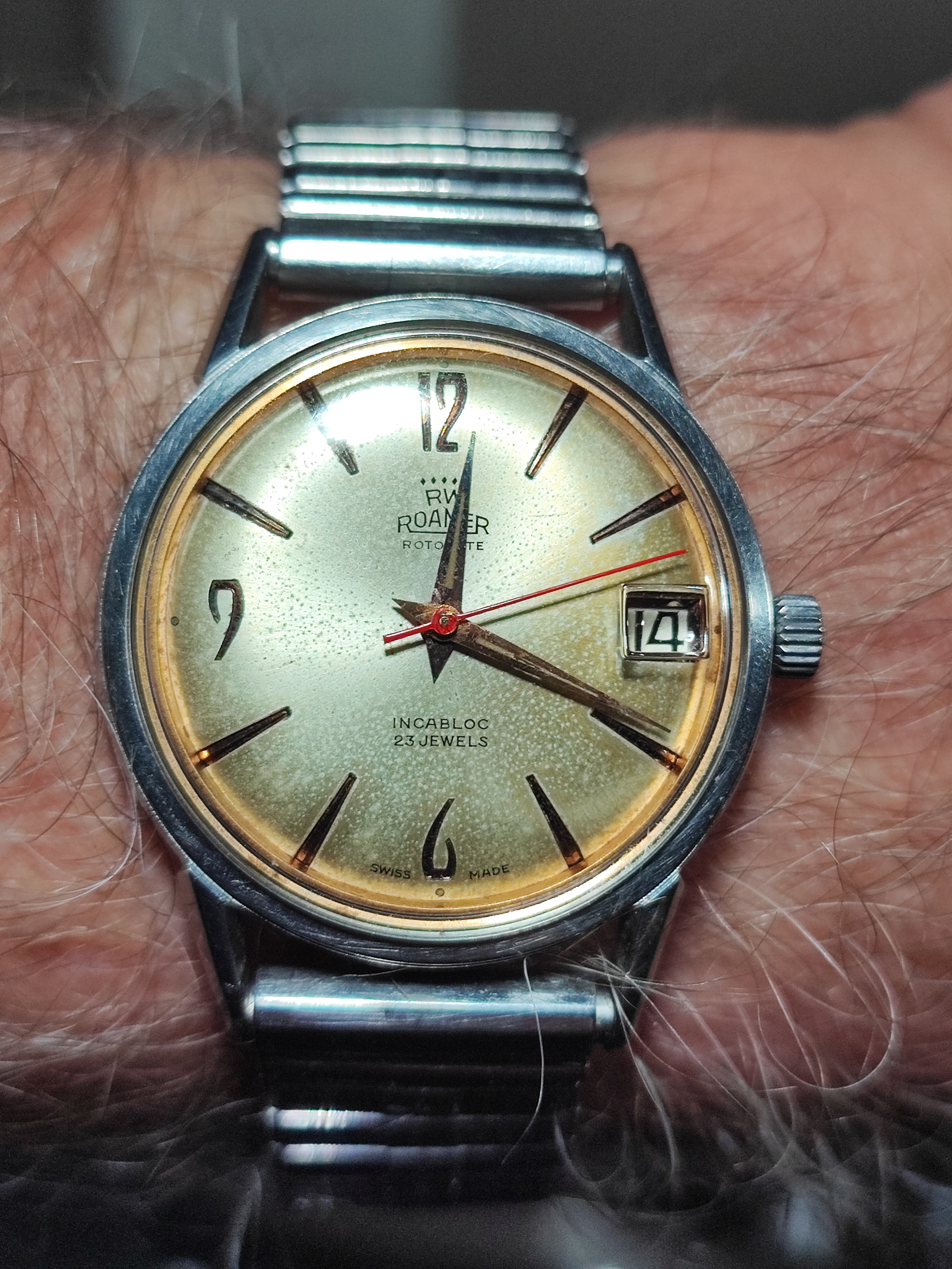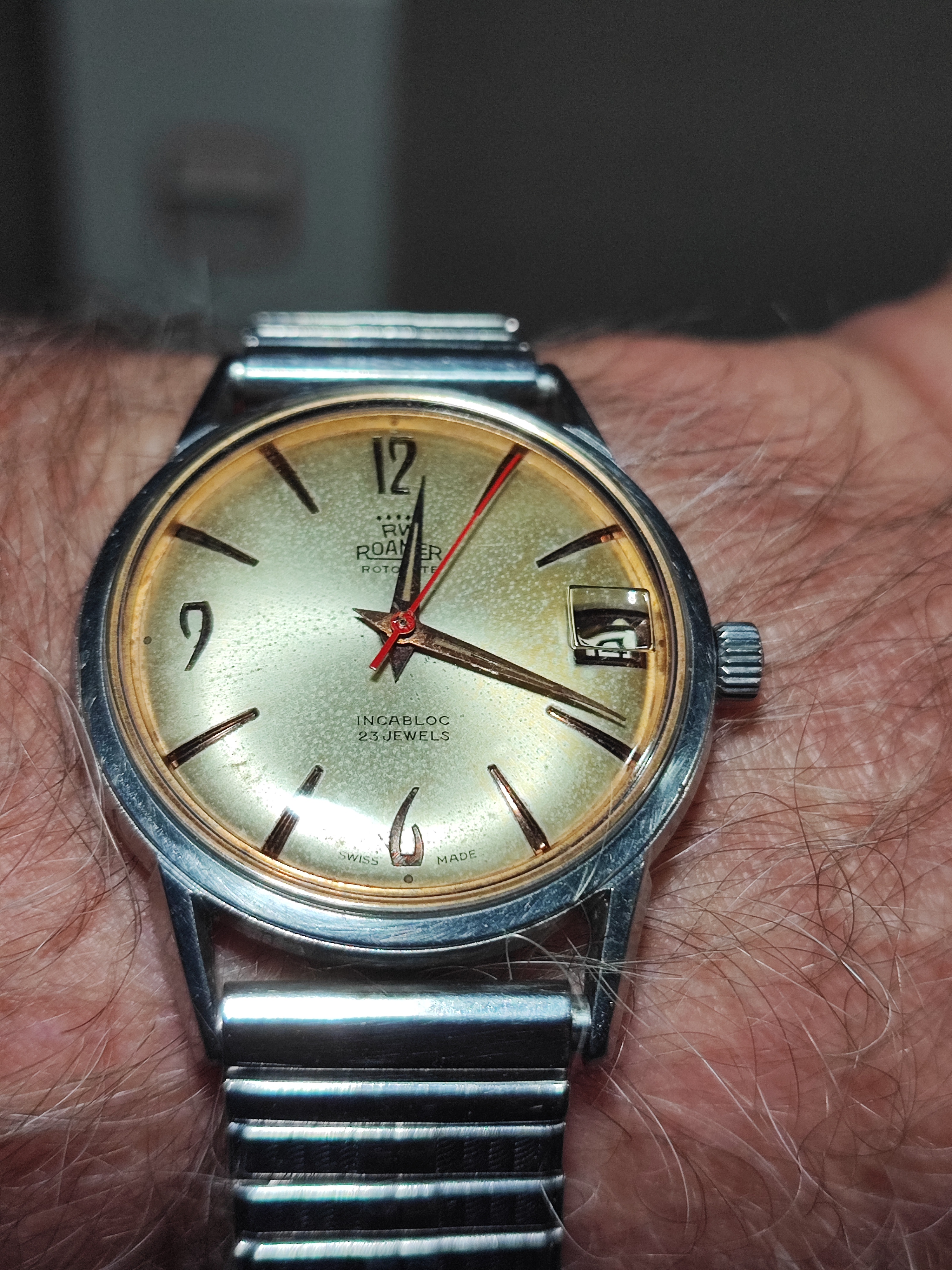 Still wearing this, it is one of the most subtlety beautiful dials I have ever seen on a vintage watch.