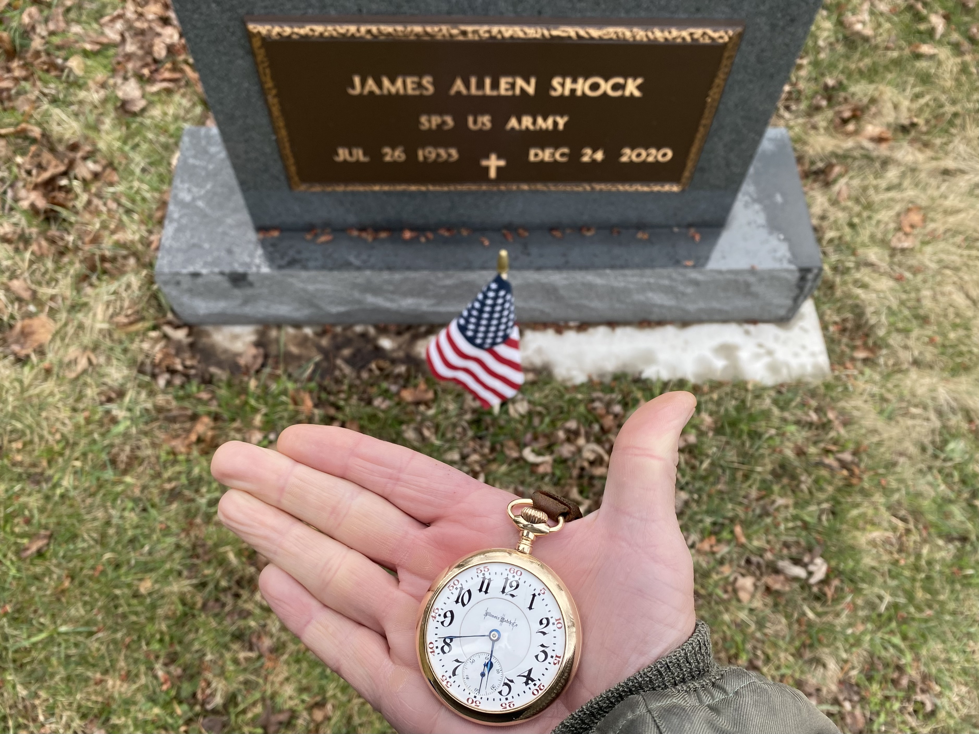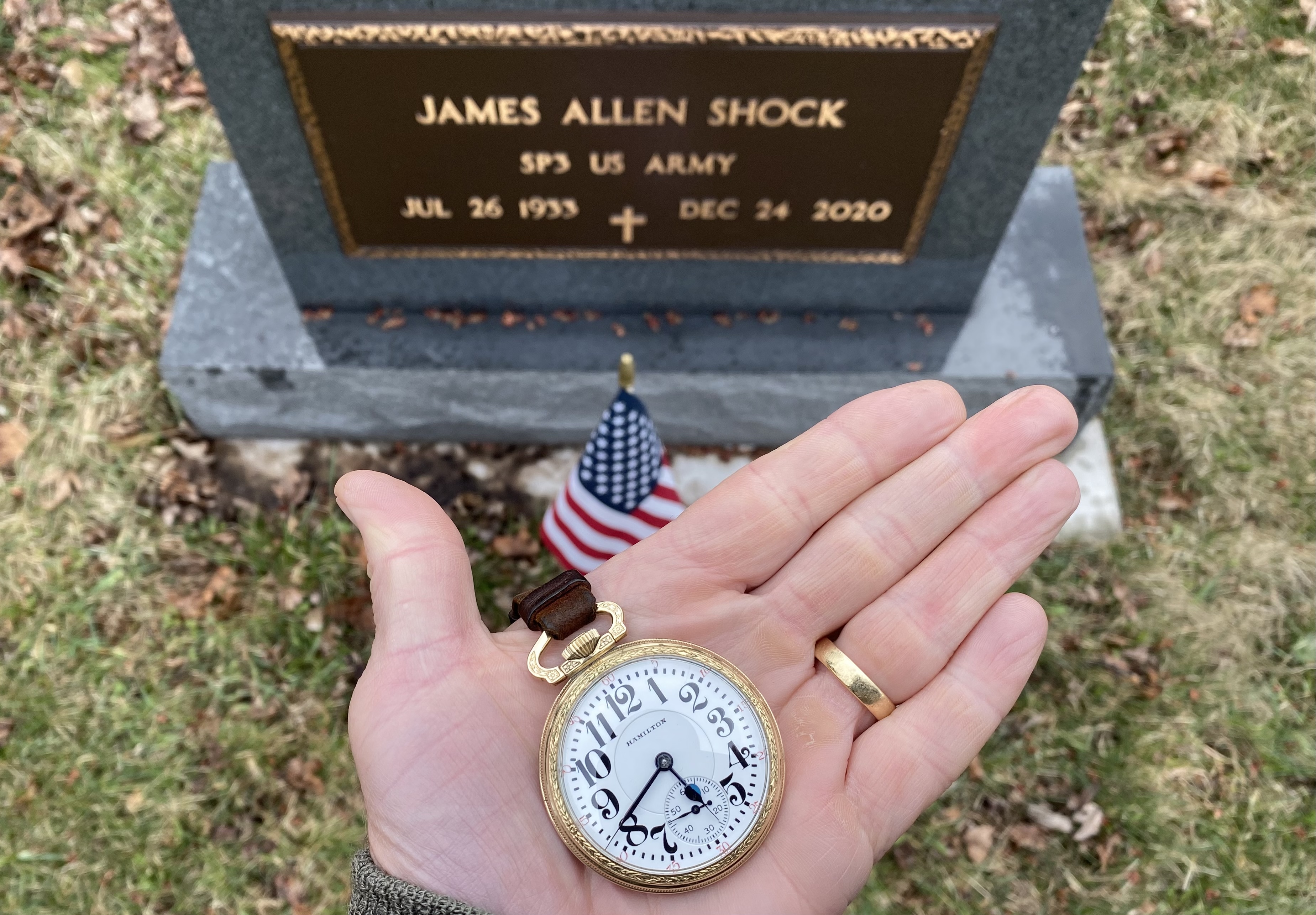 Double dog railroaders for today…18s 21j Illinois Bunn Special and 16s 21j Hamilton 992 respectively…both on @DaveK lanyards. Pics below from a few minutes ago at the family cemetery in central Wisconsin at my beloved Uncle Jim’s grave. Both railroaders pictured below are from his collection…he was a watchmaker / clockmaker / collector and he got me into watches in the early 1970s…
