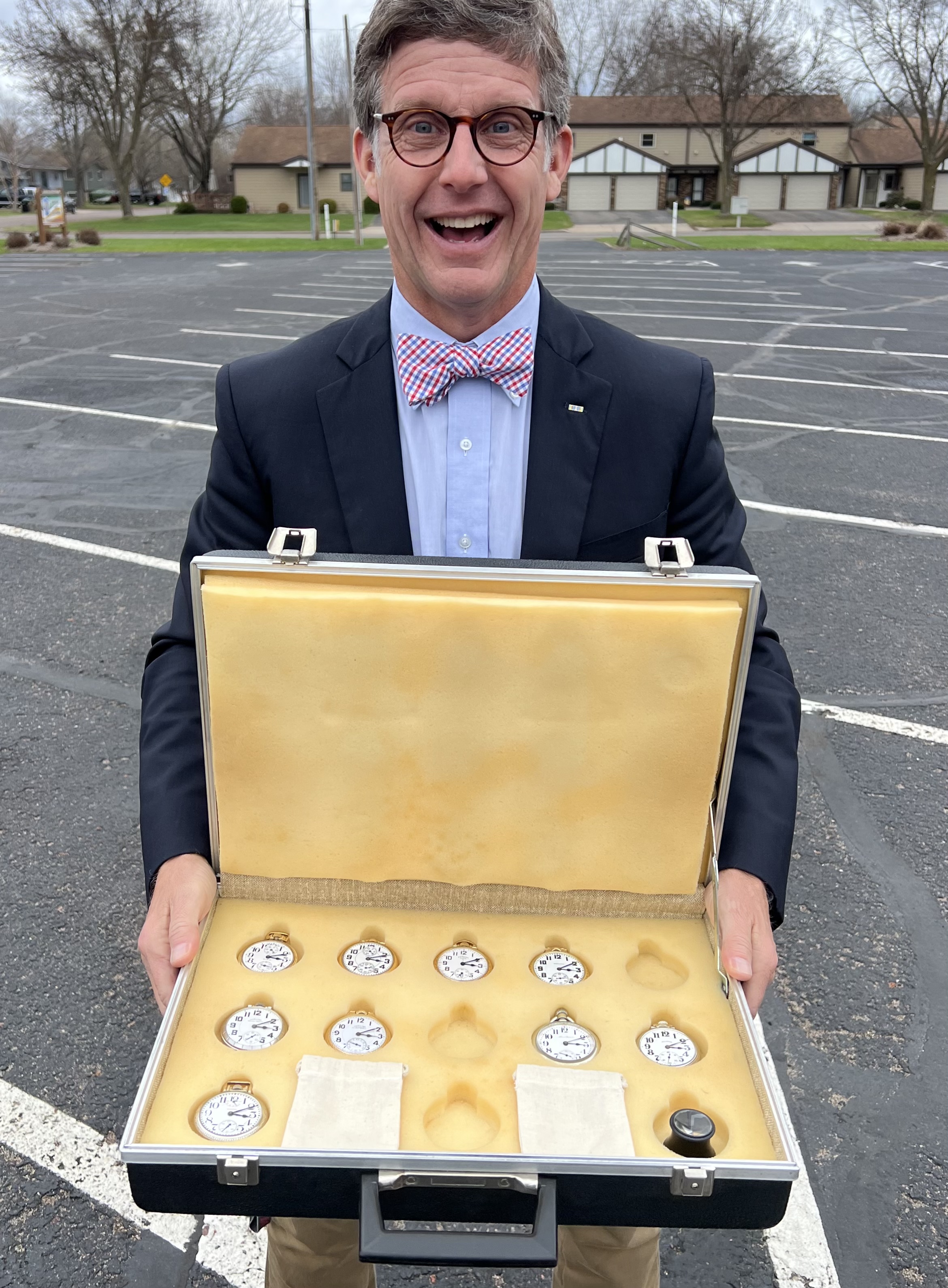 ·Boat loads of railroaders today! Went to my aunt & uncle’s 70th wedding anniversary today in central Wisconsin. I’m carrying on the Uncle Jim tradition of hauling boat loads of watches to family events by using one of his old hauling cases that I purchased from his estate…and you will notice that all of the railroaders are set to the correct time [there are two additional railroaders that I’m wearing that are also set to the correct time] because that’s how I roll…pic by one of my cousins…