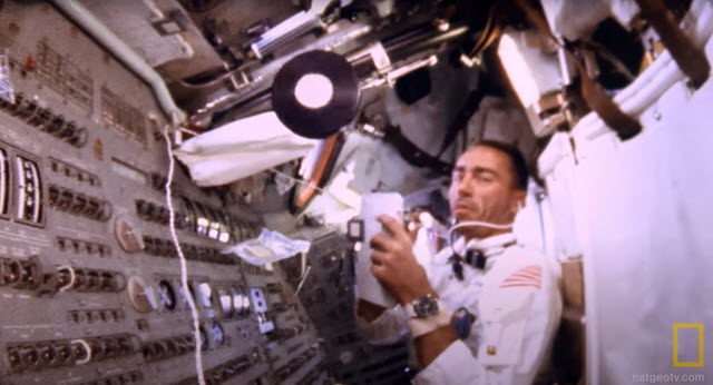 I also saw something I'd never noticed before: a white coloured long velcro strap, as seen here on the wrist of Apollo 7 astronaut Walt Cunningham...
