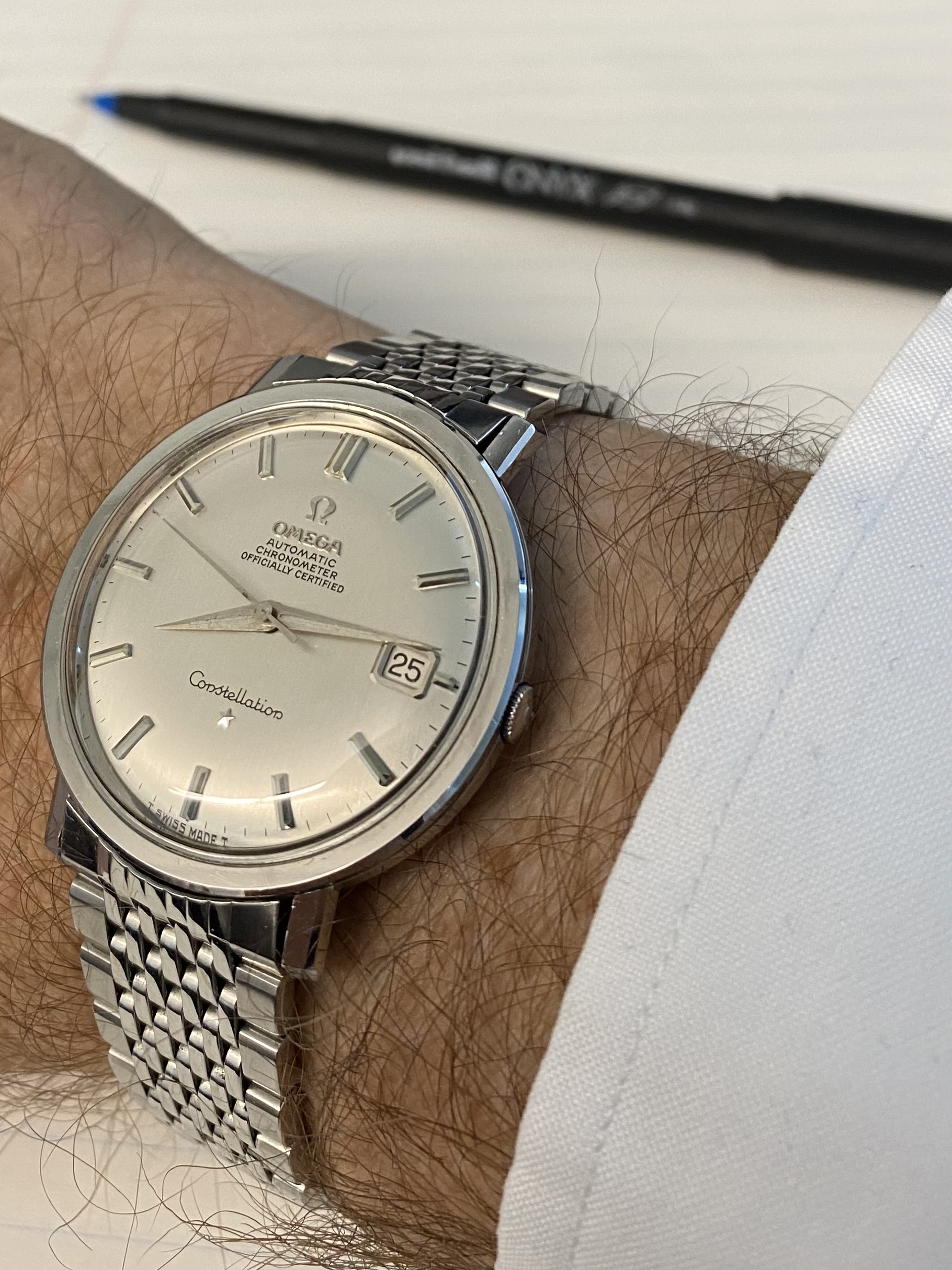 Good day all. “Hidden crown” dome dial Constellation reference 168.004 today. IMHO, one of the most underrated Connie references and super comfortable on a BOR bracelet.