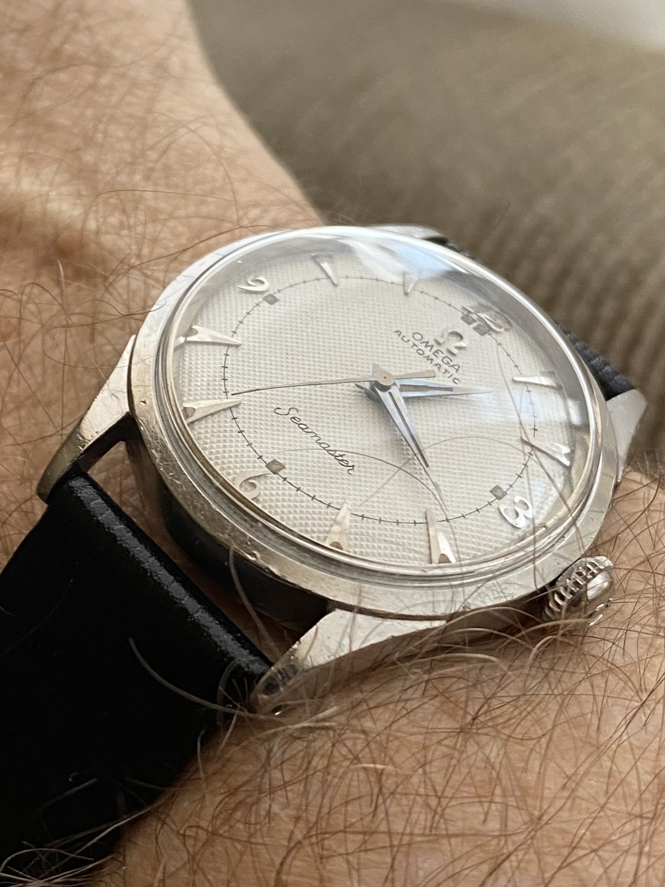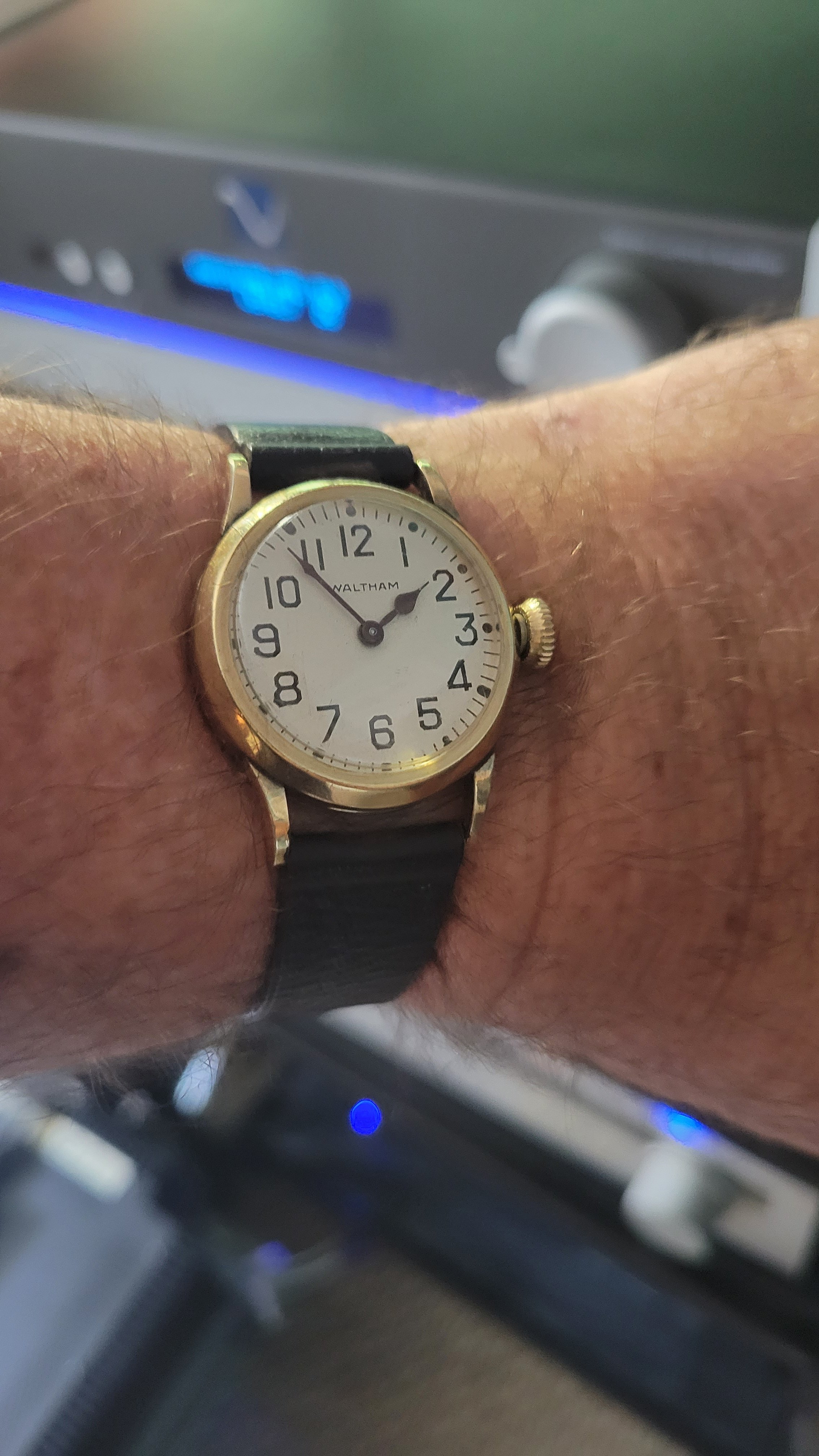 Switched to the Waltham military pilot that I just recieved in this lot my gold scrapper friend collects for me. He buys jewelry in bulk and when he finds watches he saves them for me. Sometimes he comes up some zingers like this one