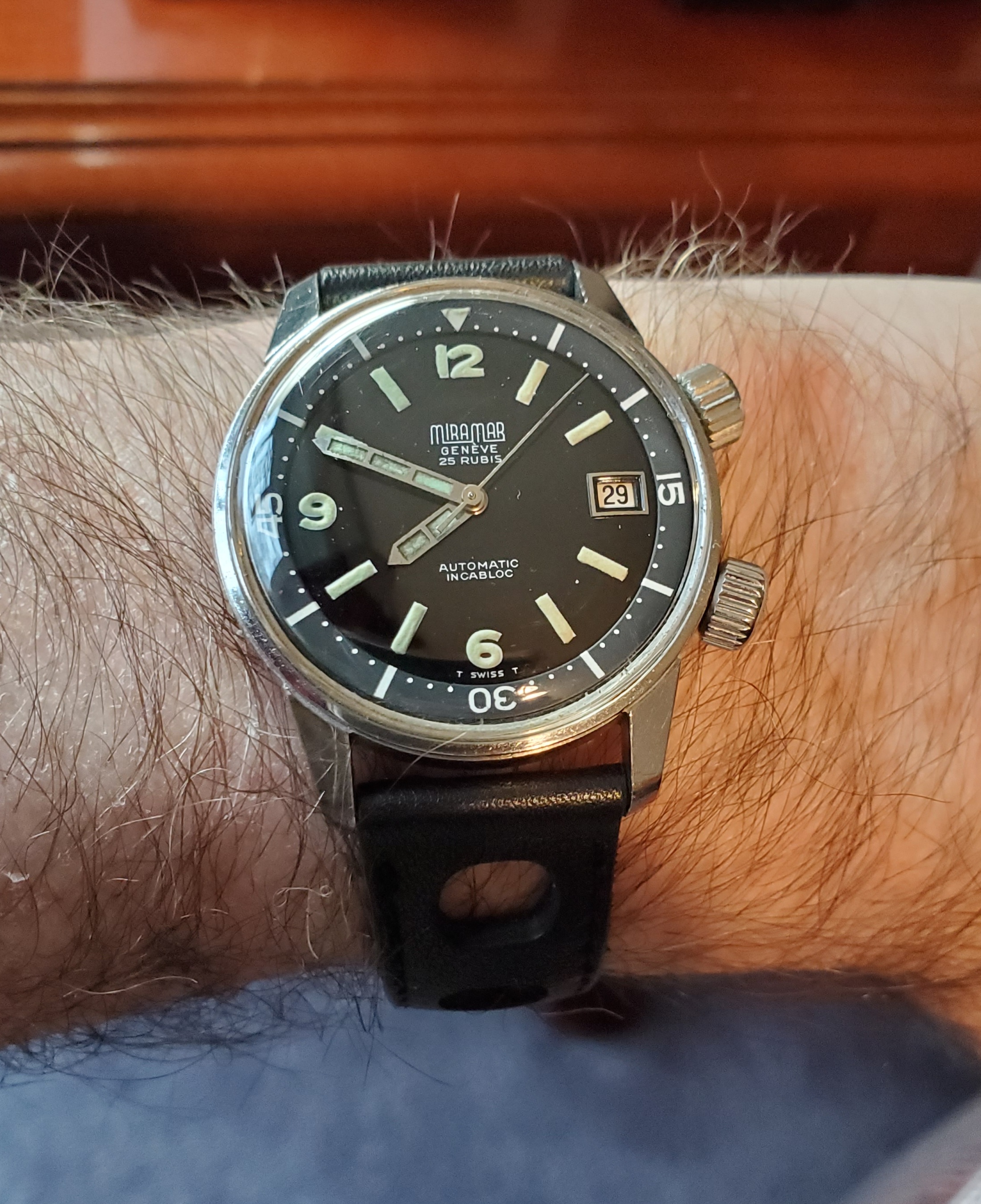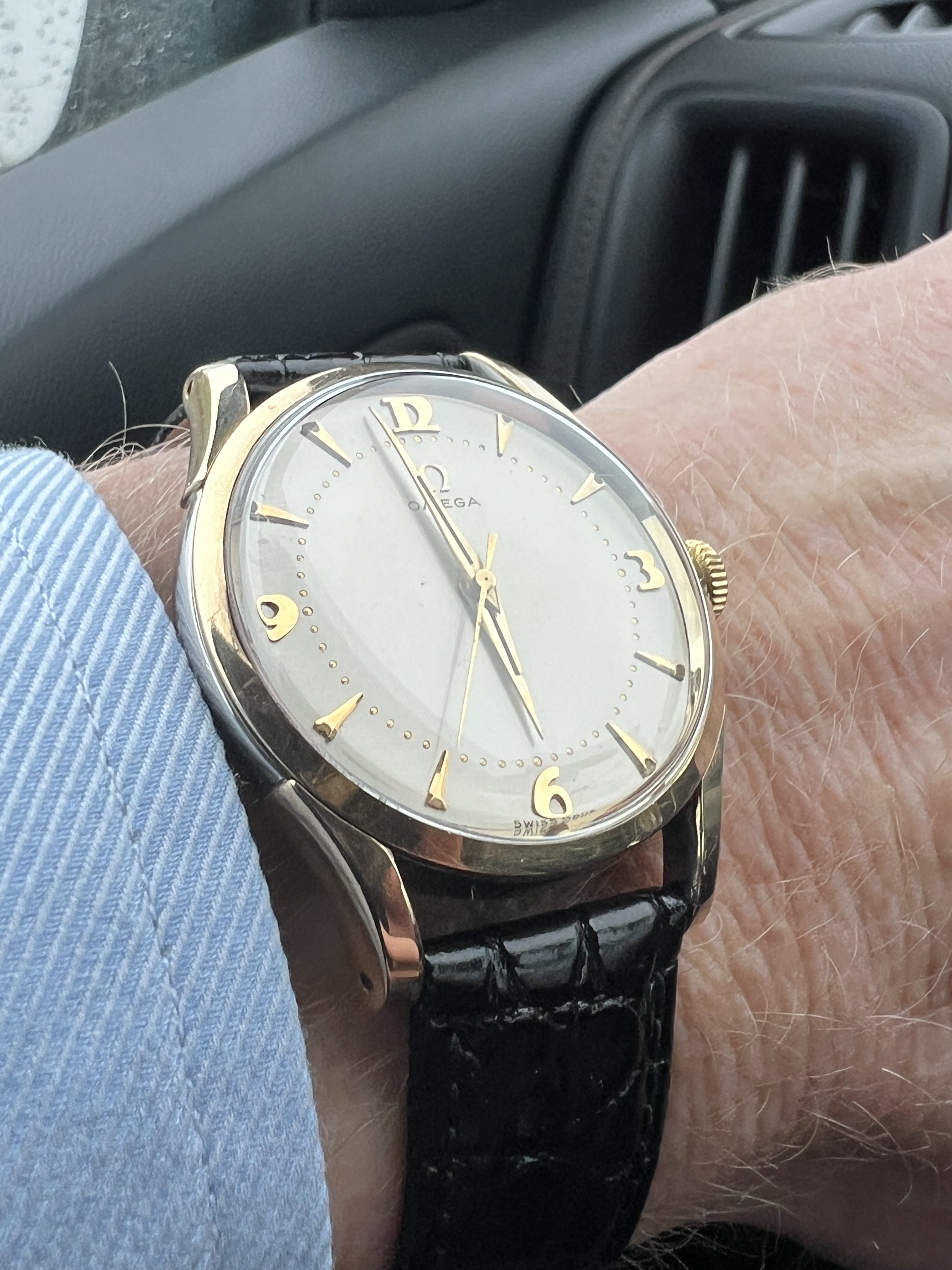 Not the best picture, but just got this back from our local watchmaker. Somewhat rare combination of a Birks logo on an Omega; 23.4SC movement, dates to early 1940s given the dial and hand design.