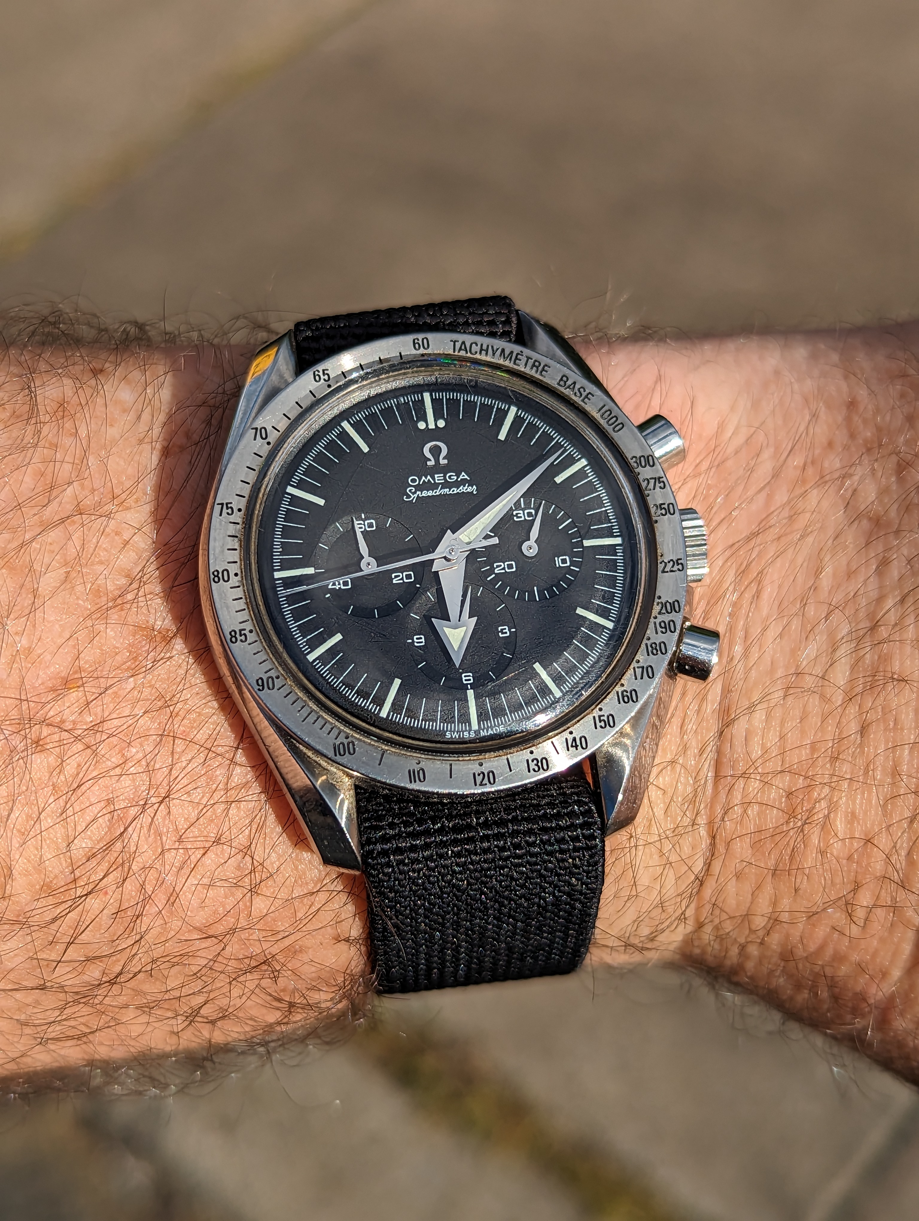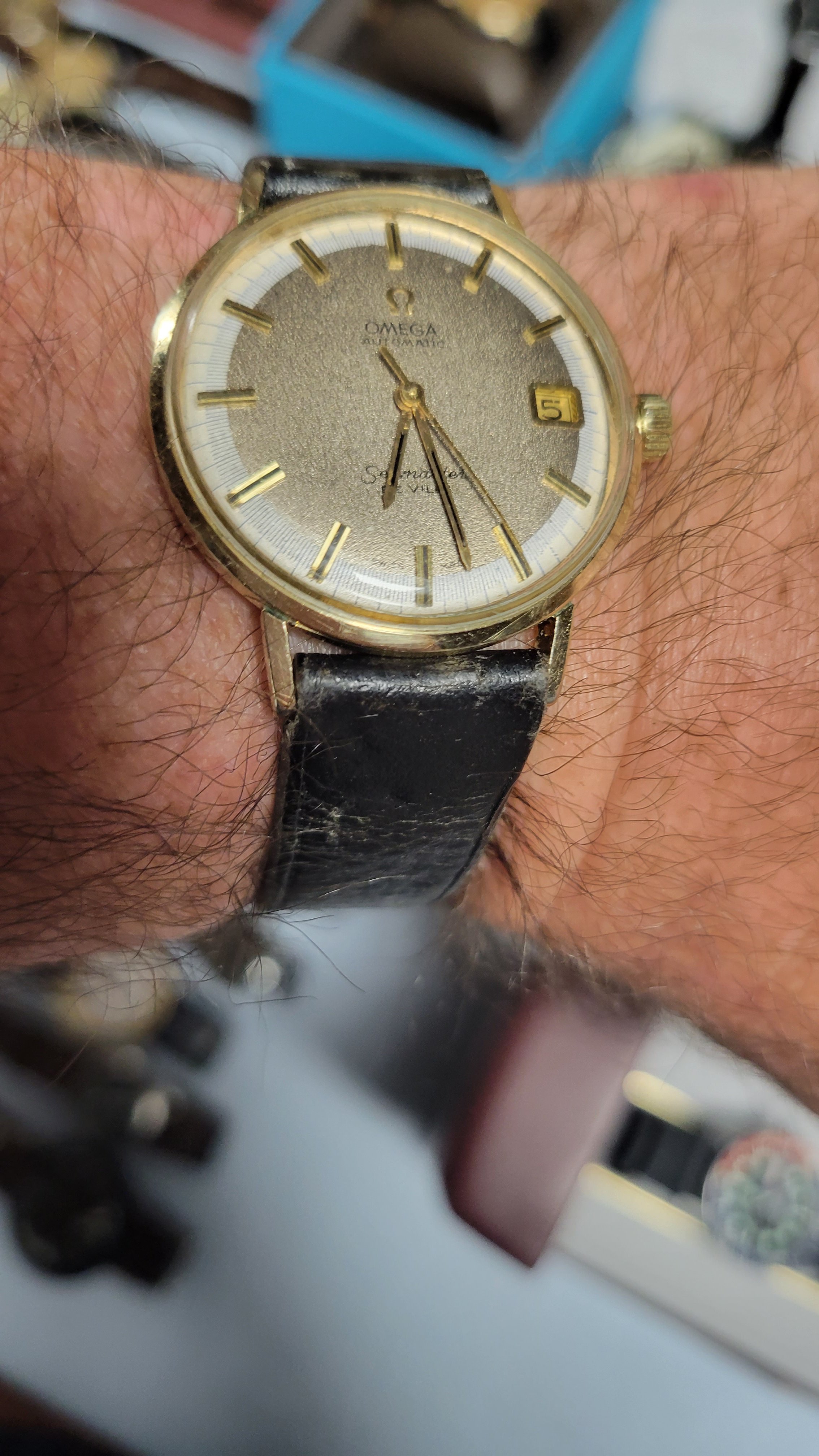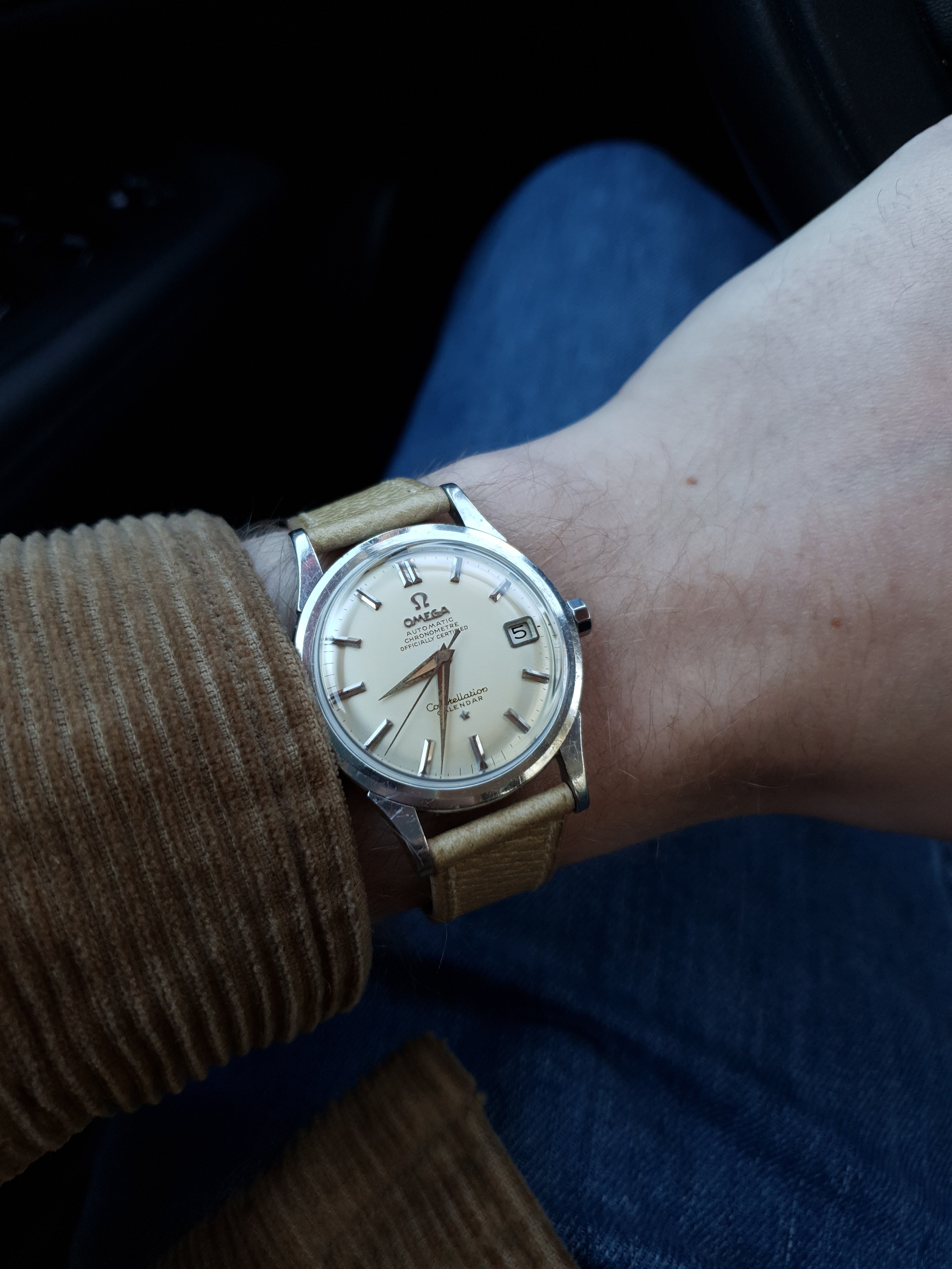 The dial and bezel are a bit rough, but I got only love for the Omega-signed crystal with inverted cyclops and the magical date set feature of the Cal.565 😀