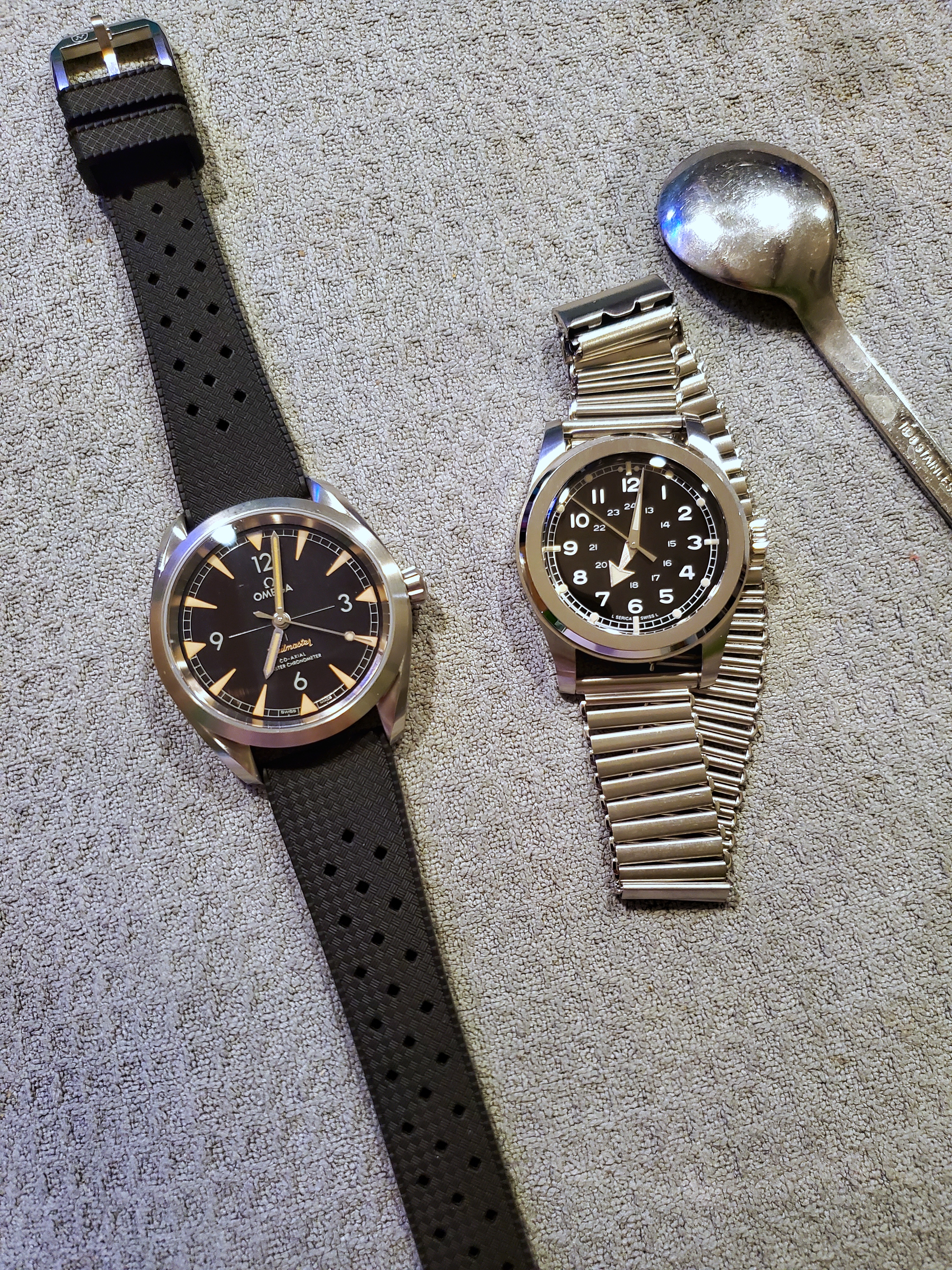 It's not your Grandfather's Longines. It wears large and heavy, so the jury is still out on its tenure in the stable. I've tried several strap options to gain comfort and maintain control, but haven't found an acceptable solution yet; I have more straps and a Forstner bracelet coming by post over the next few weeks, so I'm hoping for the best.
